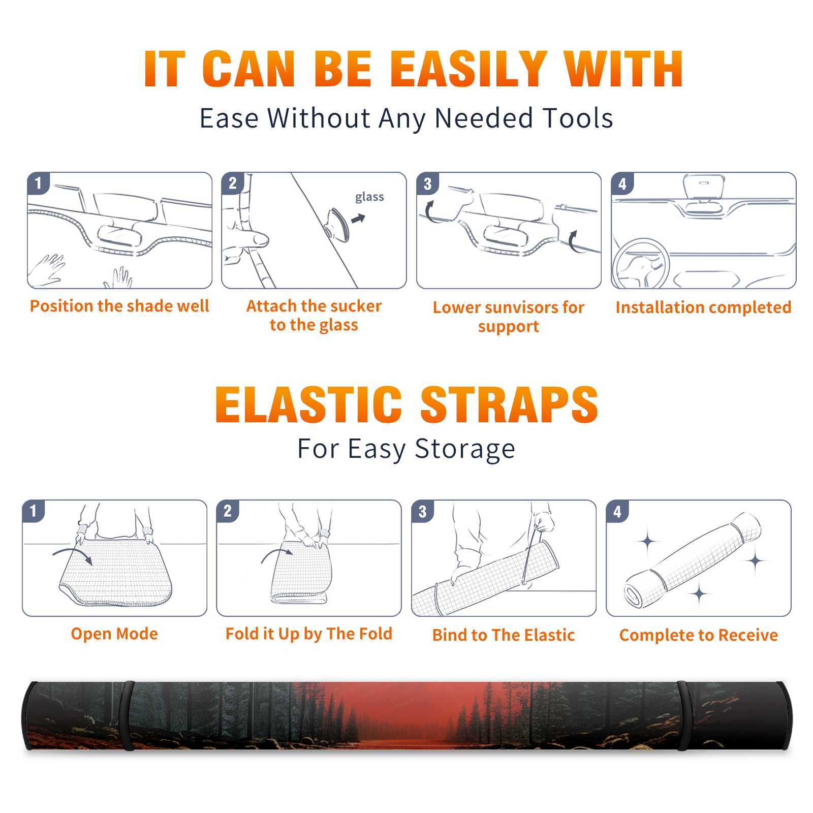 • Diameter /Size 63"L x 33.5"W Made from excellent materials which makes it sturdy and protects the car from the sun. Easy to use and pack. Makes the interior of the car cooler.You can easily stash the sunshade in the storage bag or store long term.It open and closes easy. Also the leather storage bag is durable and easy to put the umbrella back into.This windshield sunshade provides complete coverage and keeps your car interior cool under direct sun. It is easy to open and position under the windshield and around the rear-view mirror. Makes Your Car Easy To Identify, Perfect For Finding Your Car In Crowded Parking Lots And Garages.Great Choice: It Is A Great Gift For Dad, Boyfriend, Brother, Brother And Uncle, Friends, Classmates, Family And So On. Notice: Due To Difference Computer Monitors, The Color Maybe Slightly Different From Picture. As Different Measurement Methods, Measurement Data Will Float Within 2%.I Hope You Understand. If You Have Any Question About The Item Please Do Not Hesitate To Contact Us Immediately And We Will Give You A Satisfactory Reply Within 24 Hours.