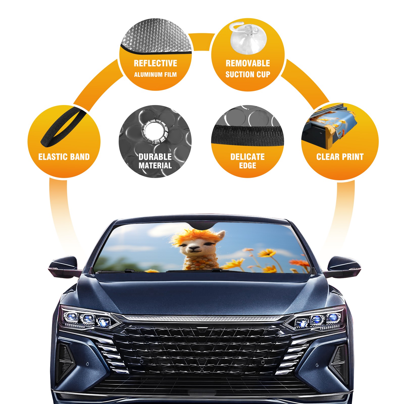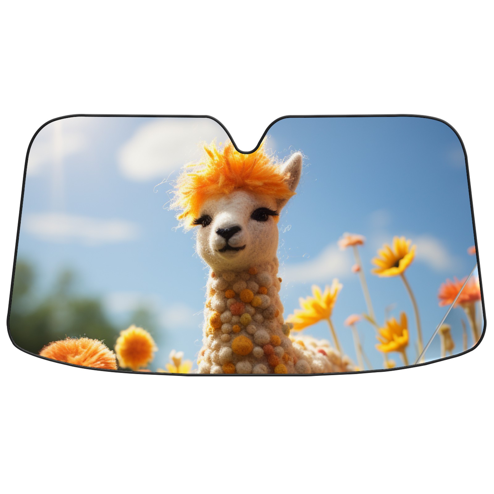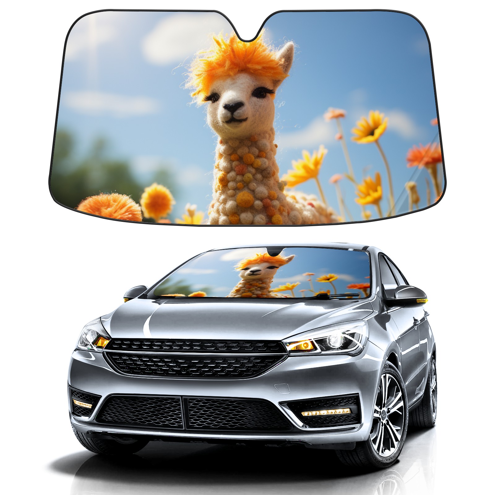 Car Windshield Sun Shade For Front Window Happy Felted Llama1 Foldable Vehicle Windshield Car Sun Visor Covers Automotive Window Protector Car Camping Privacy Sun Blocker