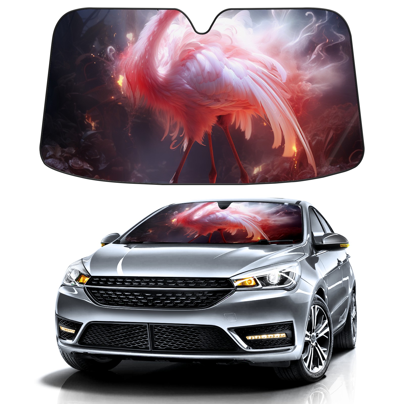 Car Windshield Sun Shade For Front Window Flamingo2 Foldable Vehicle Windshield Car Sun Visor Covers Automotive Window Protector Car Camping Privacy Sun Blocker