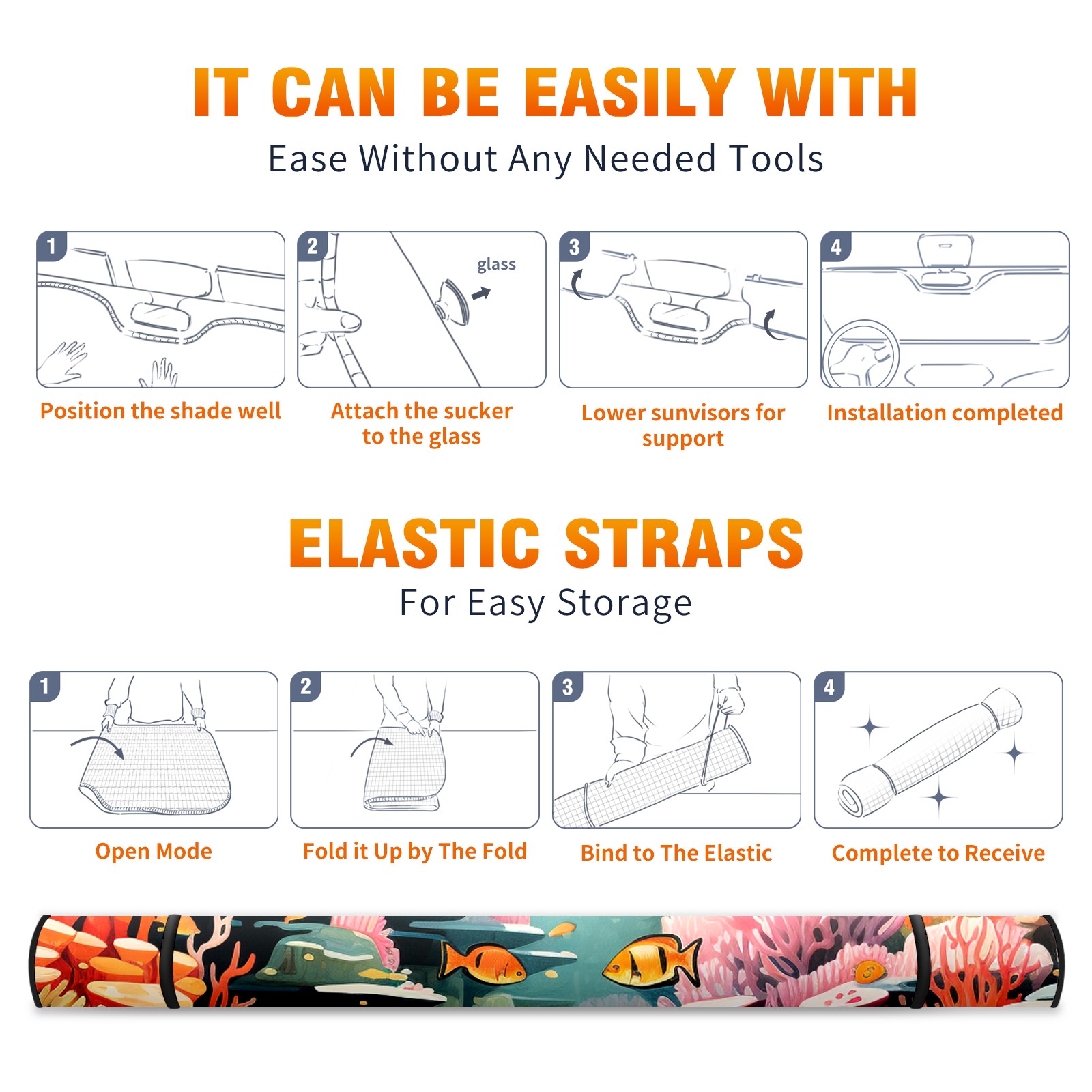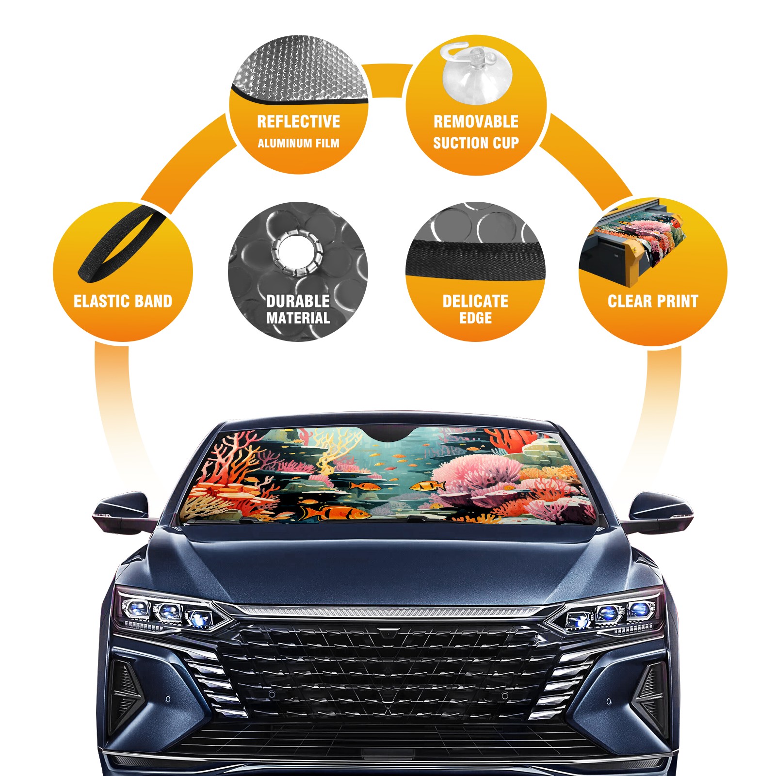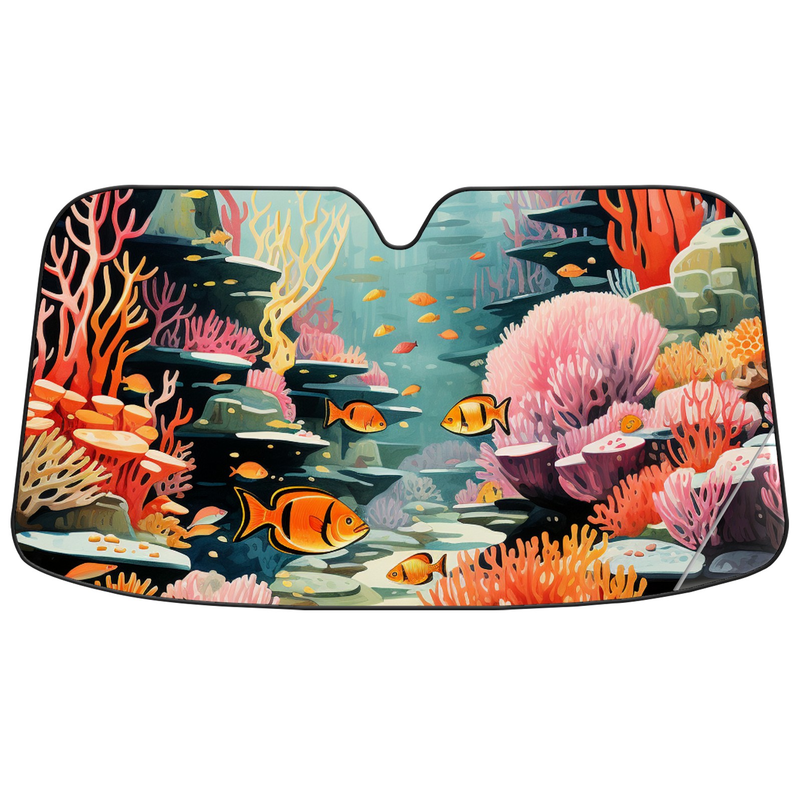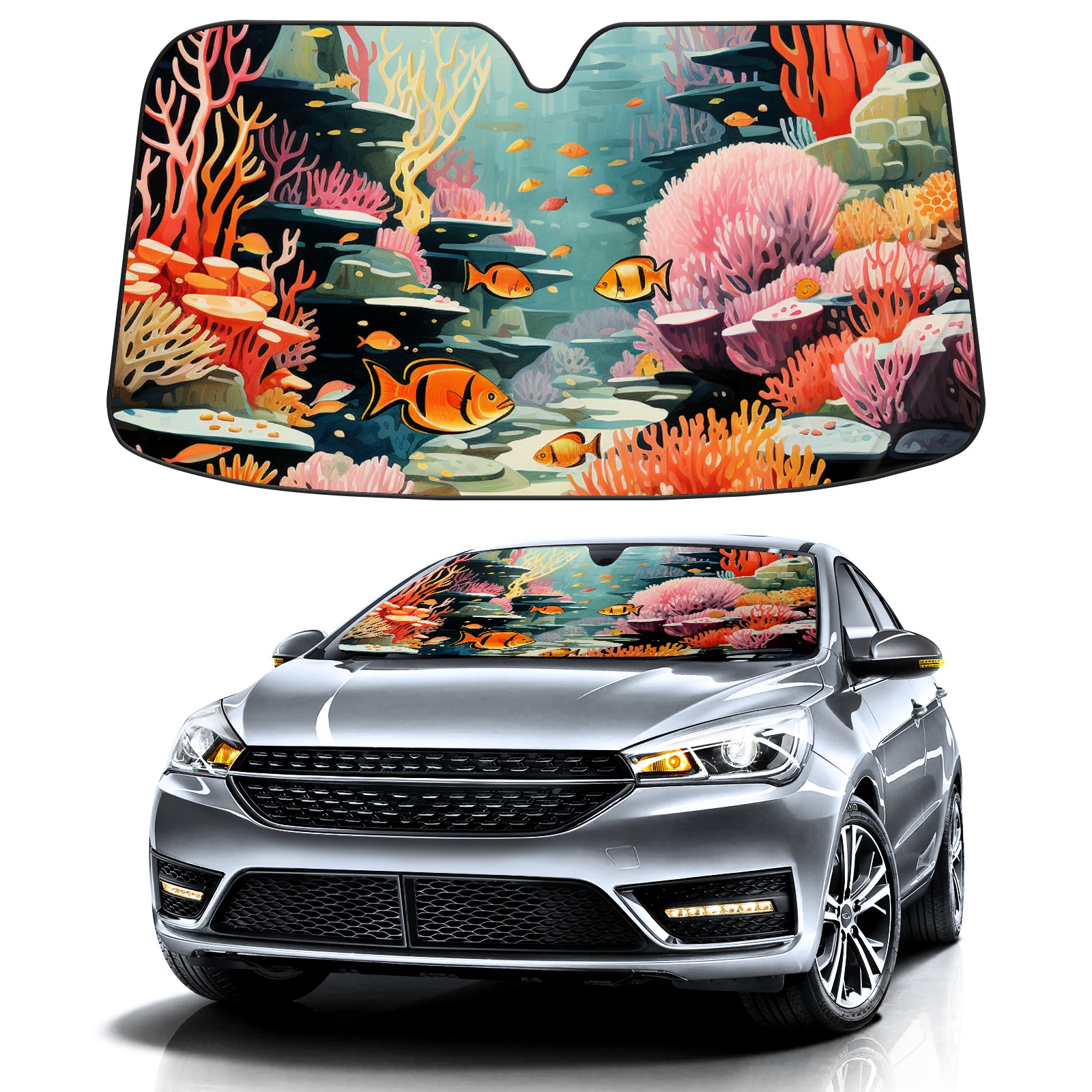 Car Windshield Sun Shade For Front Window Colorful Fish Foldable Vehicle Windshield Car Sun Visor Covers Automotive Window Protector Car Camping Privacy Sun Blocker