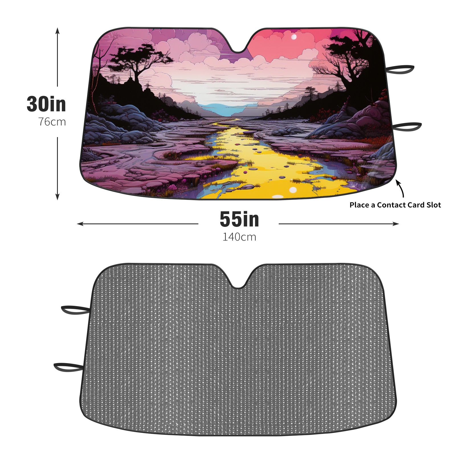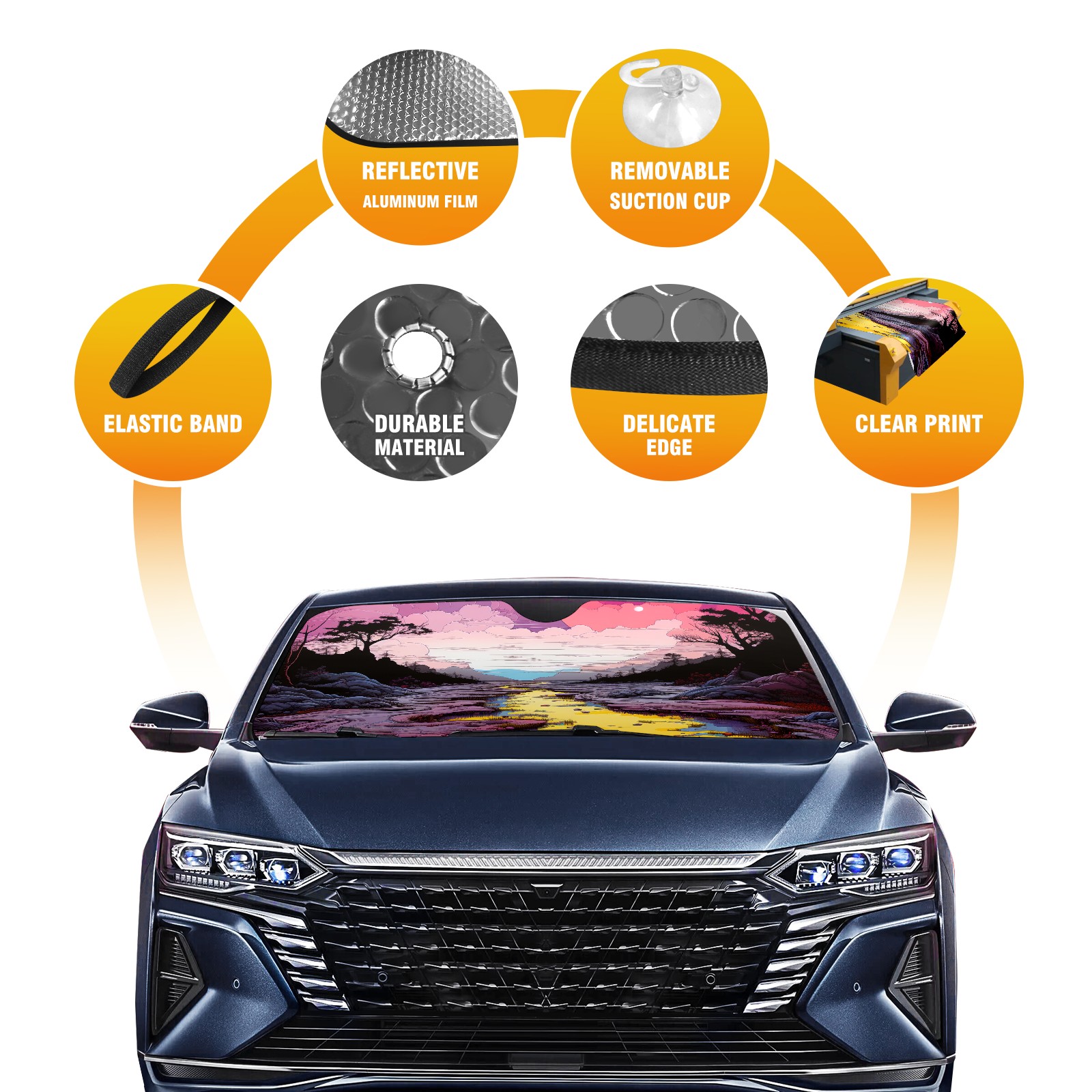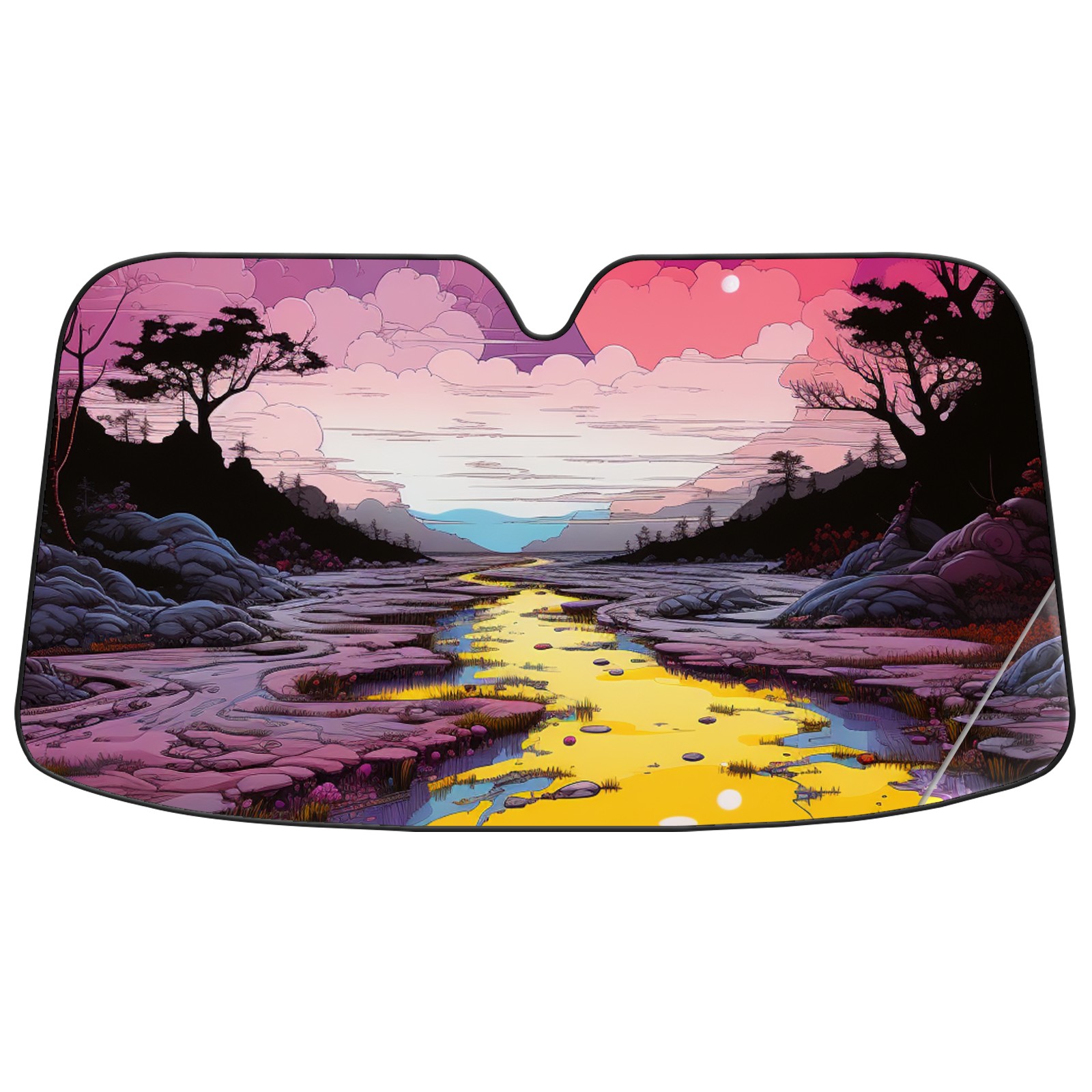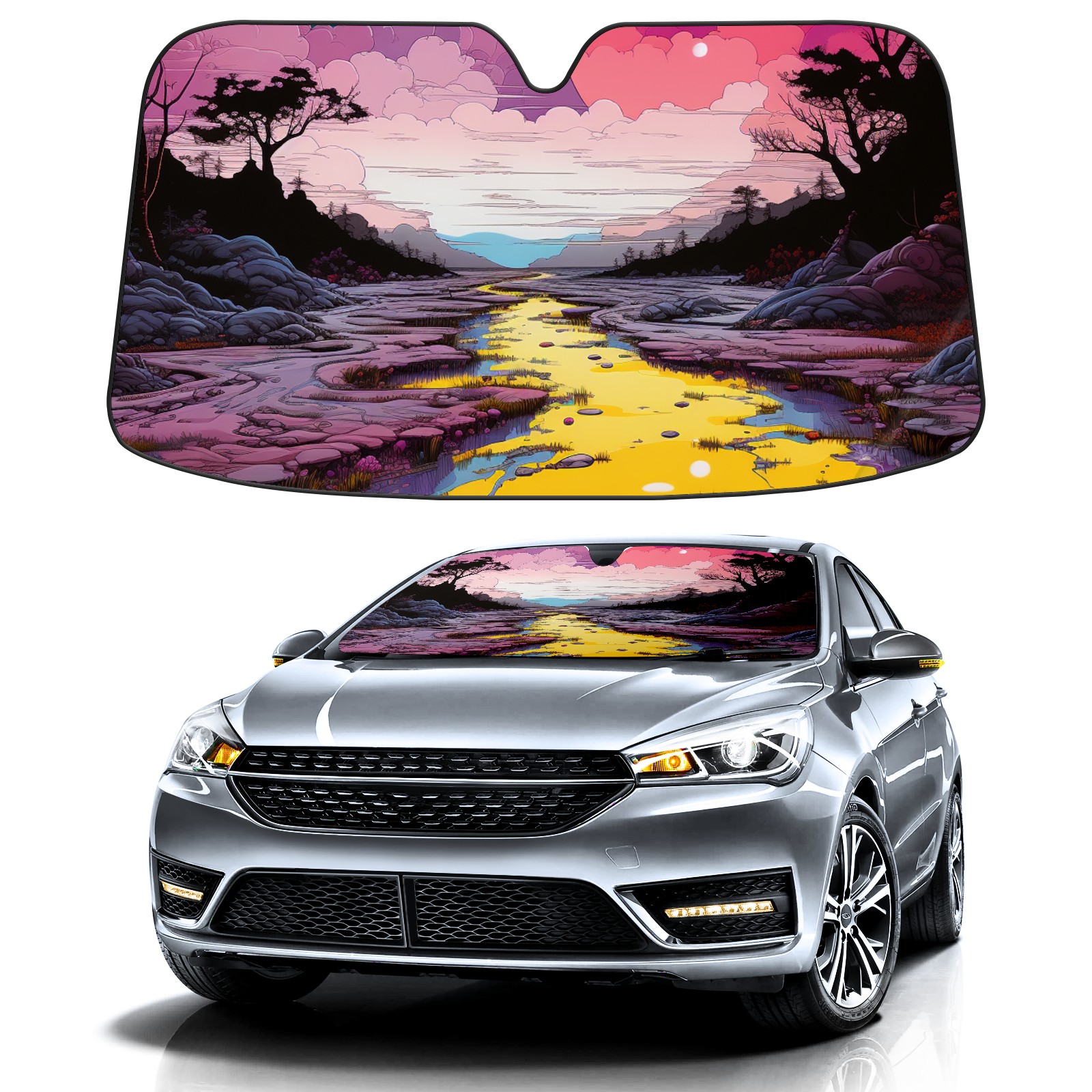 Car Windshield Sun Shade For Front Window An Image Of A Purple, Yellow, And Pink Scene1 Foldable Vehicle Windshield Car Sun Visor Covers Automotive Window Protector Car Camping Privacy Sun Blocker