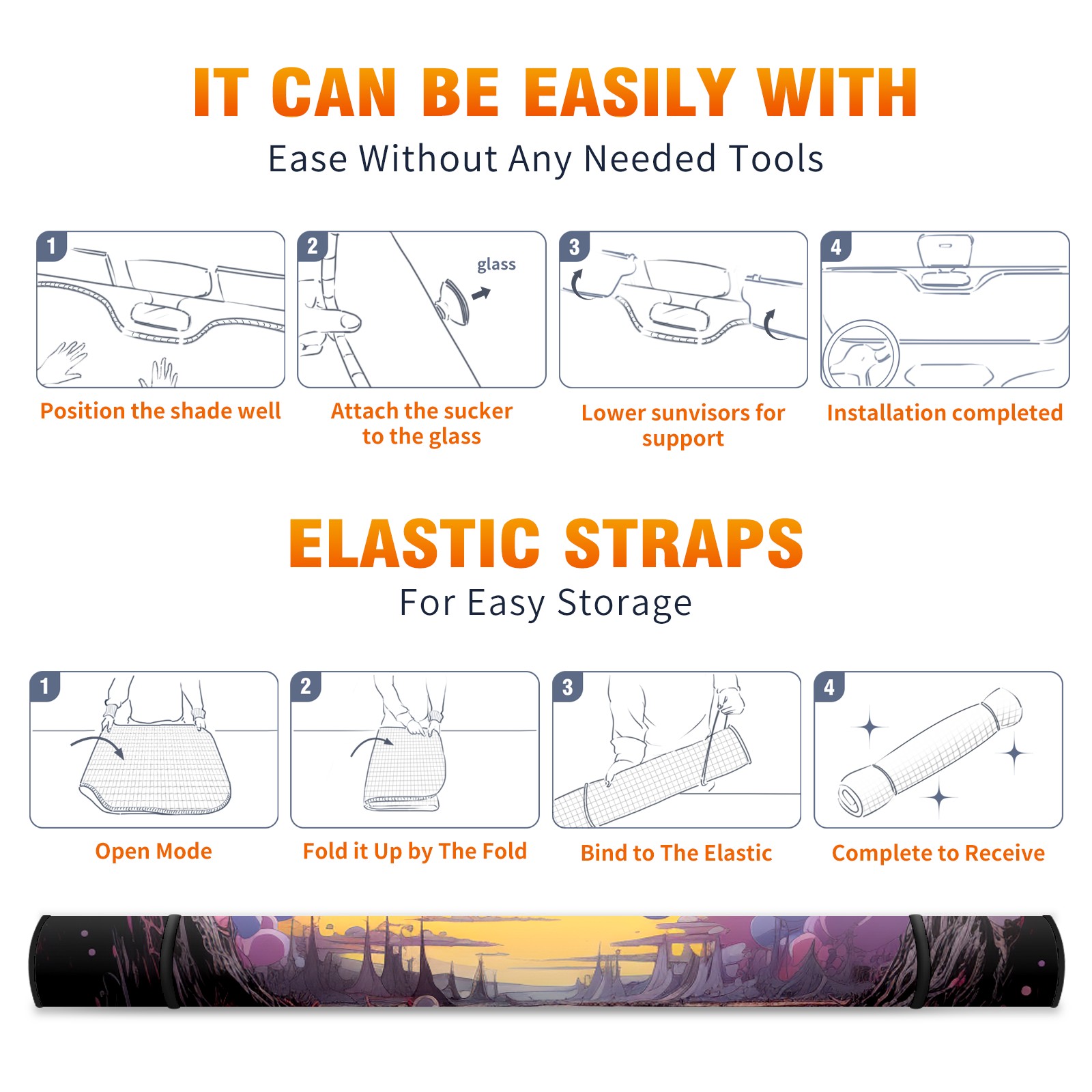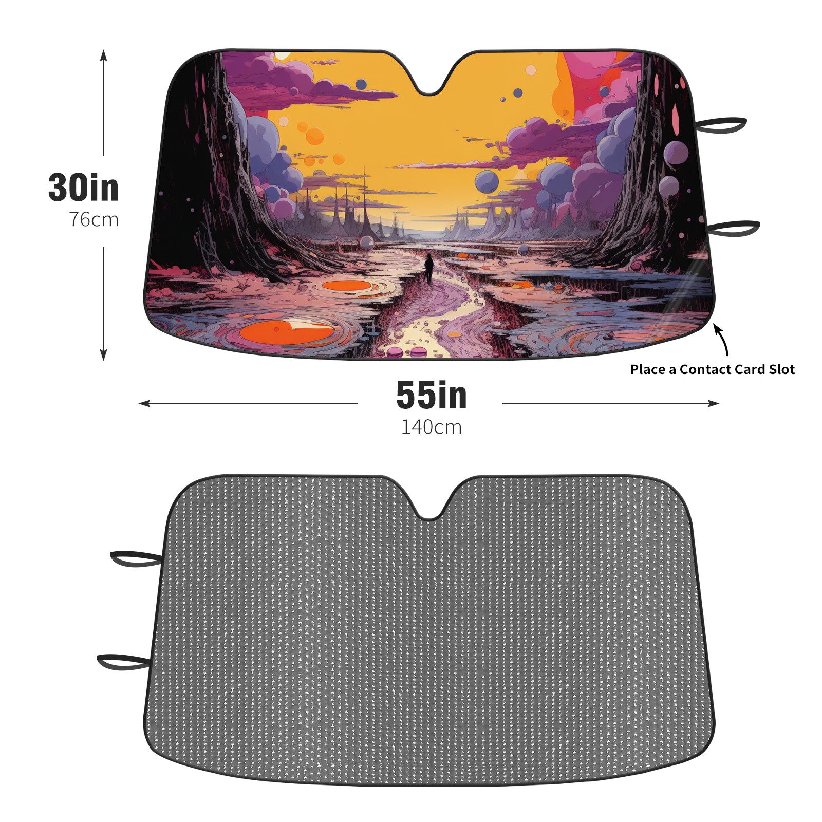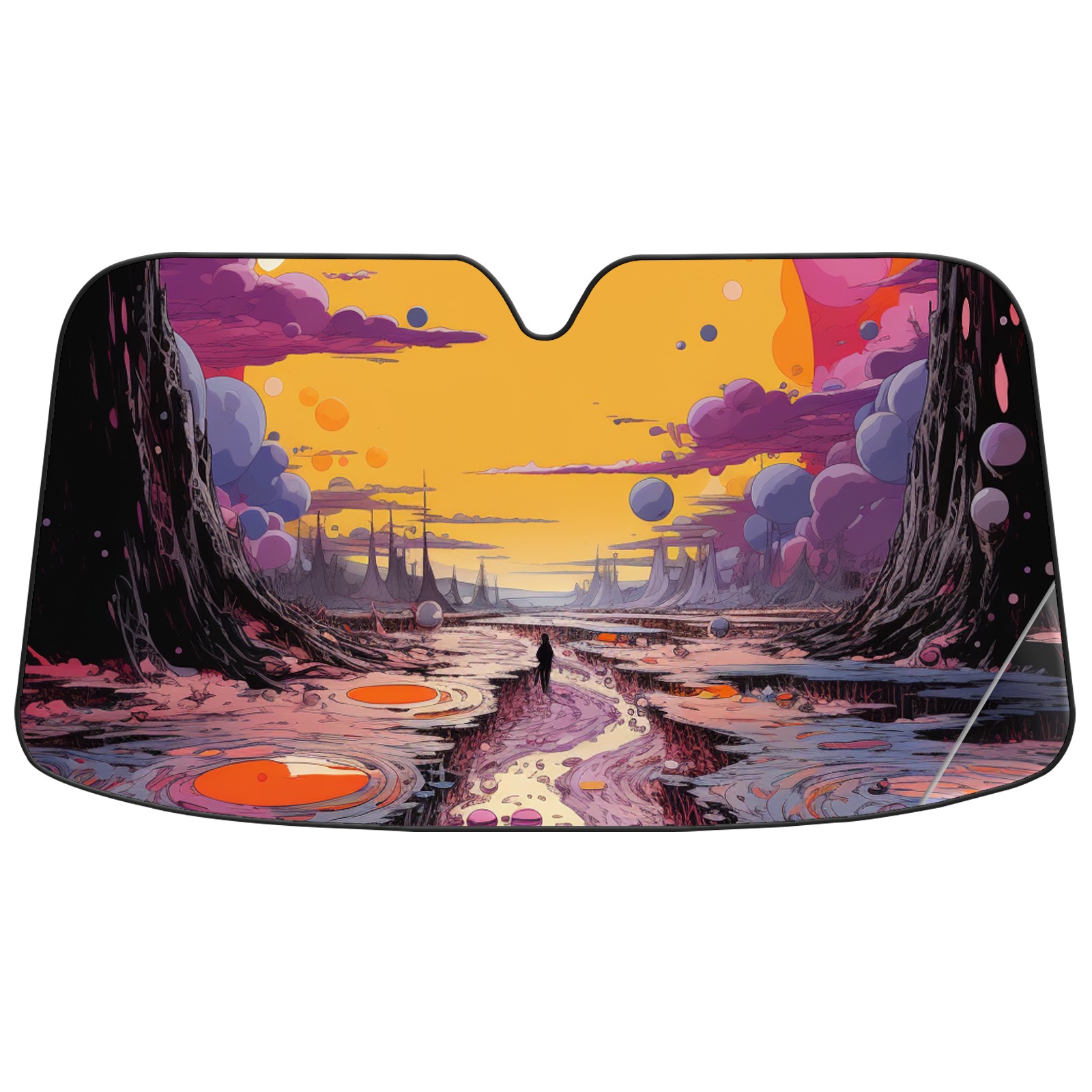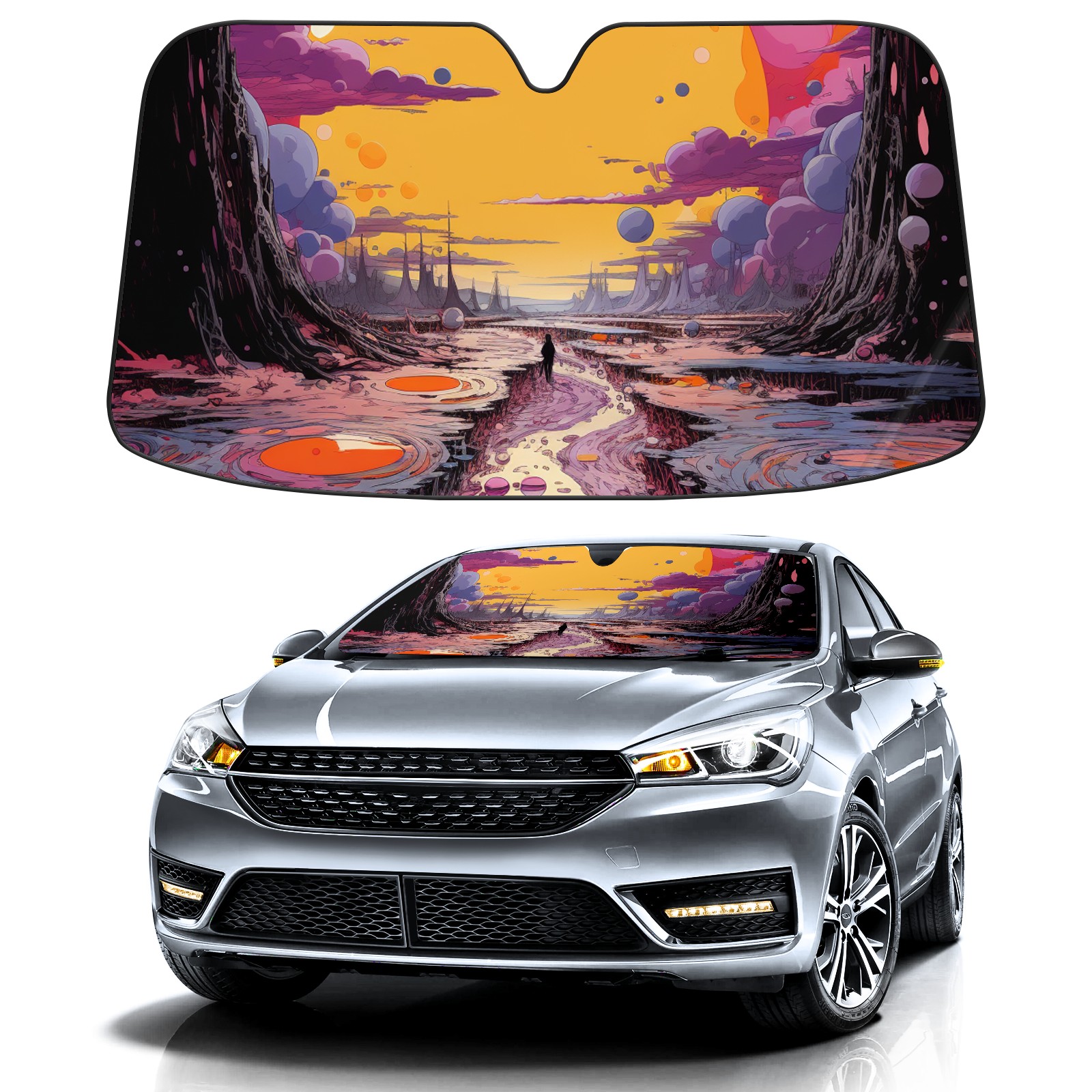 Car Windshield Sun Shade For Front Window An Image Of A Purple, Yellow, And Pink Scene Foldable Vehicle Windshield Car Sun Visor Covers Automotive Window Protector Car Camping Privacy Sun Blocker