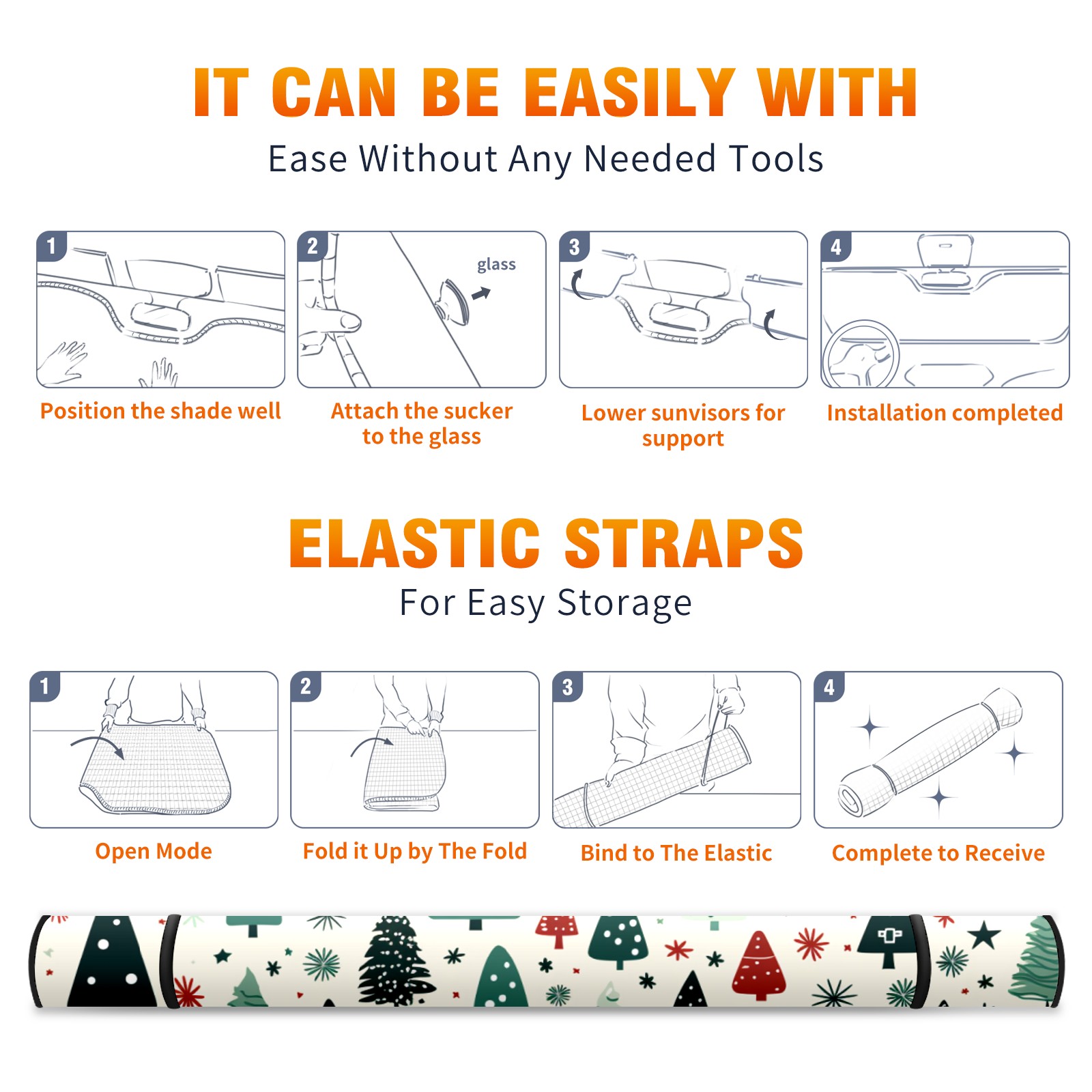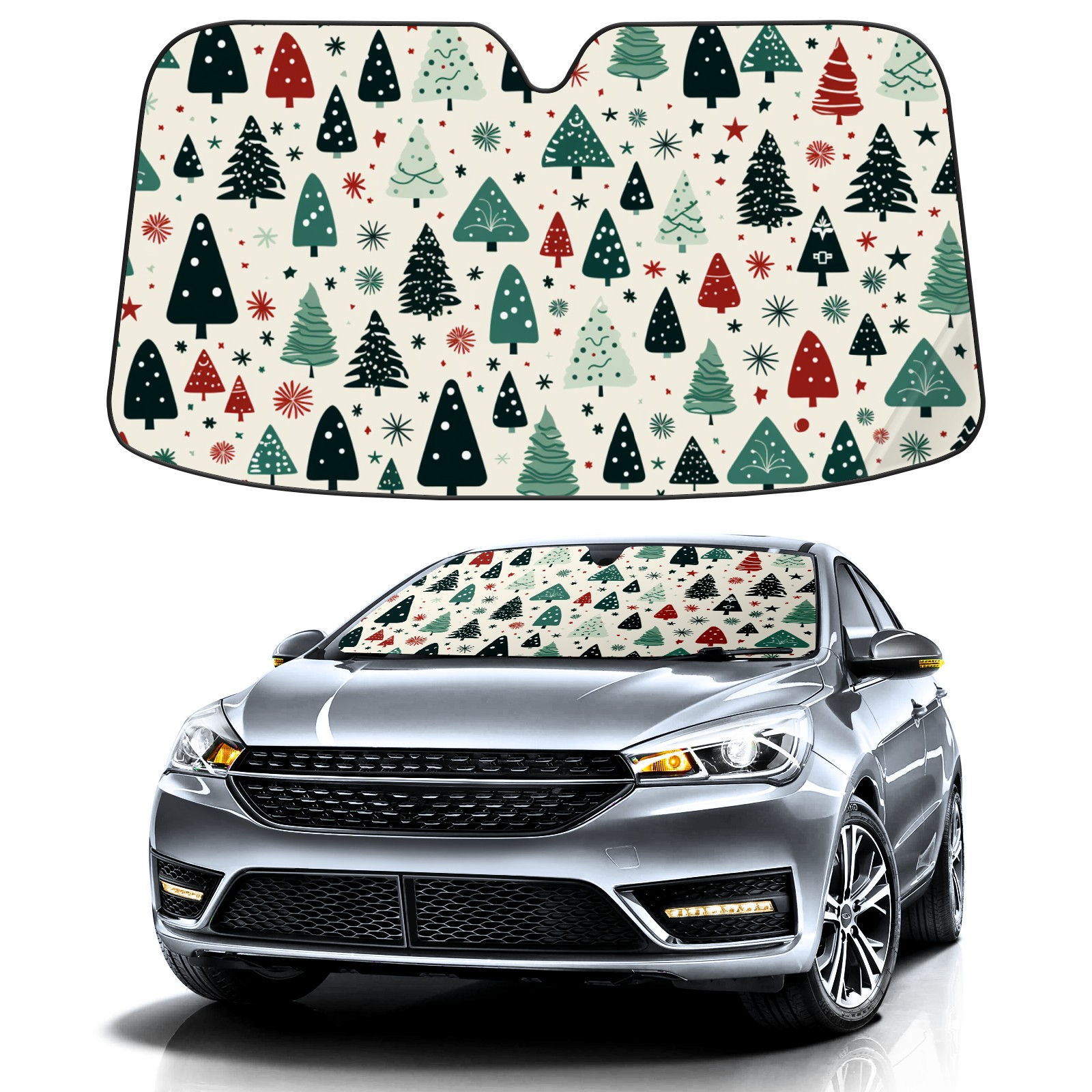 Car Windshield Sun Shade For Front Window Christmas Tree 3 Foldable Vehicle Windshield Car Sun Visor Covers Automotive Window Protector Car Camping Privacy Sun Blocker