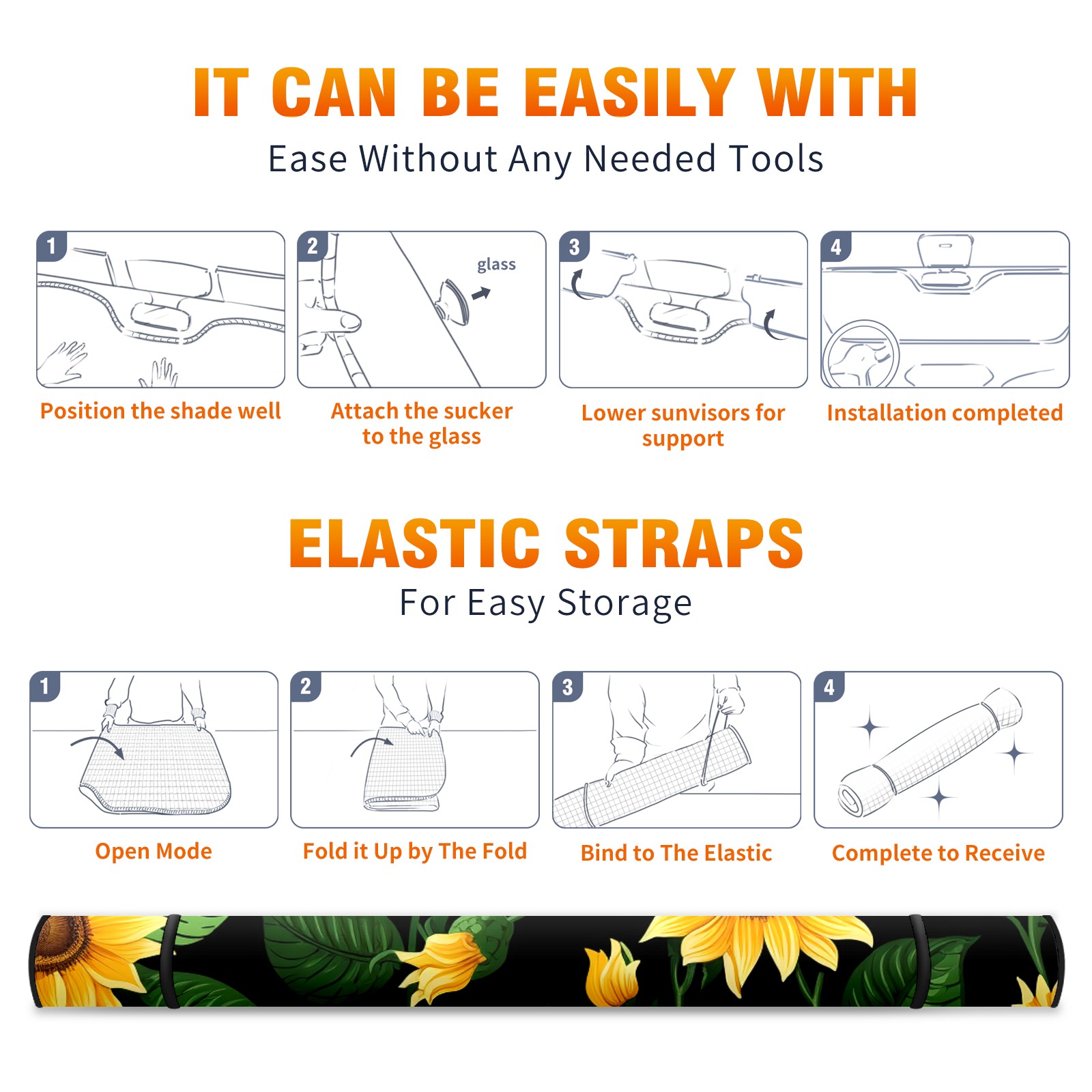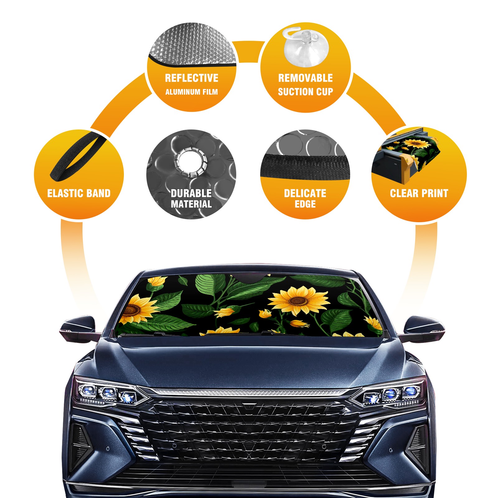 Car Windshield Sun Shade For Front Window Sunflowers Foldable Vehicle Windshield Car Sun Visor Covers Automotive Window Protector Car Camping Privacy Sun Blocker