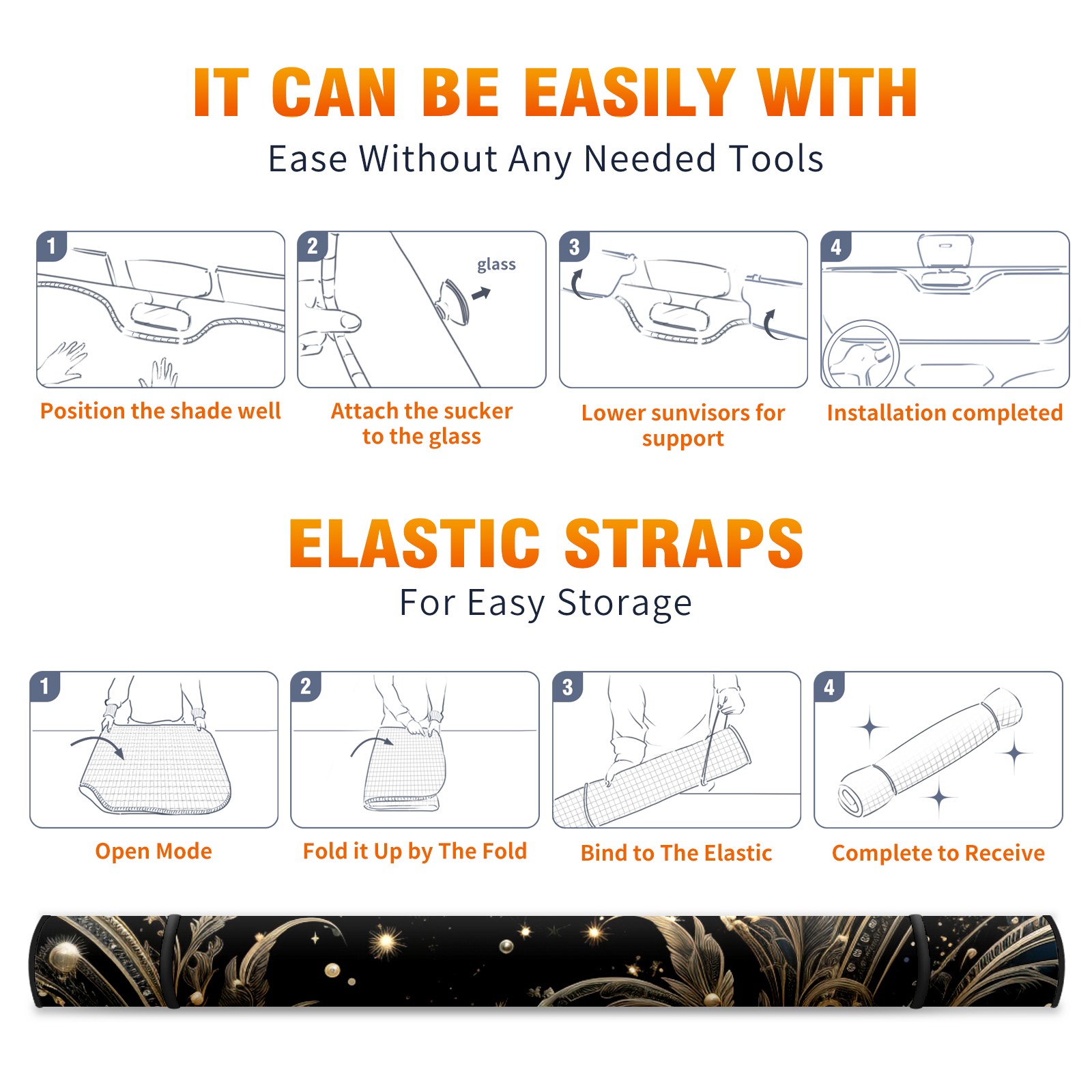 • Diameter /Size 63"L x 33.5"W Made from excellent materials which makes it sturdy and protects the car from the sun. Easy to use and pack. Makes the interior of the car cooler.You can easily stash the sunshade in the storage bag or store long term.It open and closes easy. Also the leather storage bag is durable and easy to put the umbrella back into.This windshield sunshade provides complete coverage and keeps your car interior cool under direct sun. It is easy to open and position under the windshield and around the rear-view mirror. Makes Your Car Easy To Identify, Perfect For Finding Your Car In Crowded Parking Lots And Garages.Great Choice: It Is A Great Gift For Dad, Boyfriend, Brother, Brother And Uncle, Friends, Classmates, Family And So On. Notice: Due To Difference Computer Monitors, The Color Maybe Slightly Different From Picture. As Different Measurement Methods, Measurement Data Will Float Within 2%.I Hope You Understand. If You Have Any Question About The Item Please Do Not Hesitate To Contact Us Immediately And We Will Give You A Satisfactory Reply Within 24 Hours.