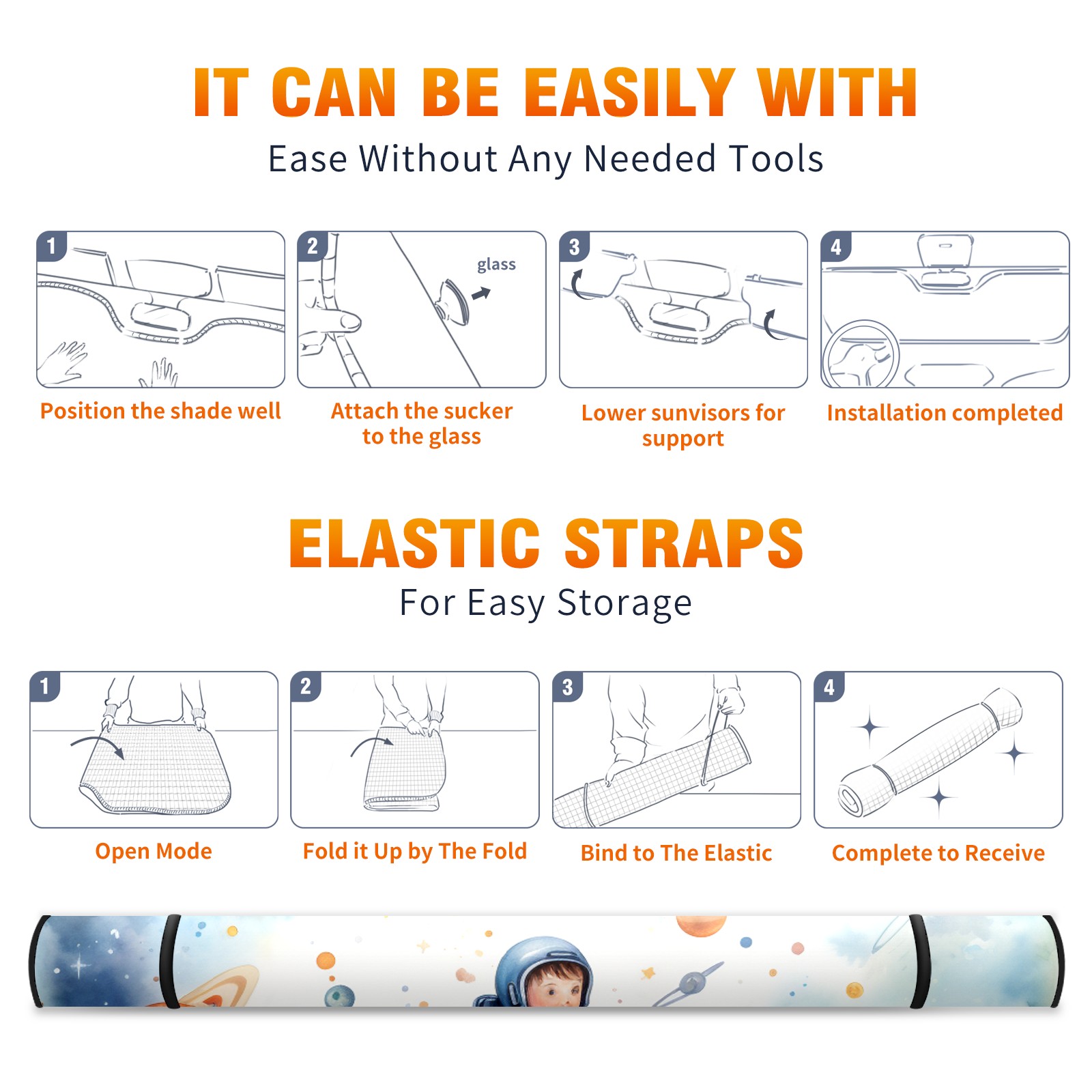 Car Windshield Sun Shade For Front Window Astronaut Baby Foldable Vehicle Windshield Car Sun Visor Covers Automotive Window Protector Car Camping Privacy Sun Blocker