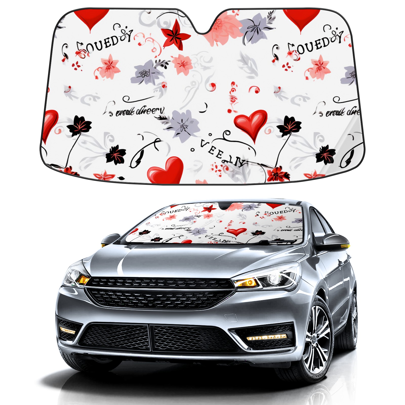 Car Windshield Sun Shade For Front Window Letter Foldable Vehicle Windshield Car Sun Visor Covers Automotive Window Protector Car Camping Privacy Sun Blocker