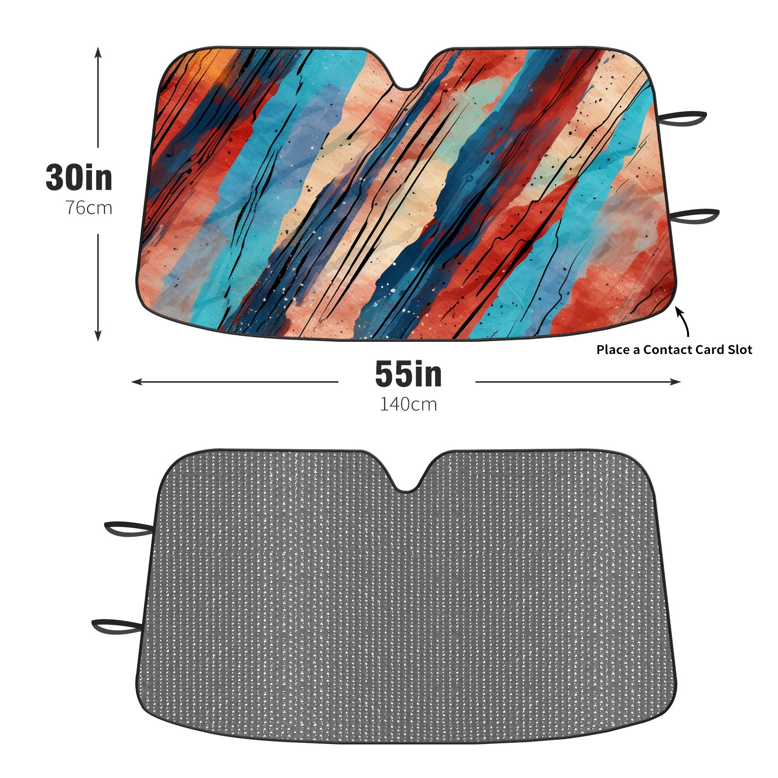 Diameter /Size 63"L x 33.5"W Made from excellent materials which makes it sturdy and protects the car from the sun. Easy to use and pack. Makes the interior of the car cooler.You can easily stash the sunshade in the storage bag or store long term.It open and closes easy. Also the leather storage bag is durable and easy to put the umbrella back into.This windshield sunshade provides complete coverage and keeps your car interior cool under direct sun. It is easy to open and position under the windshield and around the rear-view mirror. Makes Your Car Easy To Identify, Perfect For Finding Your Car In Crowded Parking Lots And Garages.Great Choice: It Is A Great Gift For Dad, Boyfriend, Brother, Brother And Uncle, Friends, Classmates, Family And So On. Notice: Due To Difference Computer Monitors, The Color Maybe Slightly Different From Picture. As Different Measurement Methods, Measurement Data Will Float Within 2%.I Hope You Understand. If You Have Any Question About The Item Please Do Not Hesitate To Contact Us Immediately And We Will Give You A Satisfactory Reply Within 24 Hours.