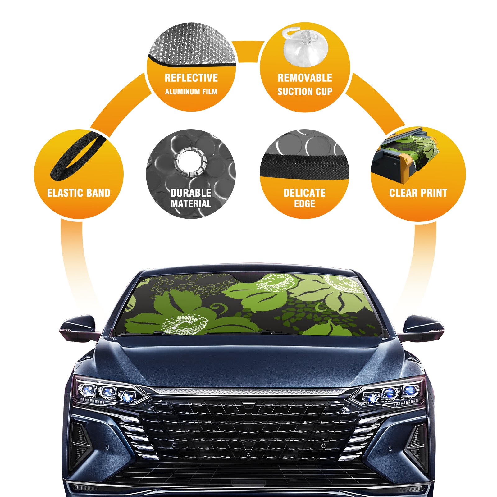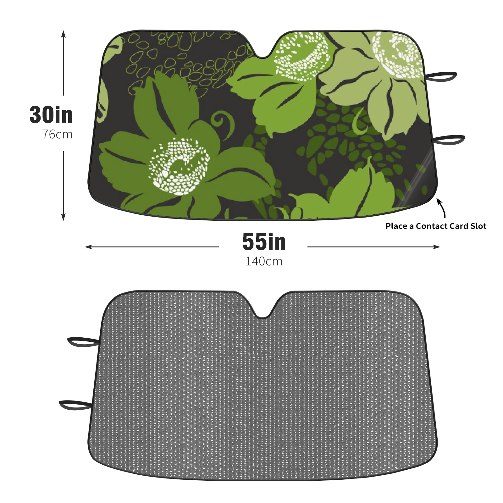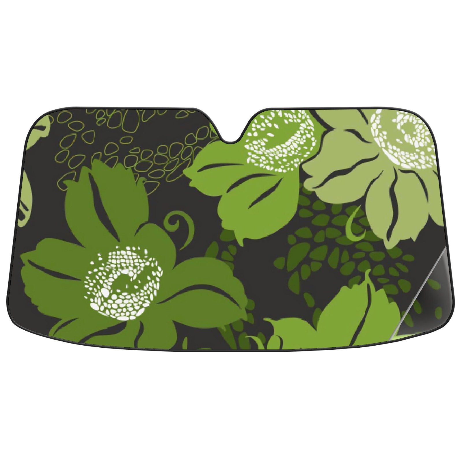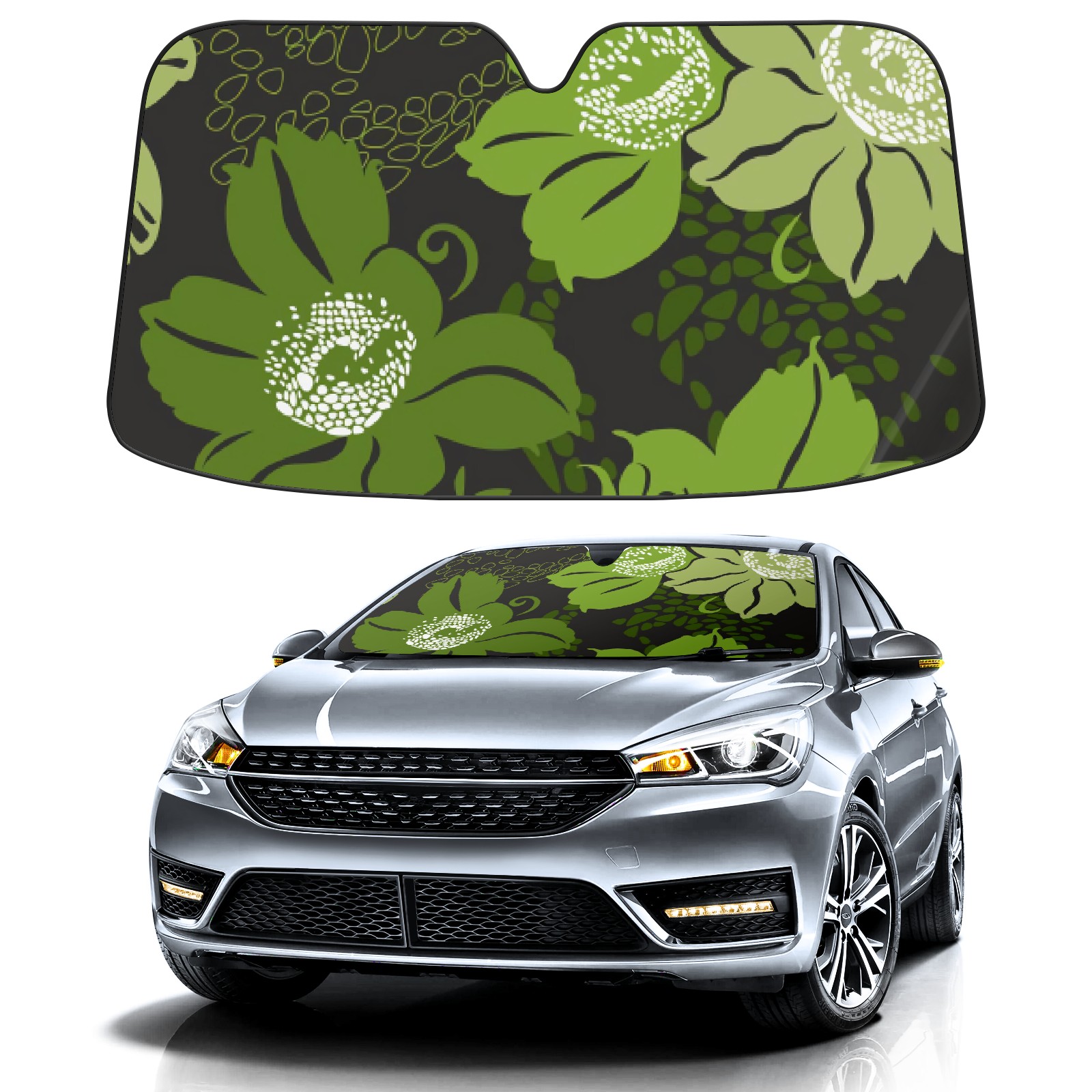Car Windshield Sun Shade For Front Window Black With Green Flowers Foldable Vehicle Windshield Car Sun Visor Covers Automotive Window Protector Car Camping Privacy Sun Blocker