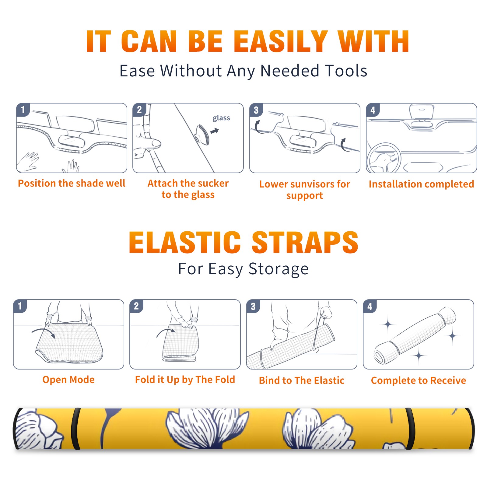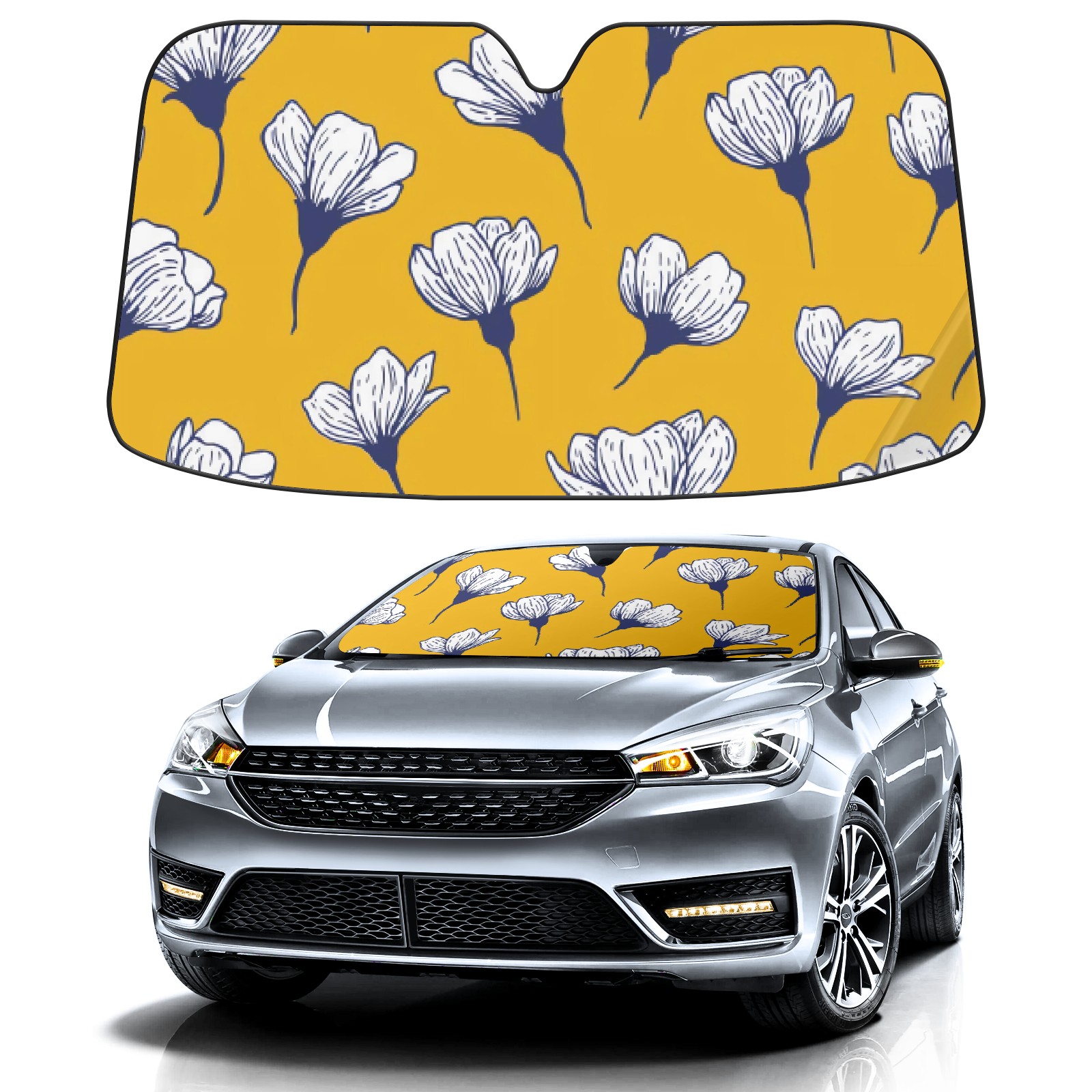 Car Windshield Sun Shade For Front Window Yellow With White Petals Foldable Vehicle Windshield Car Sun Visor Covers Automotive Window Protector Car Camping Privacy Sun Blocker