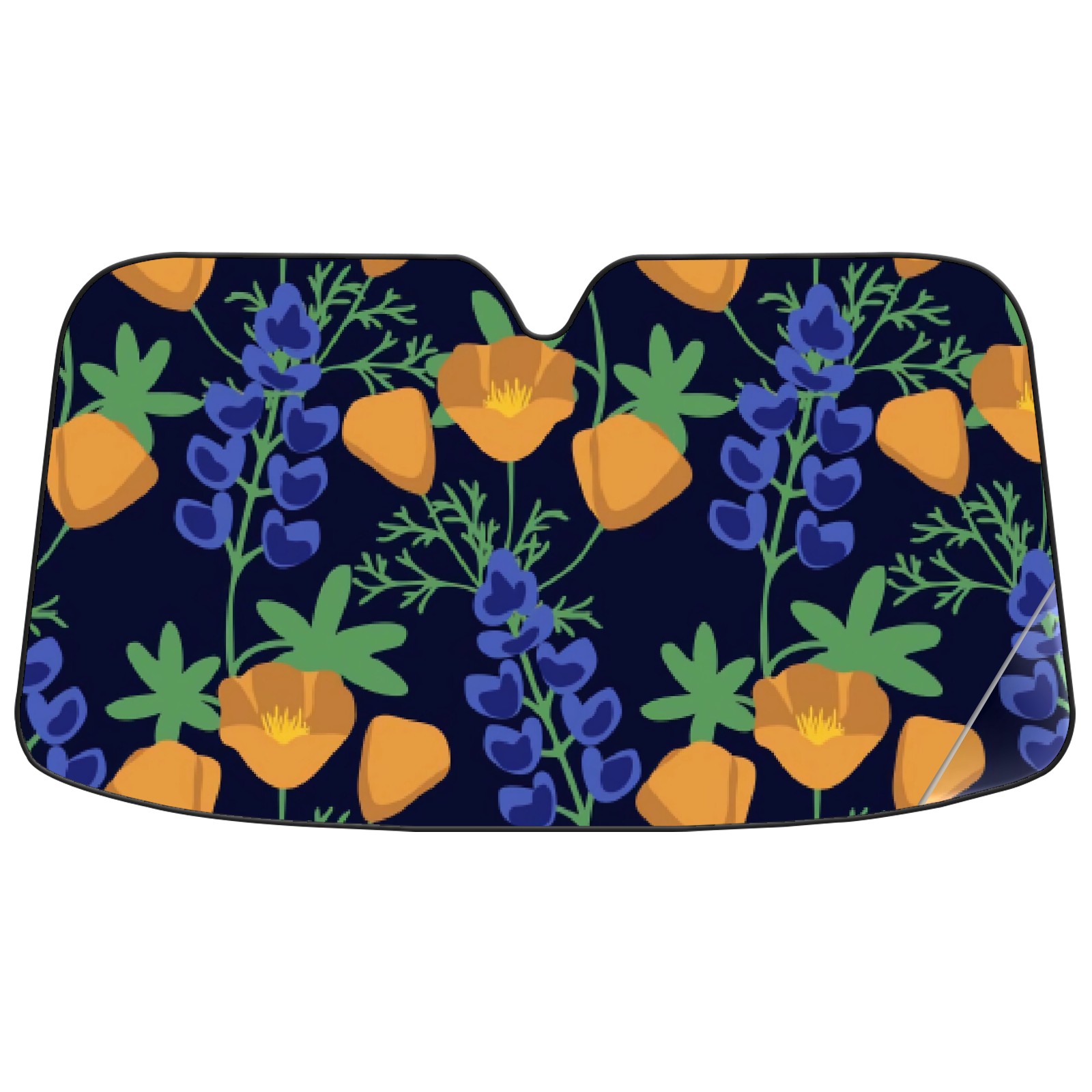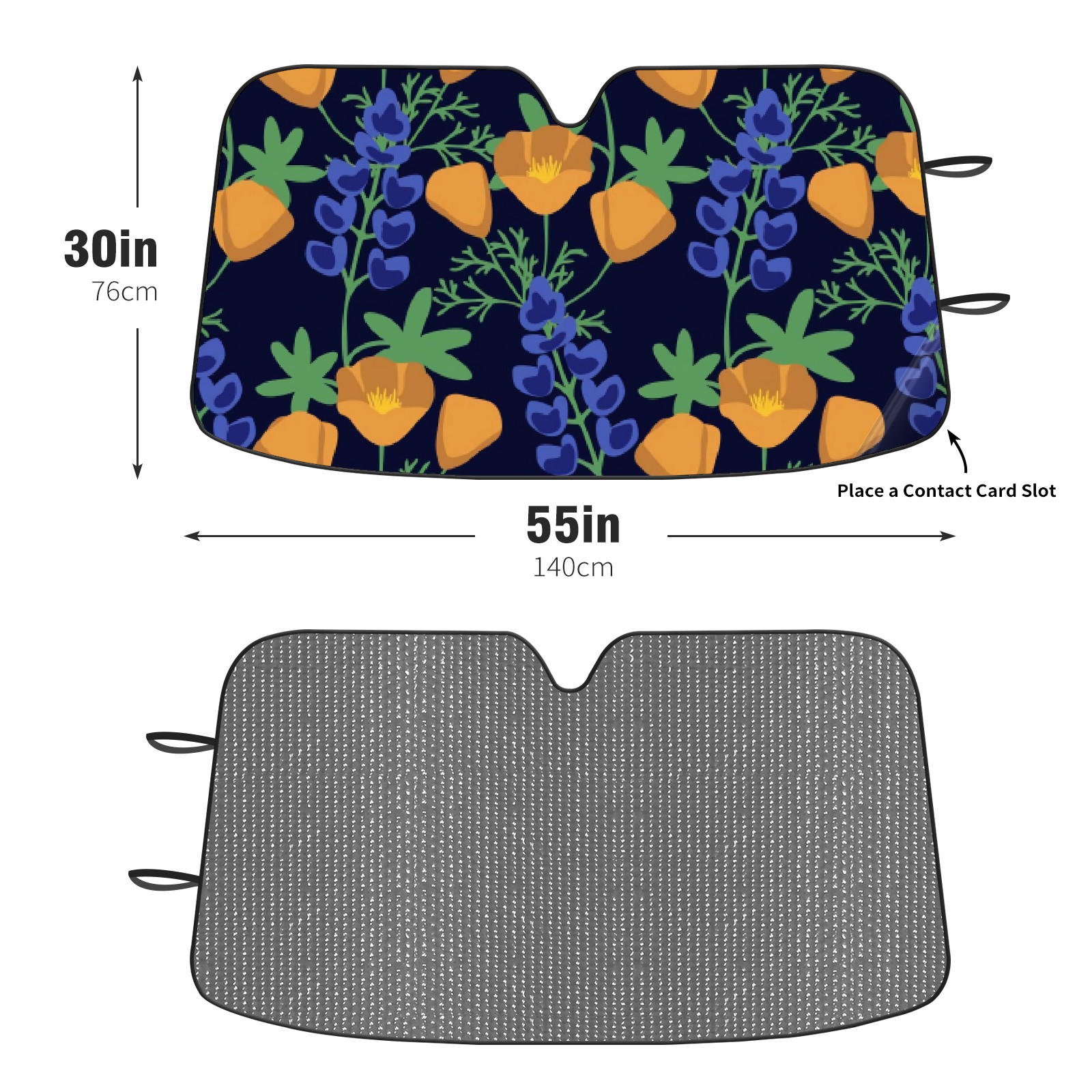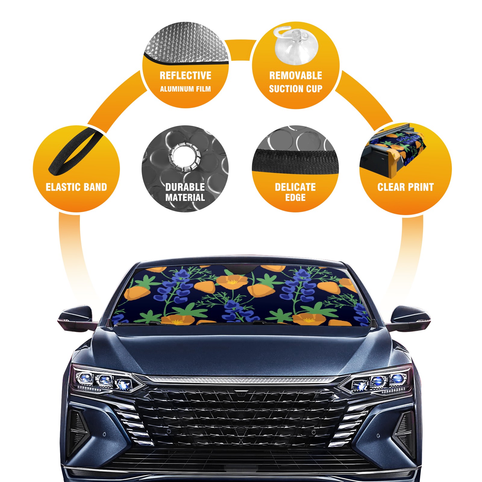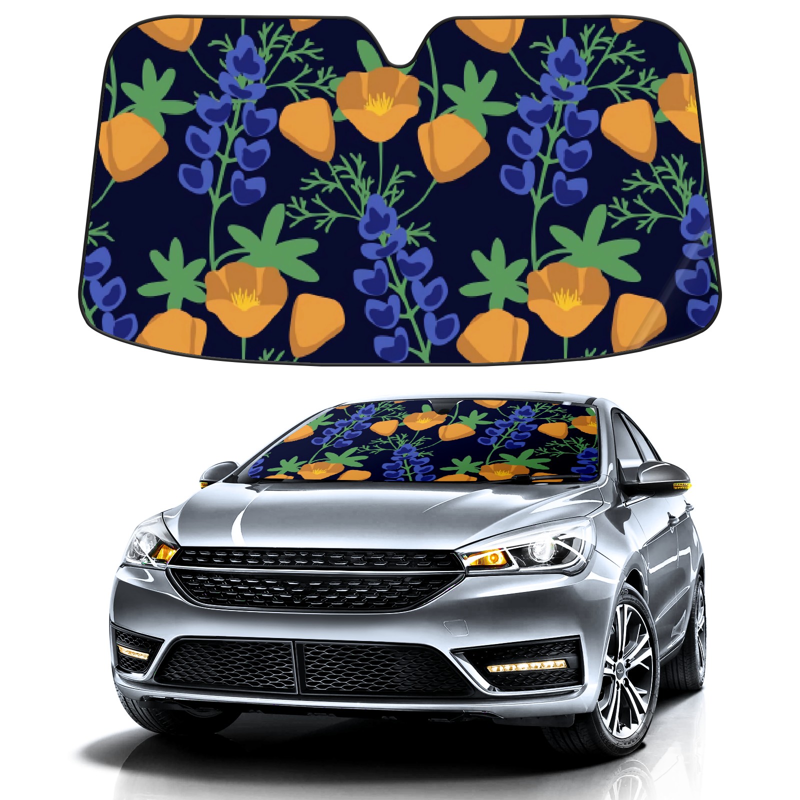 Car Windshield Sun Shade For Front Window Blue Yellow Purple Flower Foldable Vehicle Windshield Car Sun Visor Covers Automotive Window Protector Car Camping Privacy Sun Blocker