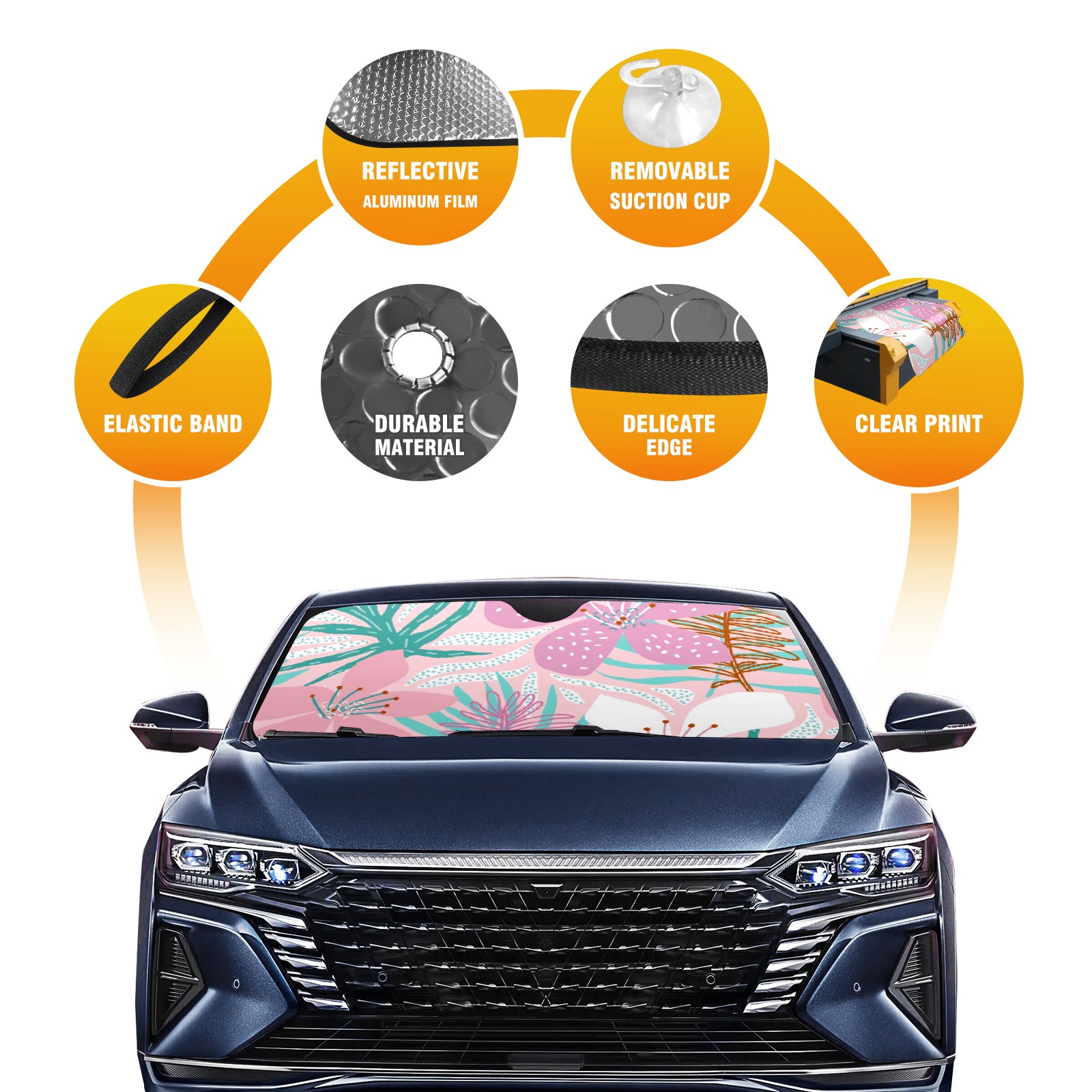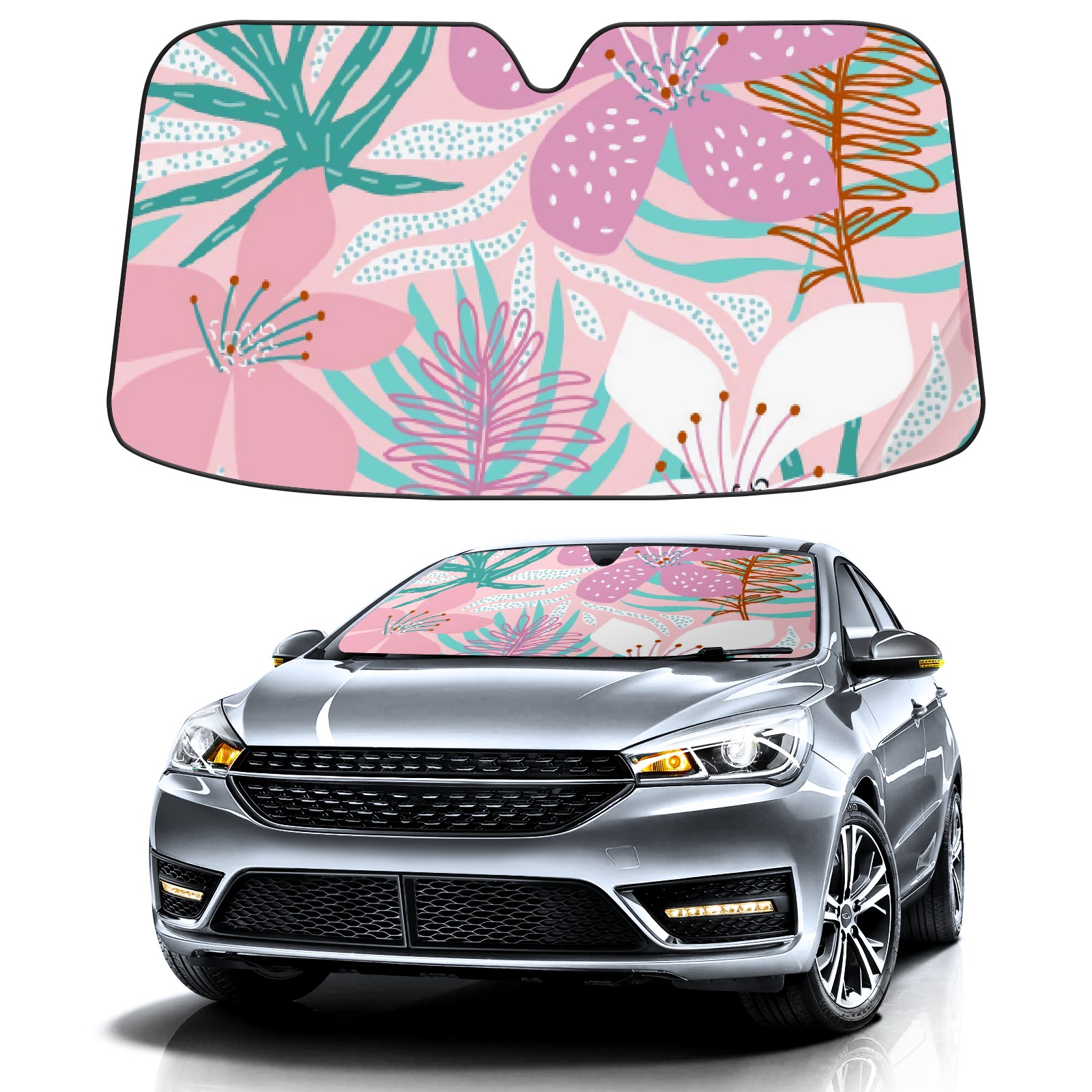 Car Windshield Sun Shade For Front Window Foundation Powder White Plant Foldable Vehicle Windshield Car Sun Visor Covers Automotive Window Protector Car Camping Privacy Sun Blocker