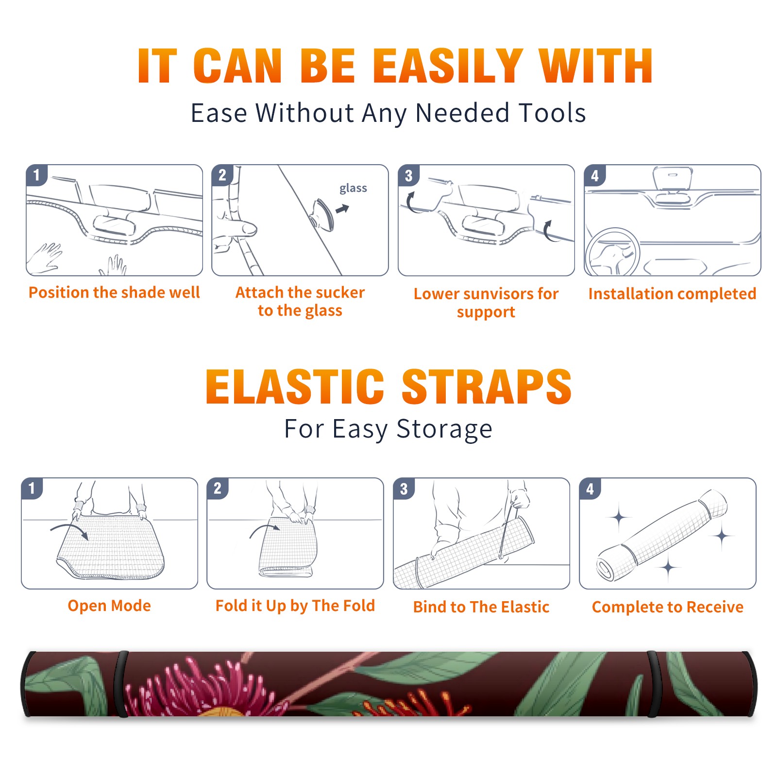 • Diameter /Size 63"L x 33.5"W Made from excellent materials which makes it sturdy and protects the car from the sun. Easy to use and pack. Makes the interior of the car cooler.You can easily stash the sunshade in the storage bag or store long term.It open and closes easy. Also the leather storage bag is durable and easy to put the umbrella back into.This windshield sunshade provides complete coverage and keeps your car interior cool under direct sun. It is easy to open and position under the windshield and around the rear-view mirror. Makes Your Car Easy To Identify, Perfect For Finding Your Car In Crowded Parking Lots And Garages.Great Choice: It Is A Great Gift For Dad, Boyfriend, Brother, Brother And Uncle, Friends, Classmates, Family And So On. Notice: Due To Difference Computer Monitors, The Color Maybe Slightly Different From Picture. As Different Measurement Methods, Measurement Data Will Float Within 2%.I Hope You Understand. If You Have Any Question About The Item Please Do Not Hesitate To Contact Us Immediately And We Will Give You A Satisfactory Reply Within 24 Hours.