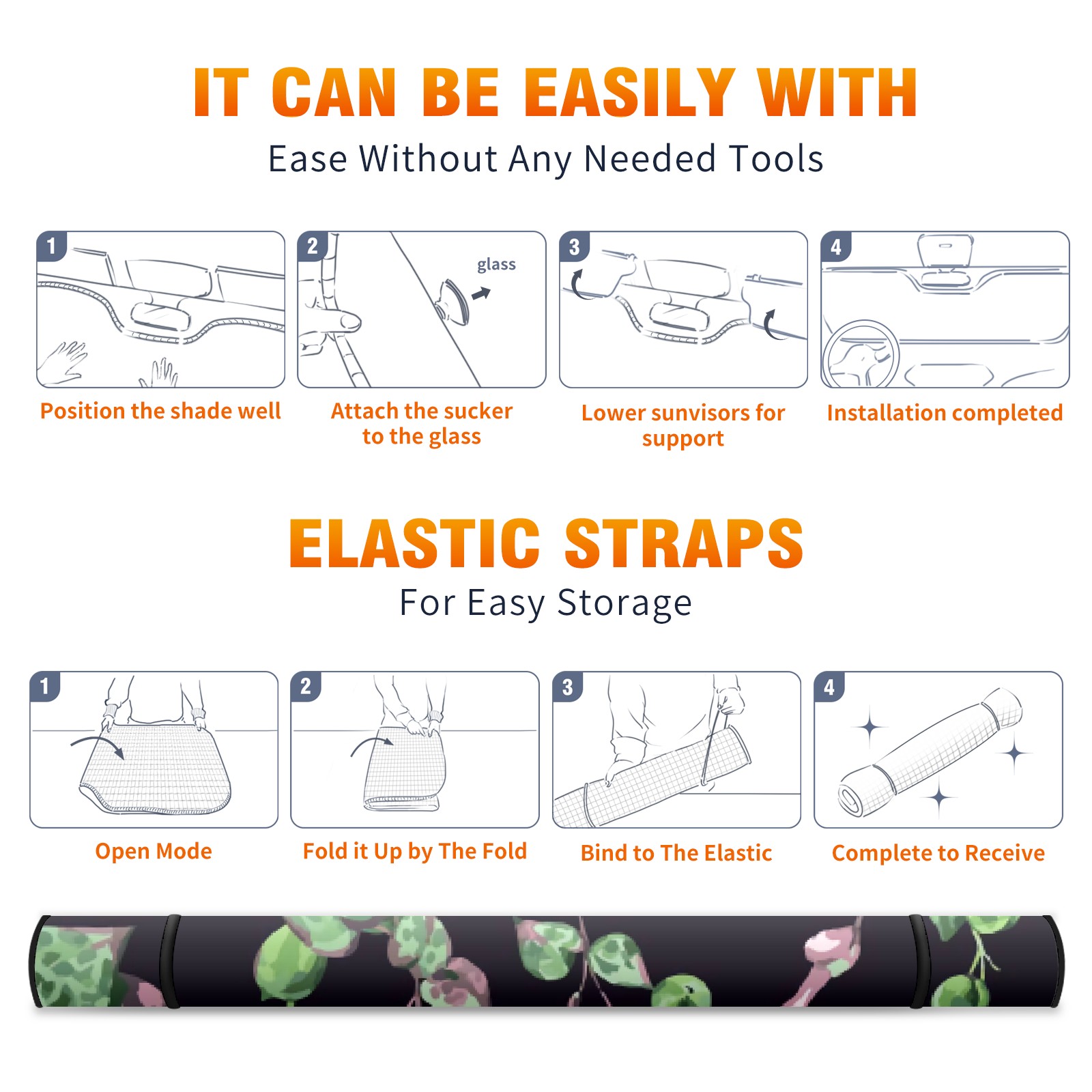 Car Windshield Sun Shade For Front Window Black Green Plants Foldable Vehicle Windshield Car Sun Visor Covers Automotive Window Protector Car Camping Privacy Sun Blocker