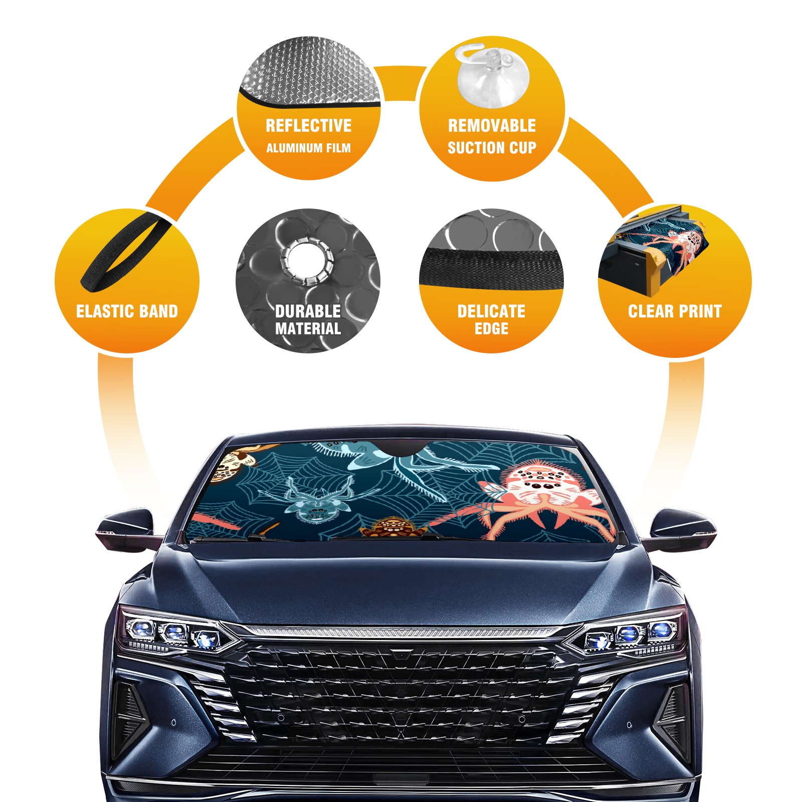 Car Windshield Sun Shade For Front Window Cartoon Blue Bottom Spider Foldable Vehicle Windshield Car Sun Visor Covers Automotive Window Protector Car Camping Privacy Sun Blocker