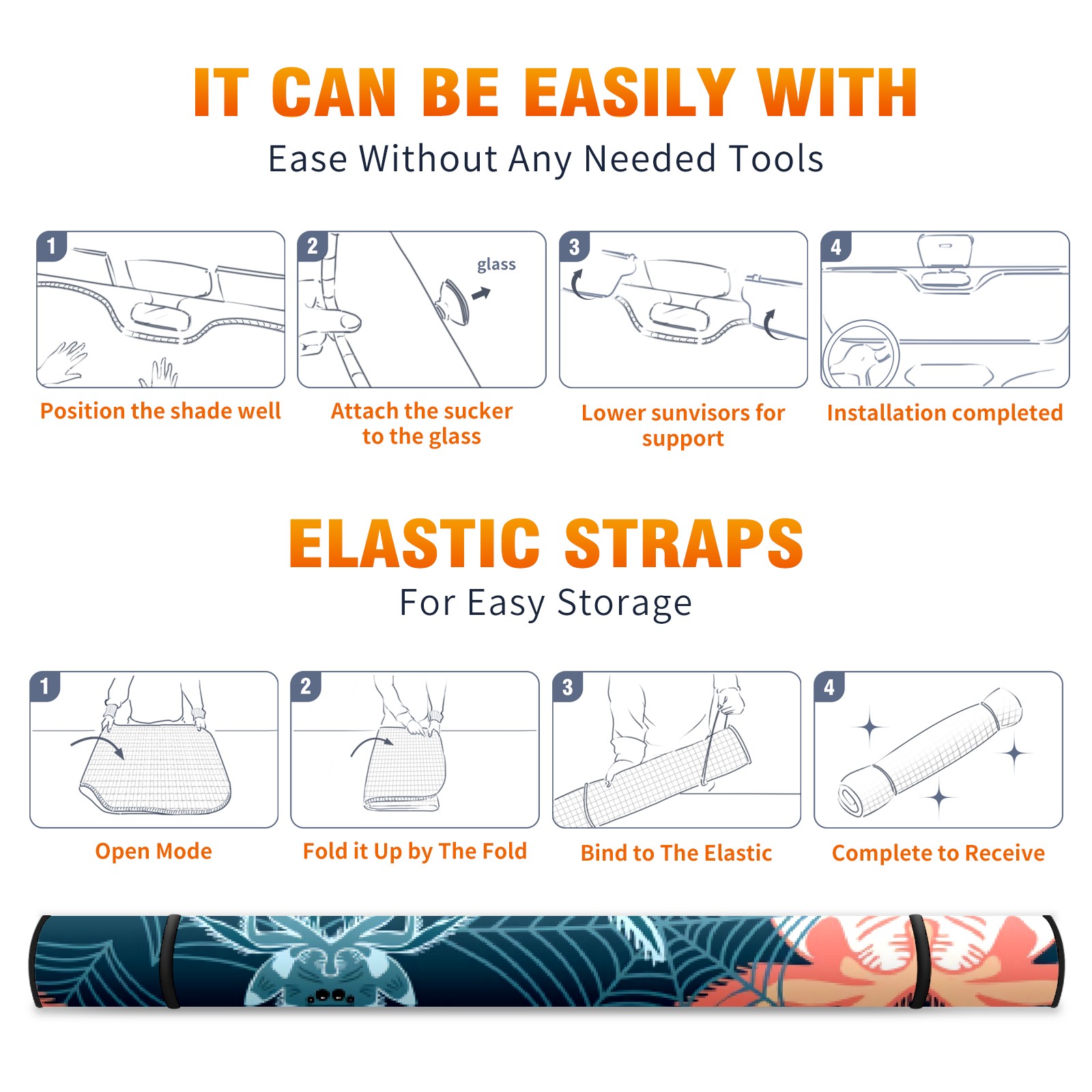 • Diameter /Size 63"L x 33.5"W Made from excellent materials which makes it sturdy and protects the car from the sun. Easy to use and pack. Makes the interior of the car cooler.You can easily stash the sunshade in the storage bag or store long term.It open and closes easy. Also the leather storage bag is durable and easy to put the umbrella back into.This windshield sunshade provides complete coverage and keeps your car interior cool under direct sun. It is easy to open and position under the windshield and around the rear-view mirror. Makes Your Car Easy To Identify, Perfect For Finding Your Car In Crowded Parking Lots And Garages.Great Choice: It Is A Great Gift For Dad, Boyfriend, Brother, Brother And Uncle, Friends, Classmates, Family And So On. Notice: Due To Difference Computer Monitors, The Color Maybe Slightly Different From Picture. As Different Measurement Methods, Measurement Data Will Float Within 2%.I Hope You Understand. If You Have Any Question About The Item Please Do Not Hesitate To Contact Us Immediately And We Will Give You A Satisfactory Reply Within 24 Hours.