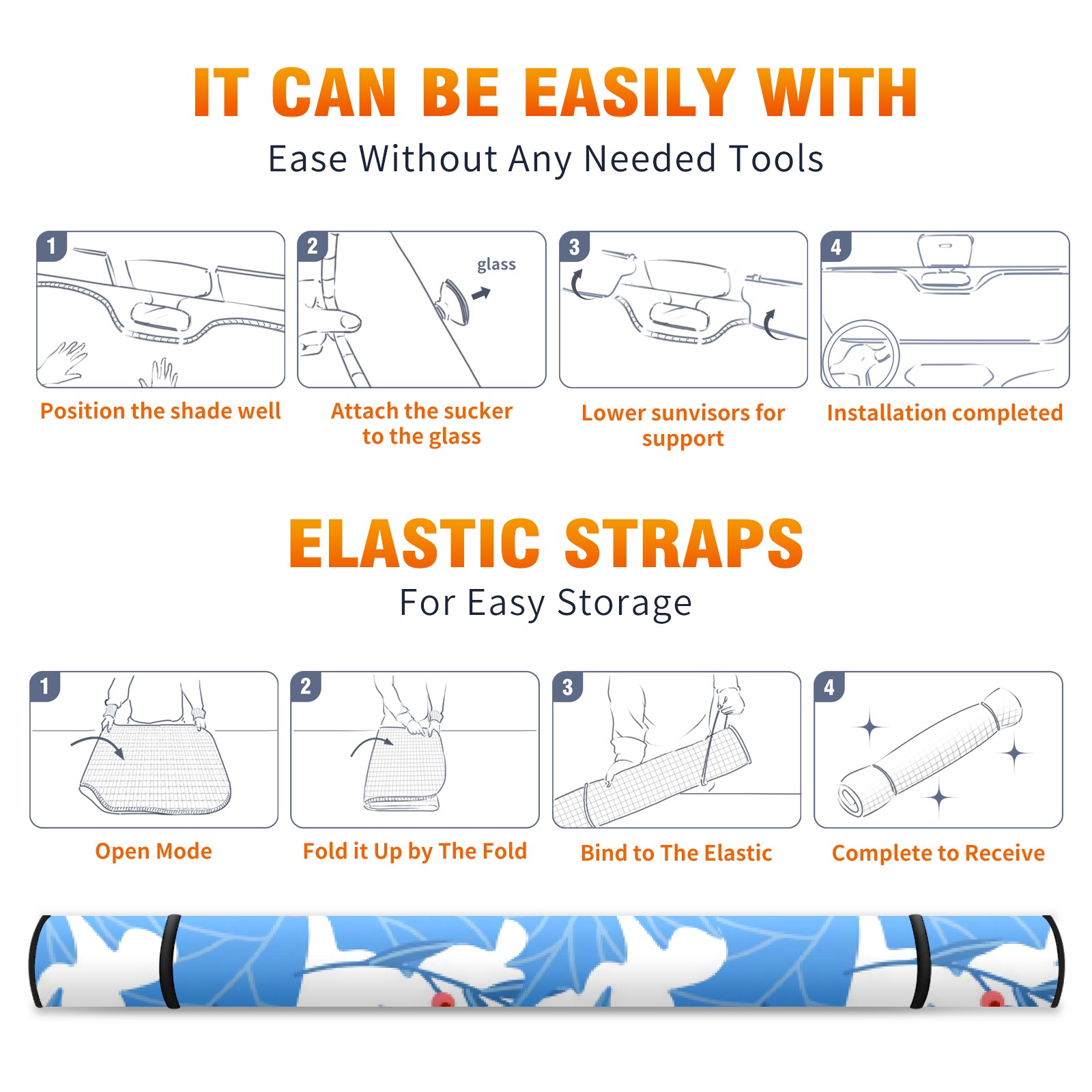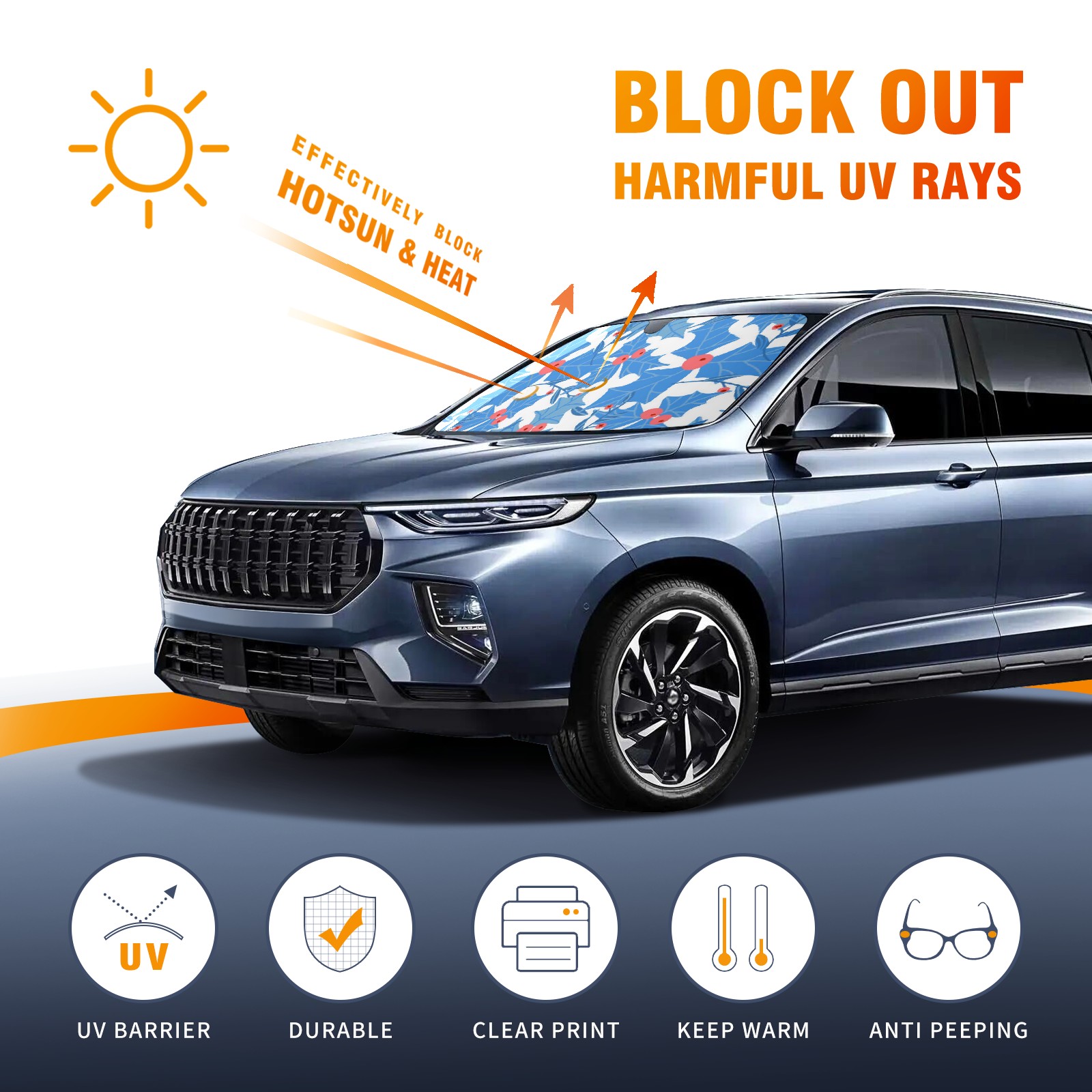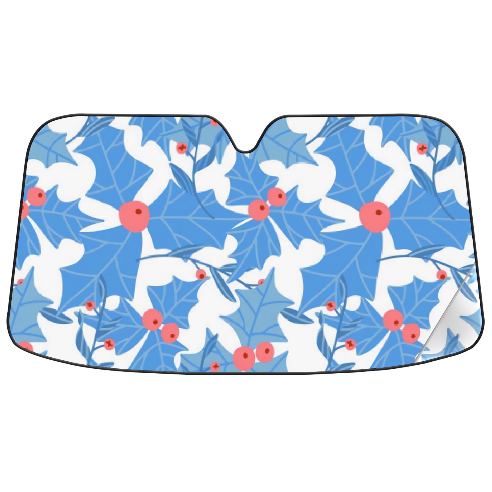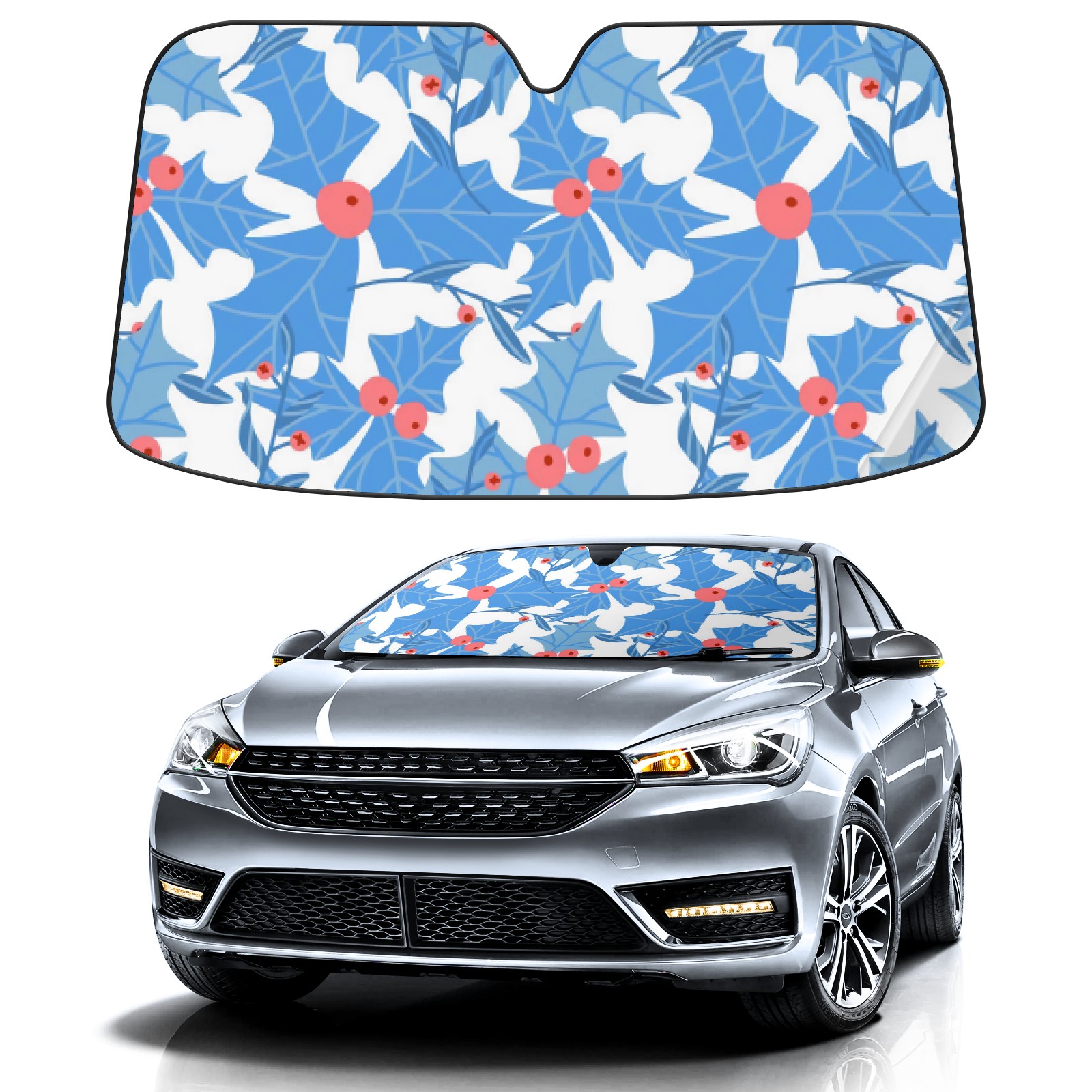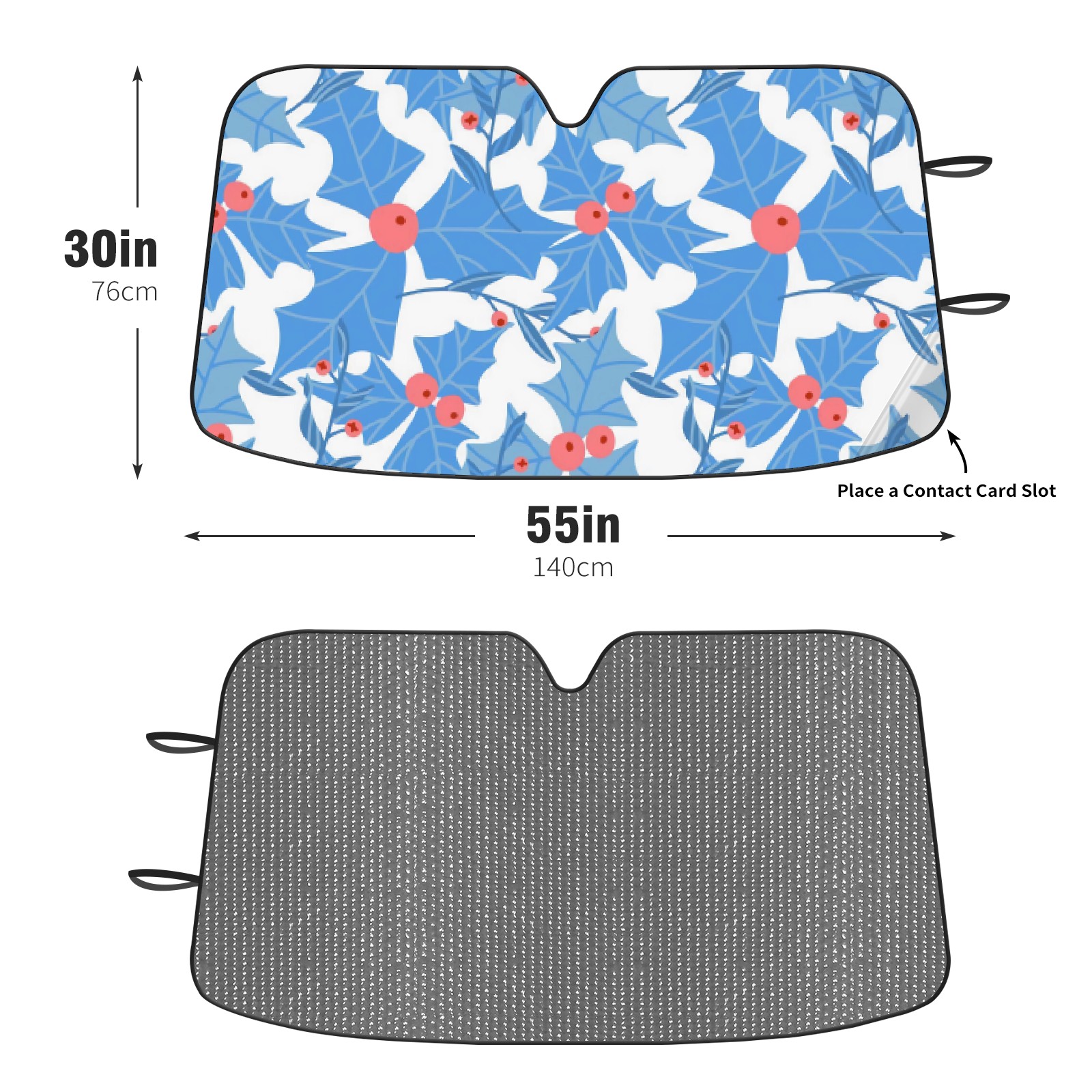 Car Windshield Sun Shade For Front Window White With Blue Leaves Foldable Vehicle Windshield Car Sun Visor Covers Automotive Window Protector Car Camping Privacy Sun Blocker