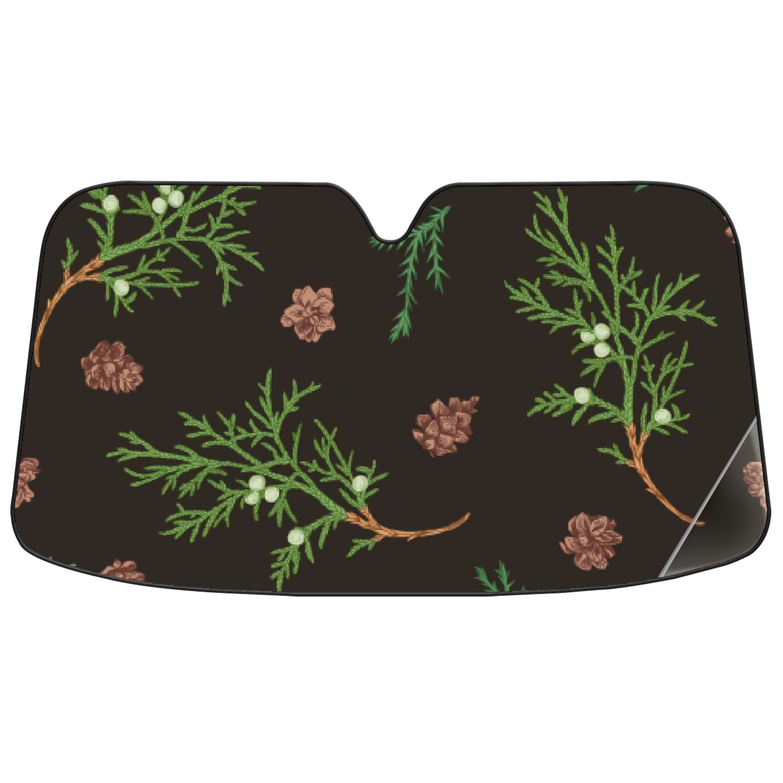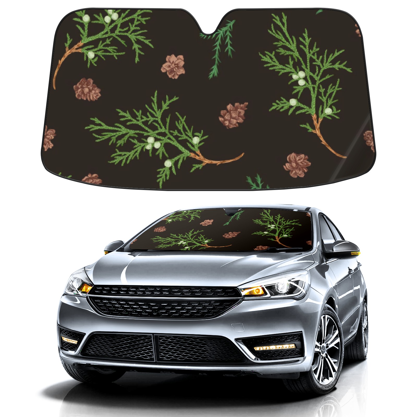 Car Windshield Sun Shade For Front Window Coffee Base Pine Nut Leaves Foldable Vehicle Windshield Car Sun Visor Covers Automotive Window Protector Car Camping Privacy Sun Blocker