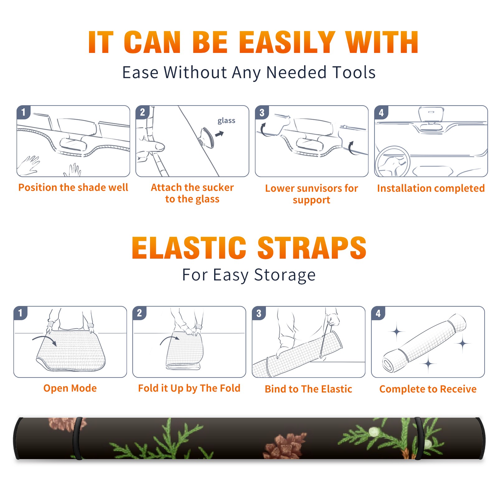 • Diameter /Size 63"L x 33.5"W Made from excellent materials which makes it sturdy and protects the car from the sun. Easy to use and pack. Makes the interior of the car cooler.You can easily stash the sunshade in the storage bag or store long term.It open and closes easy. Also the leather storage bag is durable and easy to put the umbrella back into.This windshield sunshade provides complete coverage and keeps your car interior cool under direct sun. It is easy to open and position under the windshield and around the rear-view mirror. Makes Your Car Easy To Identify, Perfect For Finding Your Car In Crowded Parking Lots And Garages.Great Choice: It Is A Great Gift For Dad, Boyfriend, Brother, Brother And Uncle, Friends, Classmates, Family And So On. Notice: Due To Difference Computer Monitors, The Color Maybe Slightly Different From Picture. As Different Measurement Methods, Measurement Data Will Float Within 2%.I Hope You Understand. If You Have Any Question About The Item Please Do Not Hesitate To Contact Us Immediately And We Will Give You A Satisfactory Reply Within 24 Hours.