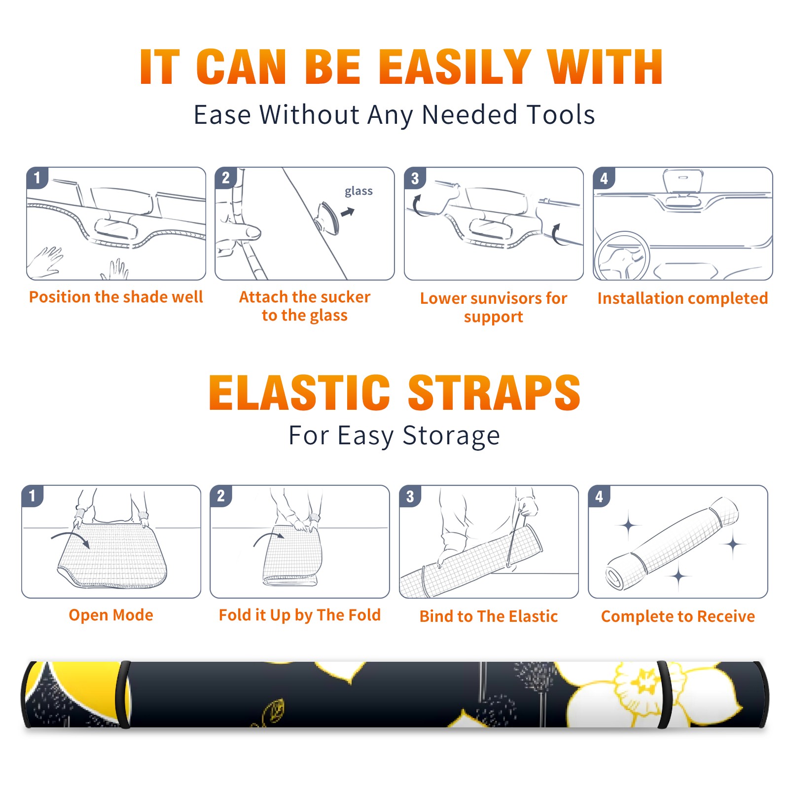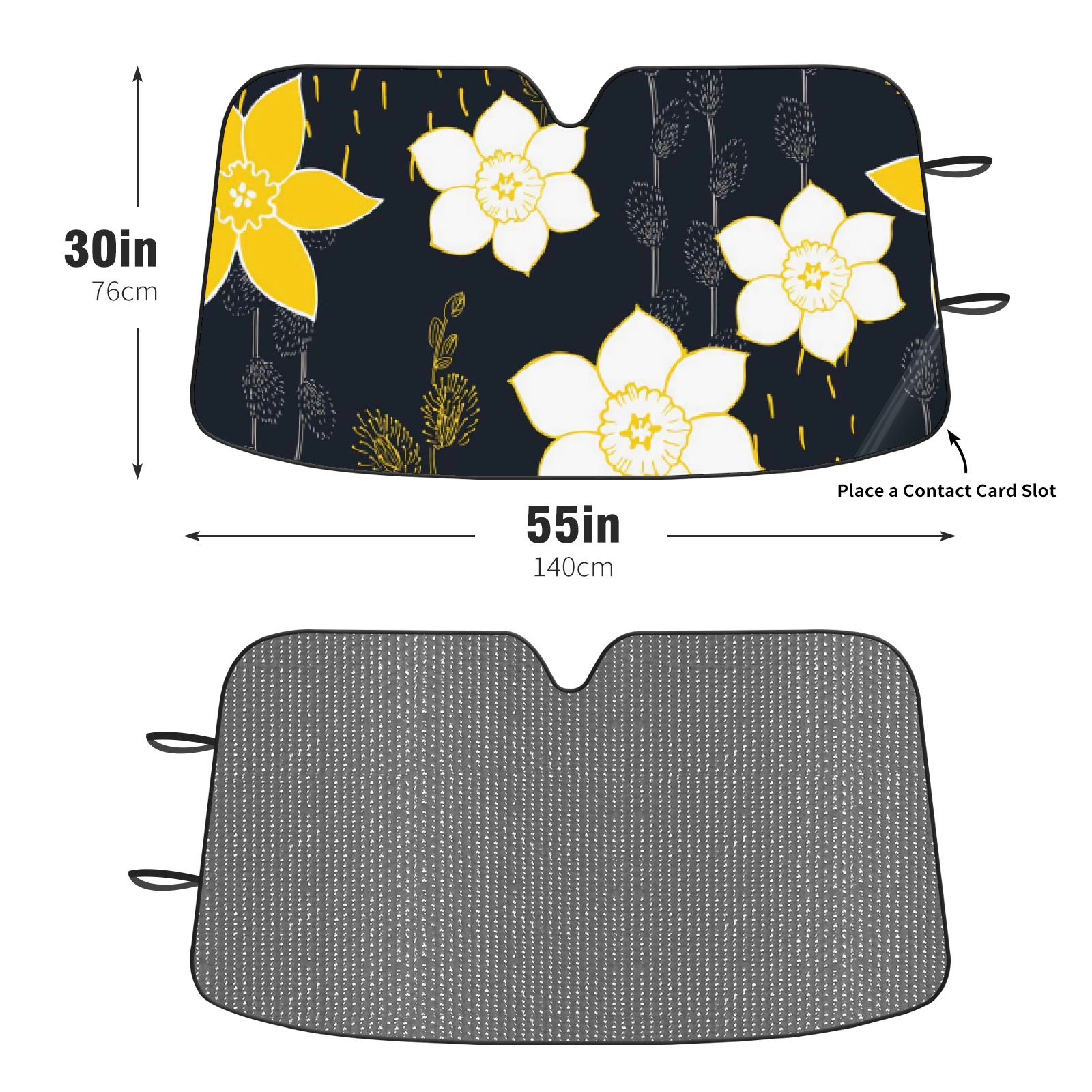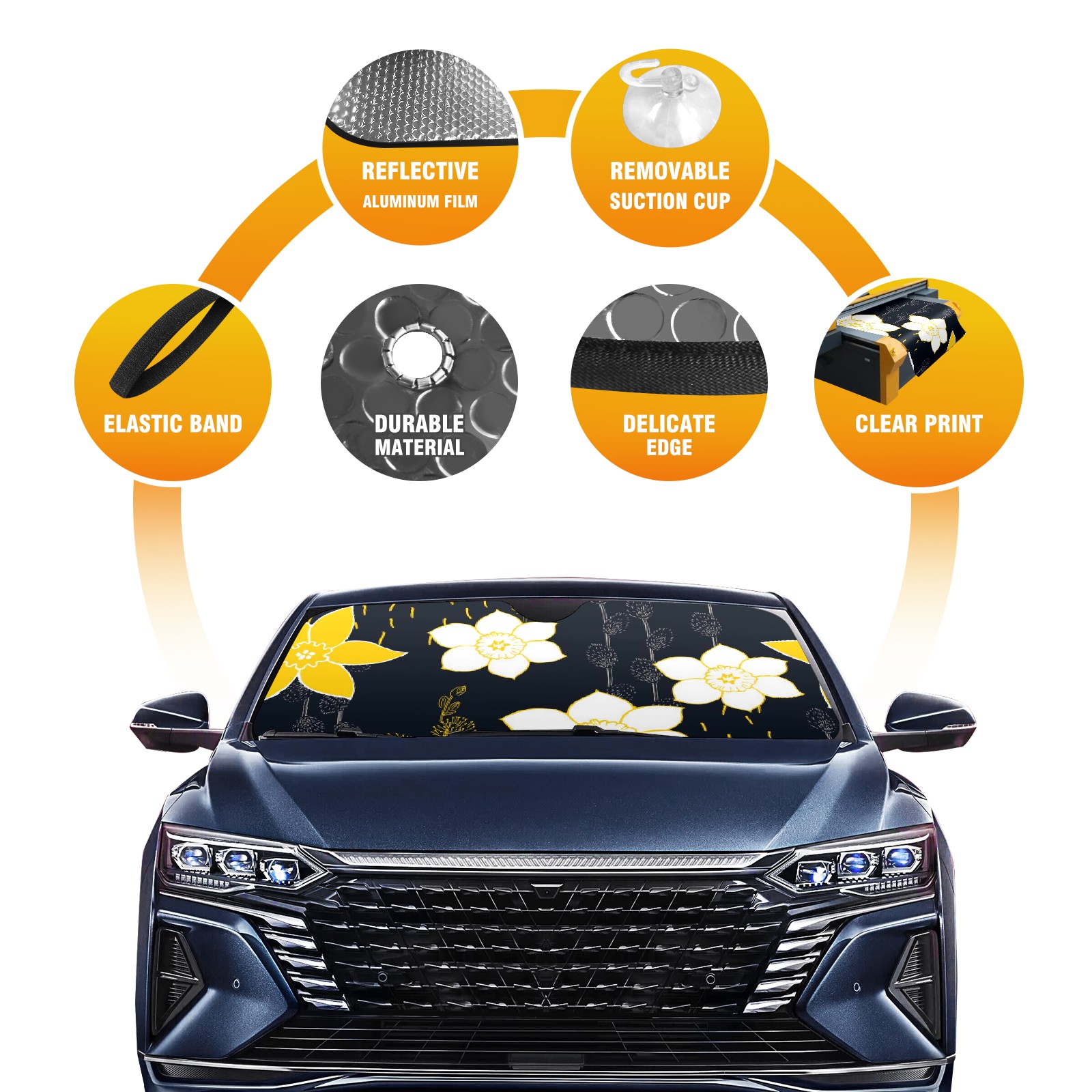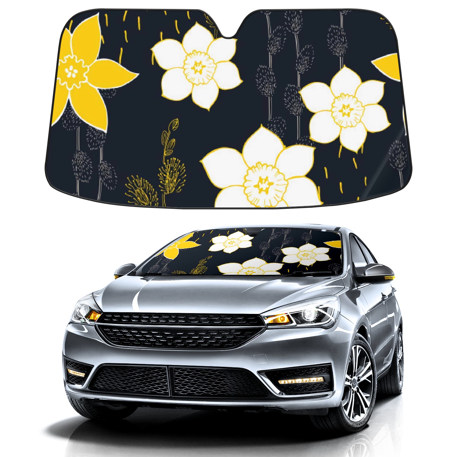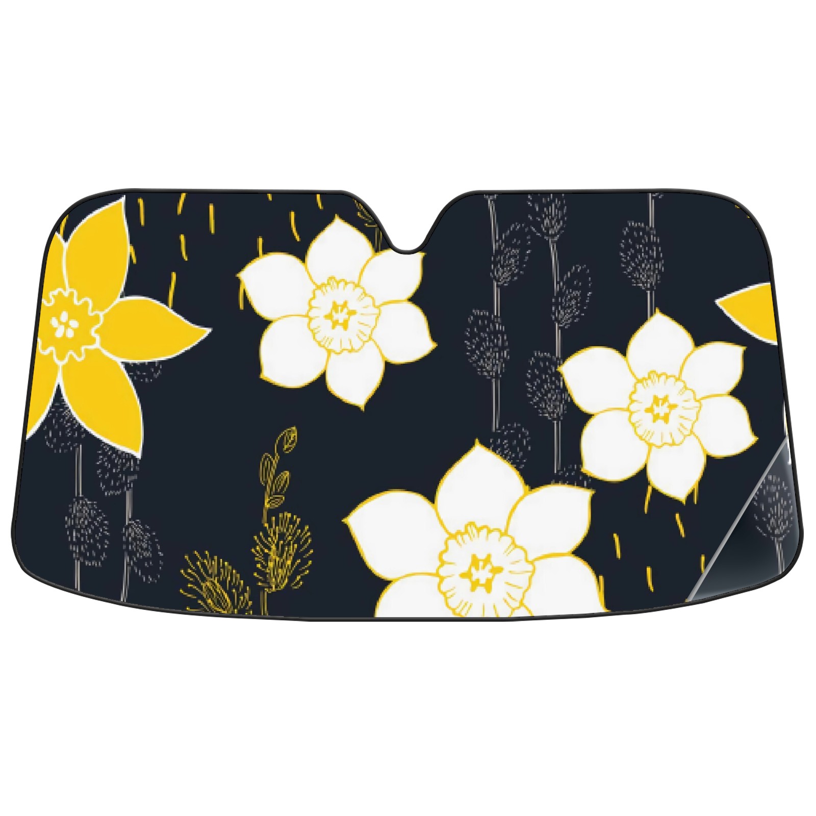 Car Windshield Sun Shade For Front Window Black With Yellow White Petals Foldable Vehicle Windshield Car Sun Visor Covers Automotive Window Protector Car Camping Privacy Sun Blocker