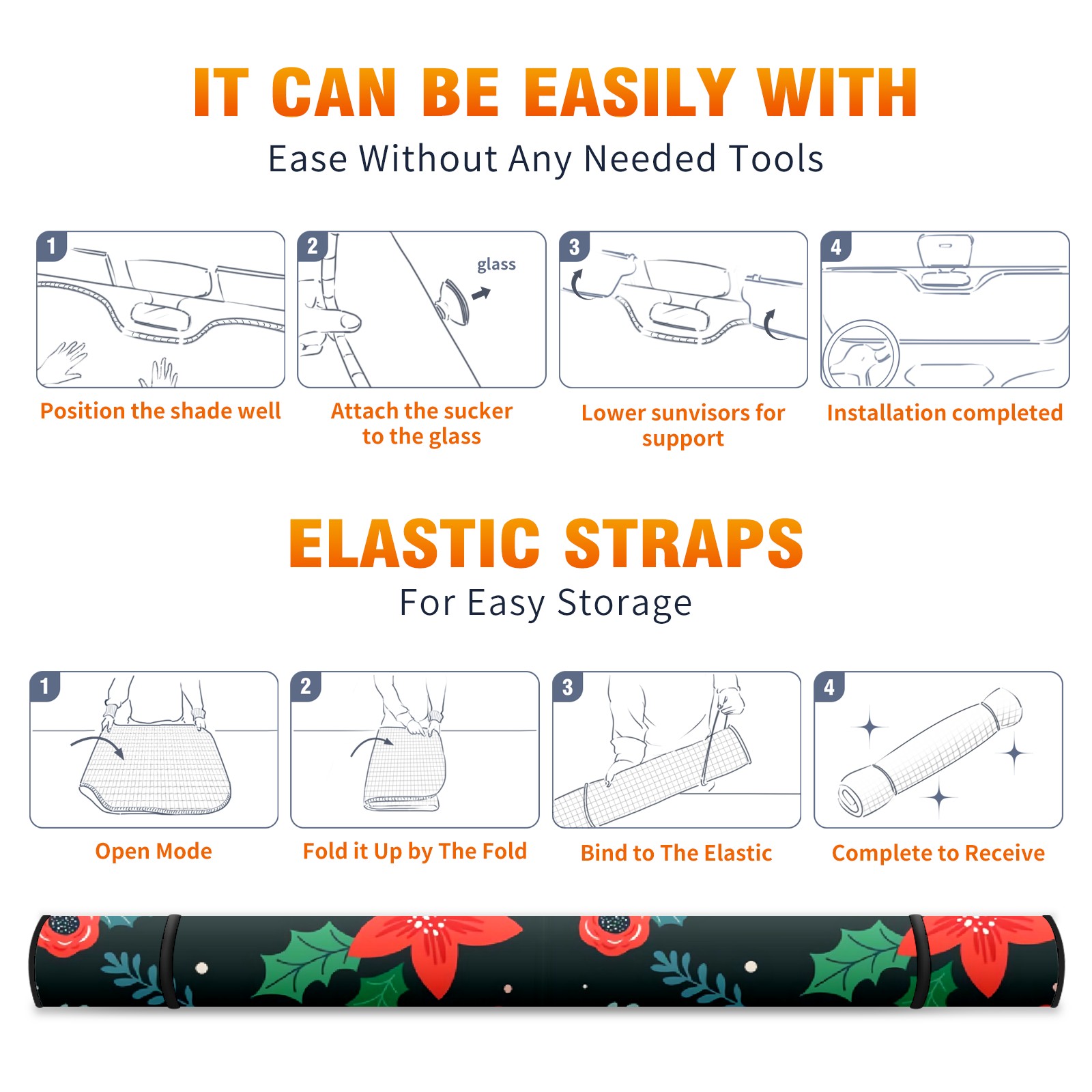 • Diameter /Size 63"L x 33.5"W Made from excellent materials which makes it sturdy and protects the car from the sun. Easy to use and pack. Makes the interior of the car cooler.You can easily stash the sunshade in the storage bag or store long term.It open and closes easy. Also the leather storage bag is durable and easy to put the umbrella back into.This windshield sunshade provides complete coverage and keeps your car interior cool under direct sun. It is easy to open and position under the windshield and around the rear-view mirror. Makes Your Car Easy To Identify, Perfect For Finding Your Car In Crowded Parking Lots And Garages.Great Choice: It Is A Great Gift For Dad, Boyfriend, Brother, Brother And Uncle, Friends, Classmates, Family And So On. Notice: Due To Difference Computer Monitors, The Color Maybe Slightly Different From Picture. As Different Measurement Methods, Measurement Data Will Float Within 2%.I Hope You Understand. If You Have Any Question About The Item Please Do Not Hesitate To Contact Us Immediately And We Will Give You A Satisfactory Reply Within 24 Hours.