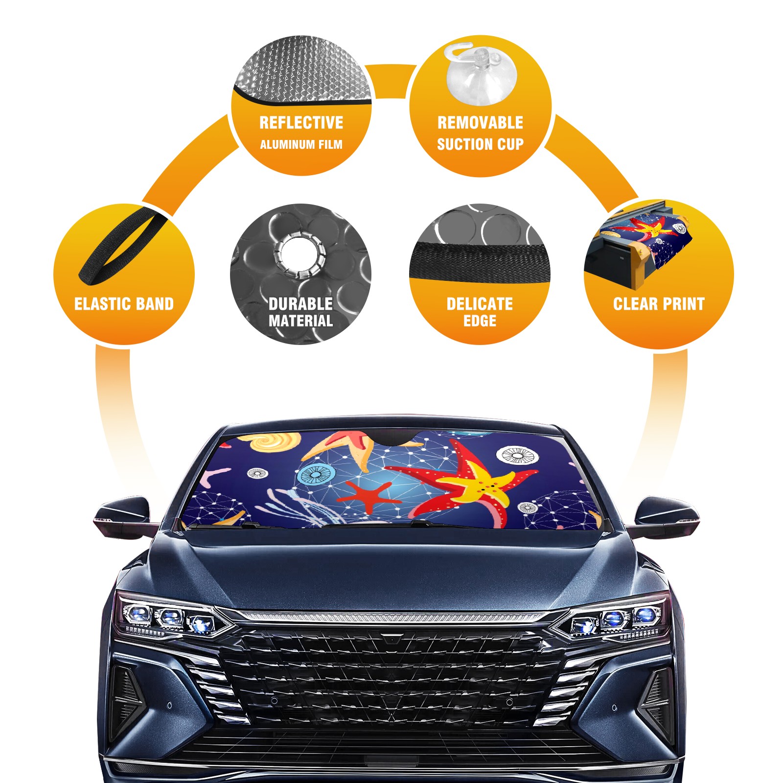 Car Windshield Sun Shade For Front Window Blue Marine Animals Foldable Vehicle Windshield Car Sun Visor Covers Automotive Window Protector Car Camping Privacy Sun Blocker
