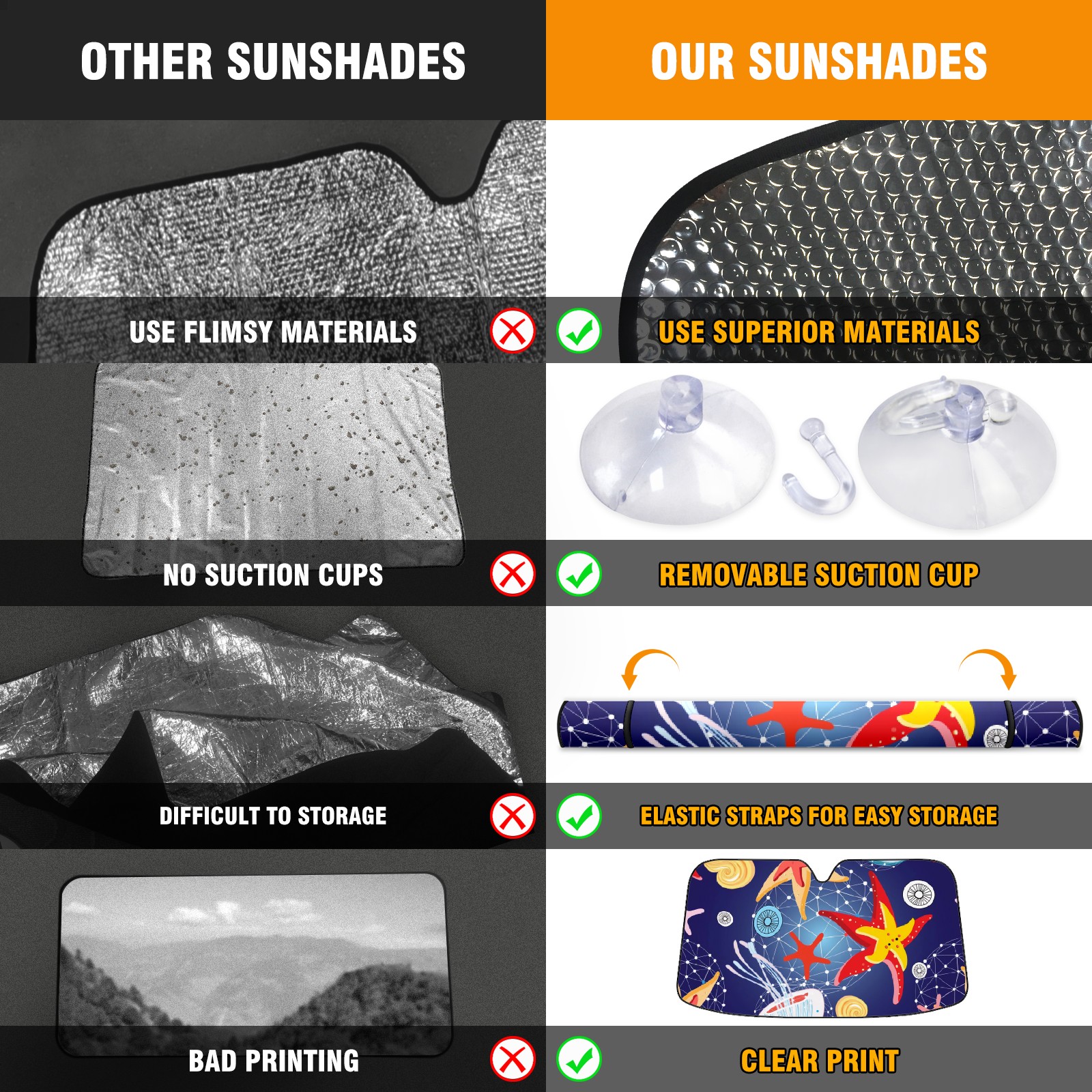 • Diameter /Size 63"L x 33.5"W Made from excellent materials which makes it sturdy and protects the car from the sun. Easy to use and pack. Makes the interior of the car cooler.You can easily stash the sunshade in the storage bag or store long term.It open and closes easy. Also the leather storage bag is durable and easy to put the umbrella back into.This windshield sunshade provides complete coverage and keeps your car interior cool under direct sun. It is easy to open and position under the windshield and around the rear-view mirror. Makes Your Car Easy To Identify, Perfect For Finding Your Car In Crowded Parking Lots And Garages.Great Choice: It Is A Great Gift For Dad, Boyfriend, Brother, Brother And Uncle, Friends, Classmates, Family And So On. Notice: Due To Difference Computer Monitors, The Color Maybe Slightly Different From Picture. As Different Measurement Methods, Measurement Data Will Float Within 2%.I Hope You Understand. If You Have Any Question About The Item Please Do Not Hesitate To Contact Us Immediately And We Will Give You A Satisfactory Reply Within 24 Hours.