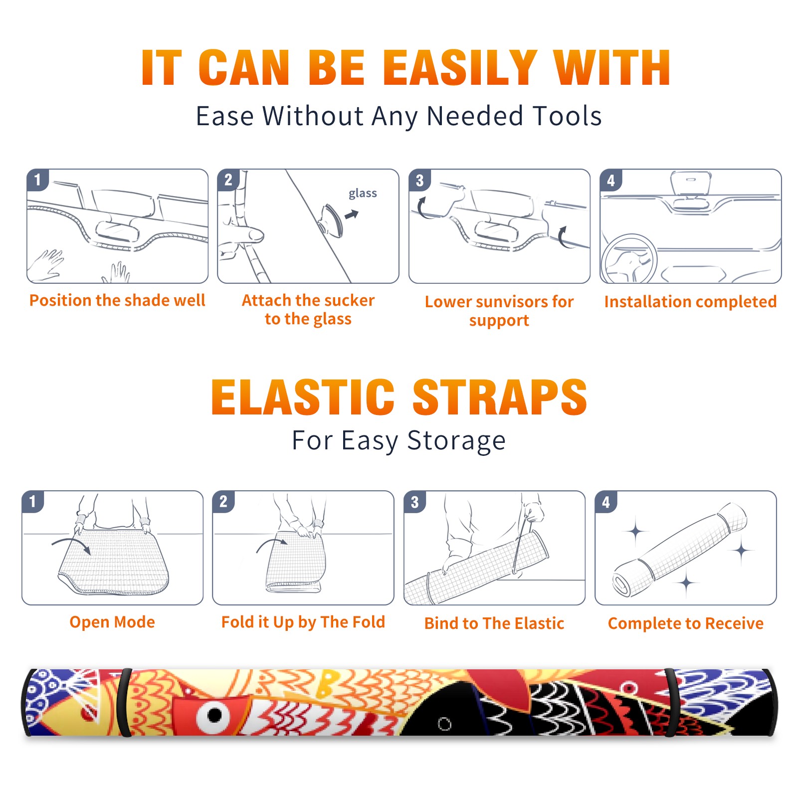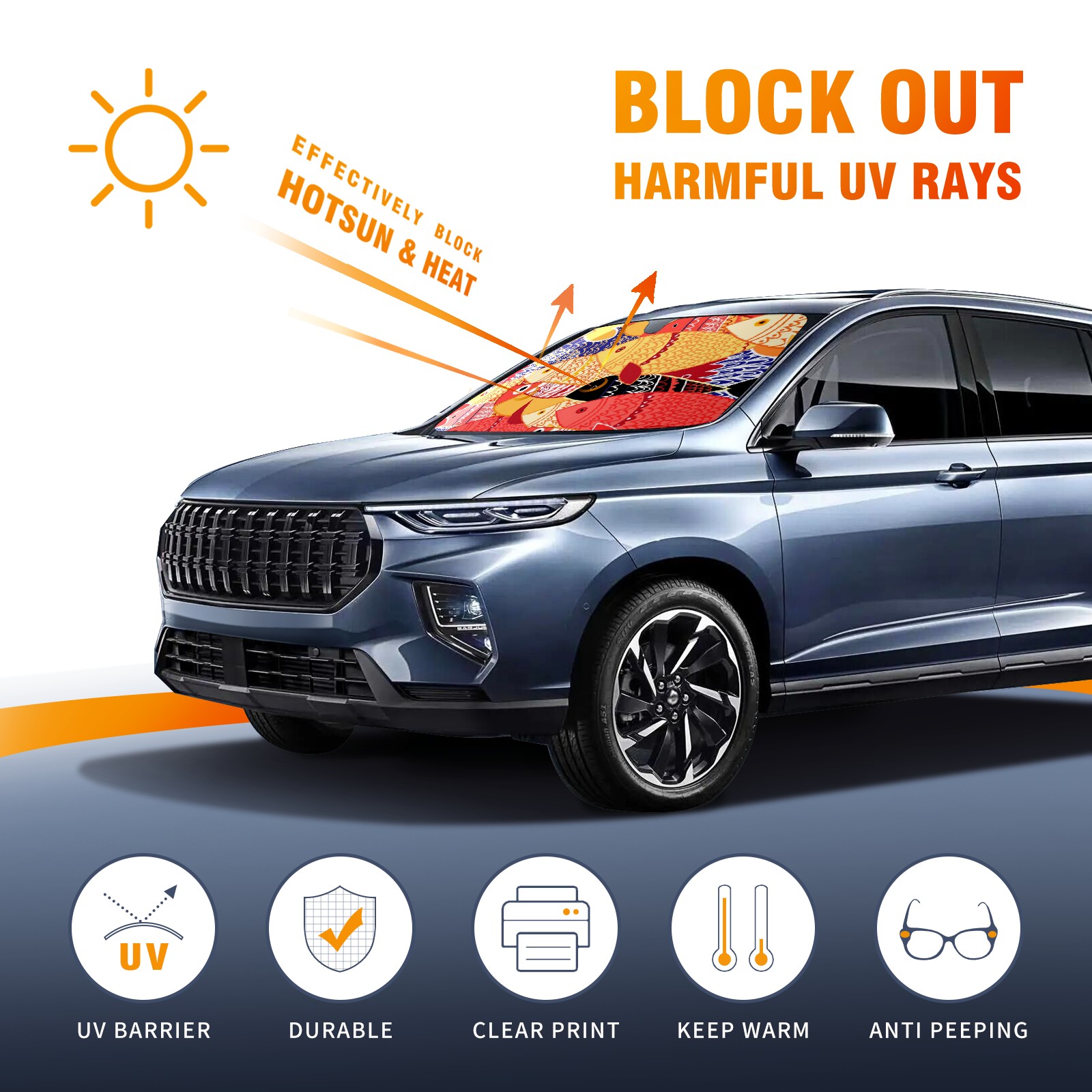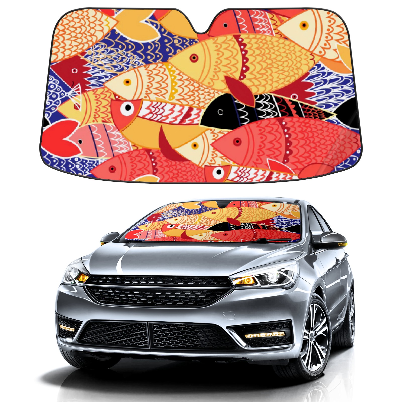 Car Windshield Sun Shade For Front Window Cartoon Colored Fish Foldable Vehicle Windshield Car Sun Visor Covers Automotive Window Protector Car Camping Privacy Sun Blocker