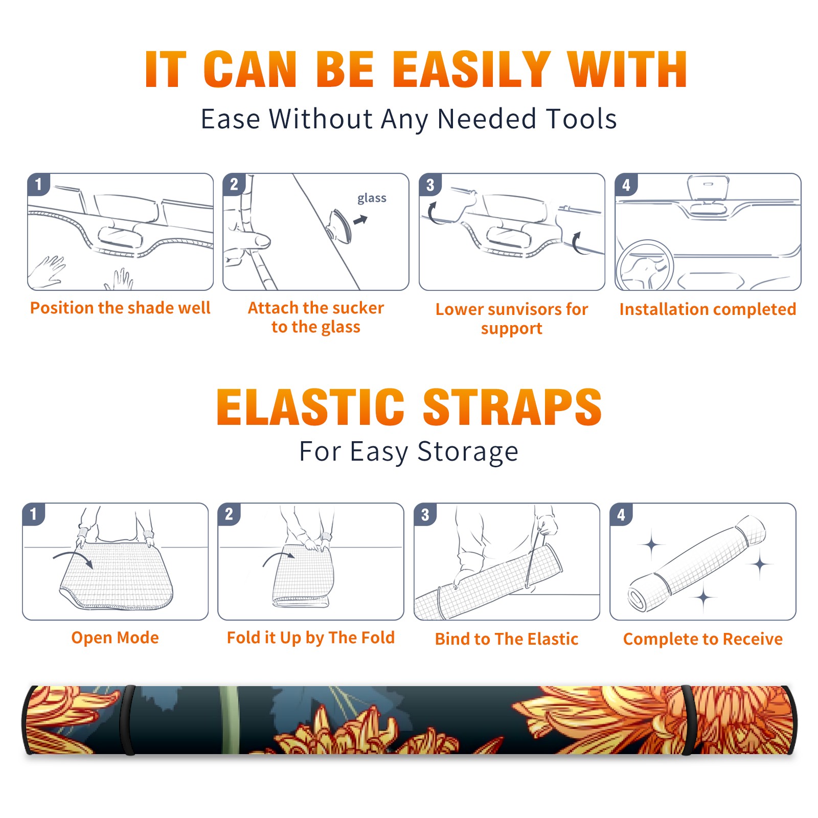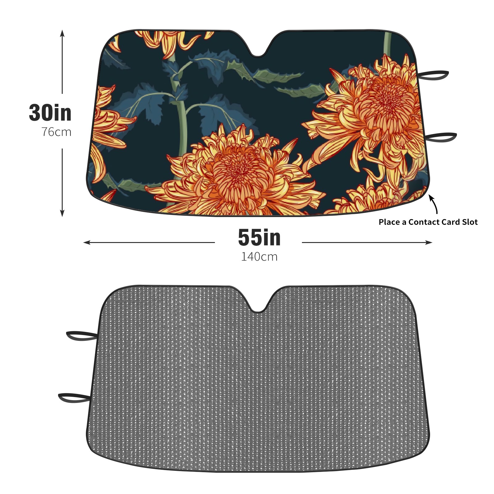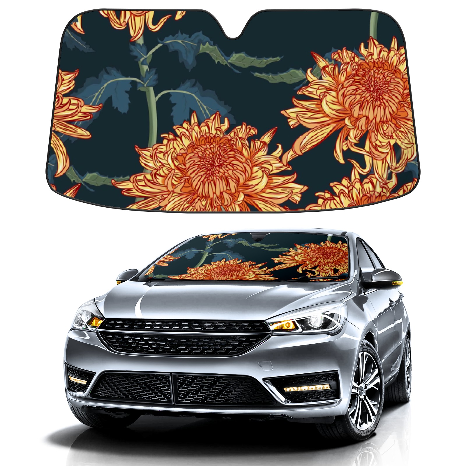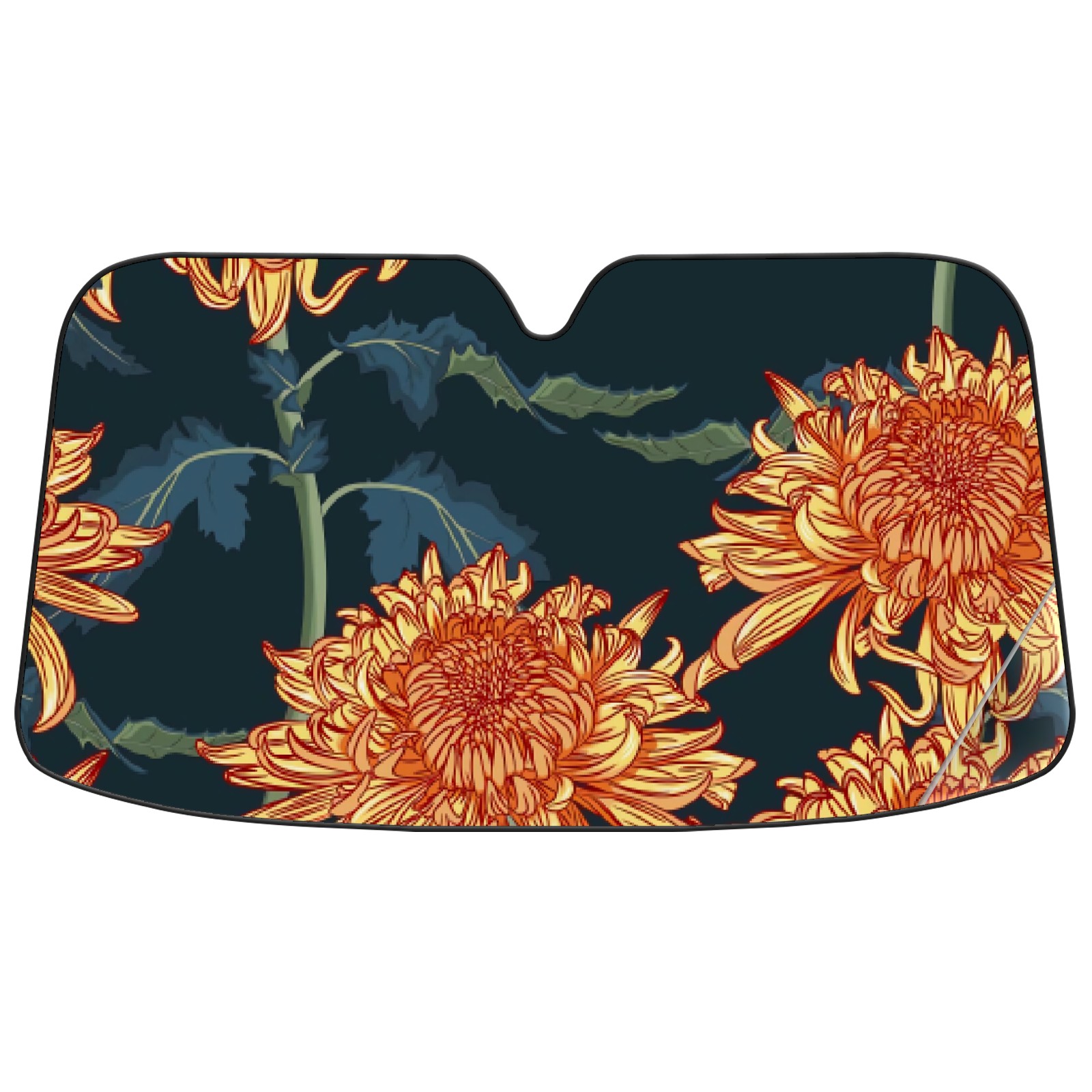 Car Windshield Sun Shade For Front Window Orange Chrysanthemums Black Foldable Vehicle Windshield Car Sun Visor Covers Automotive Window Protector Car Camping Privacy Sun Blocker