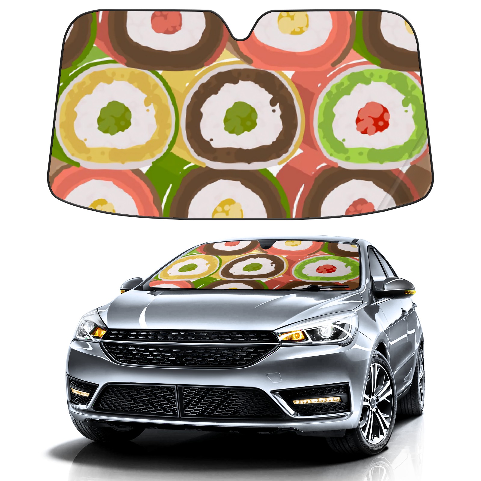 Car Windshield Sun Shade For Front Window Delicious Colorful Desserts Foldable Vehicle Windshield Car Sun Visor Covers Automotive Window Protector Car Camping Privacy Sun Blocker