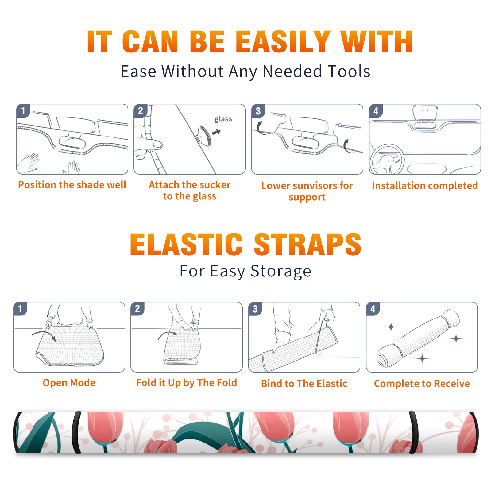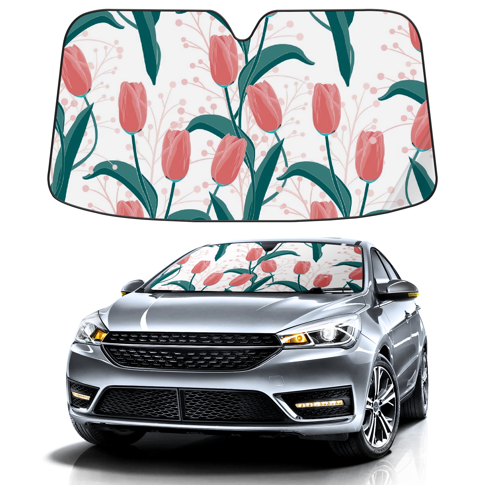 Car Windshield Sun Shade For Front Window White Background Pink Tulip Foldable Vehicle Windshield Car Sun Visor Covers Automotive Window Protector Car Camping Privacy Sun Blocker