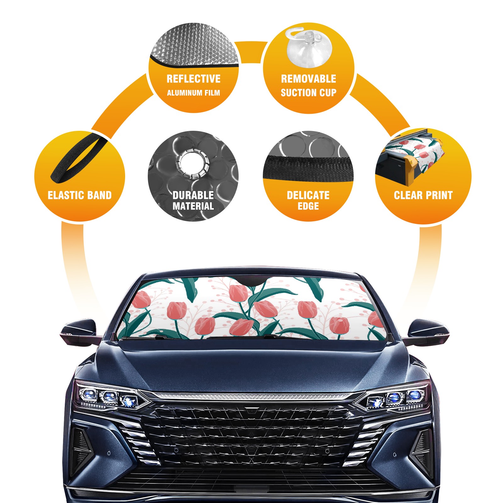 • Diameter /Size 63"L x 33.5"W Made from excellent materials which makes it sturdy and protects the car from the sun. Easy to use and pack. Makes the interior of the car cooler.You can easily stash the sunshade in the storage bag or store long term.It open and closes easy. Also the leather storage bag is durable and easy to put the umbrella back into.This windshield sunshade provides complete coverage and keeps your car interior cool under direct sun. It is easy to open and position under the windshield and around the rear-view mirror. Makes Your Car Easy To Identify, Perfect For Finding Your Car In Crowded Parking Lots And Garages.Great Choice: It Is A Great Gift For Dad, Boyfriend, Brother, Brother And Uncle, Friends, Classmates, Family And So On. Notice: Due To Difference Computer Monitors, The Color Maybe Slightly Different From Picture. As Different Measurement Methods, Measurement Data Will Float Within 2%.I Hope You Understand. If You Have Any Question About The Item Please Do Not Hesitate To Contact Us Immediately And We Will Give You A Satisfactory Reply Within 24 Hours.