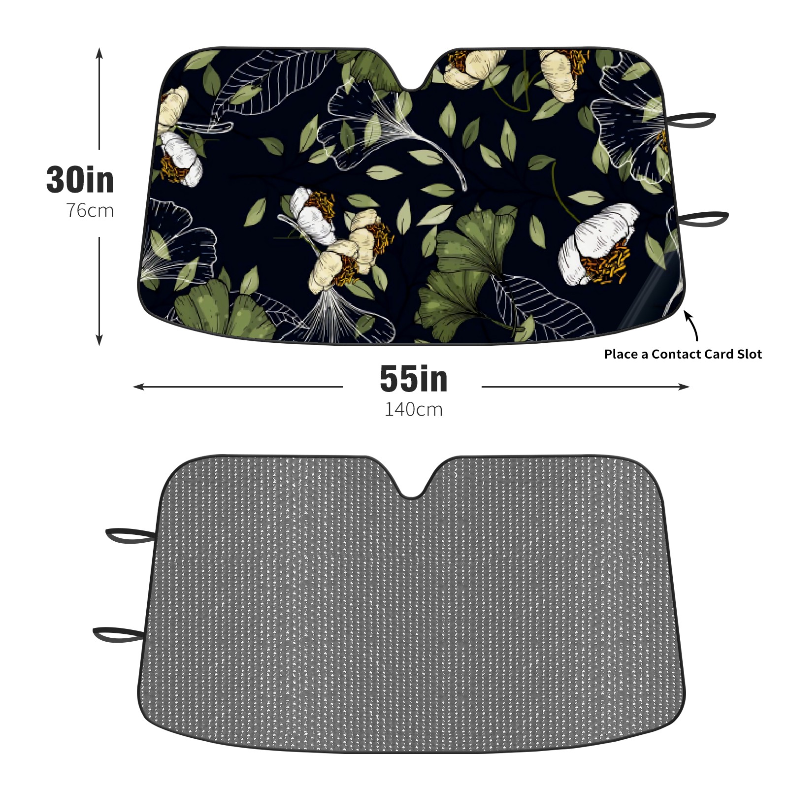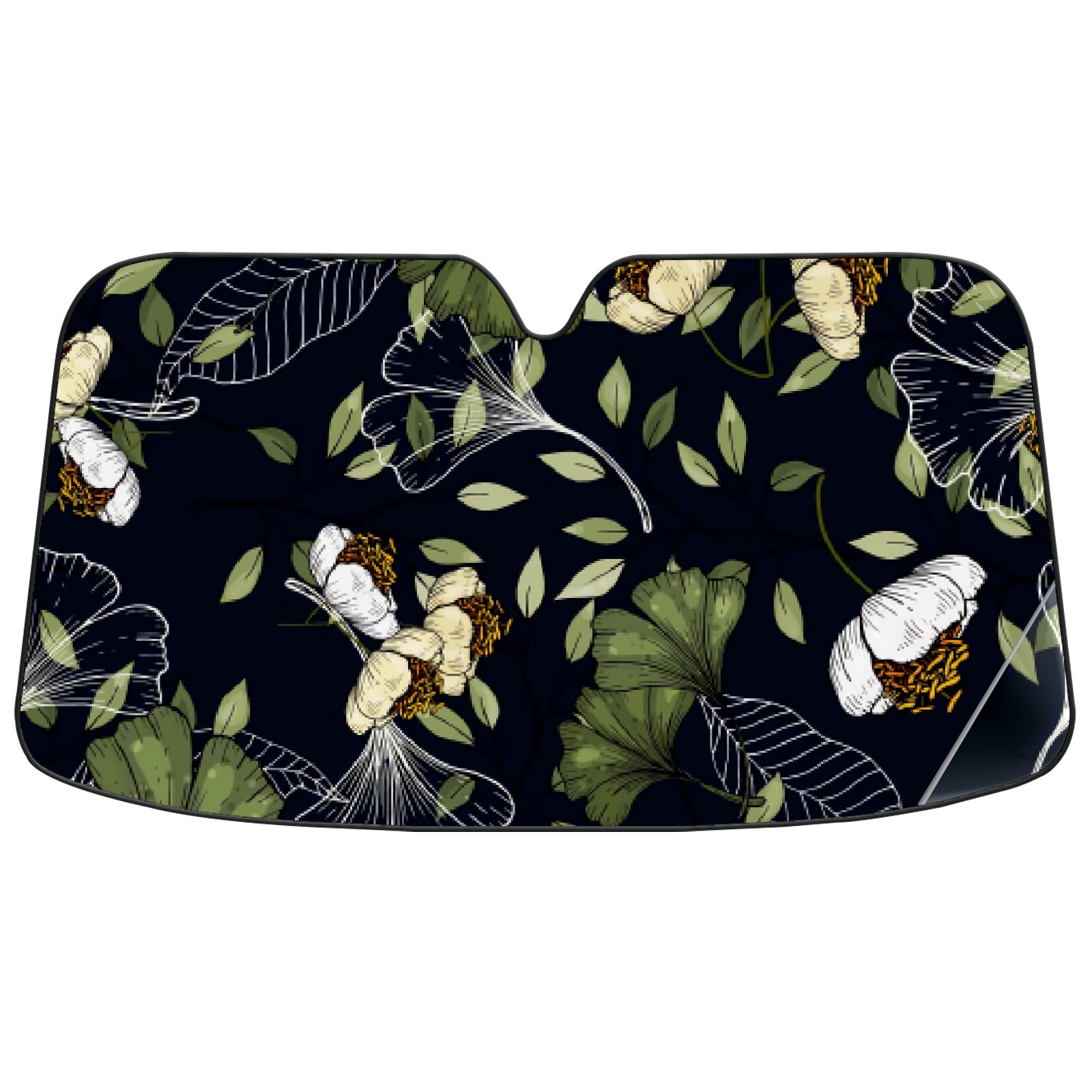 Car Windshield Sun Shade For Front Window Black Ginkgo Biloba Leaves Foldable Vehicle Windshield Car Sun Visor Covers Automotive Window Protector Car Camping Privacy Sun Blocker