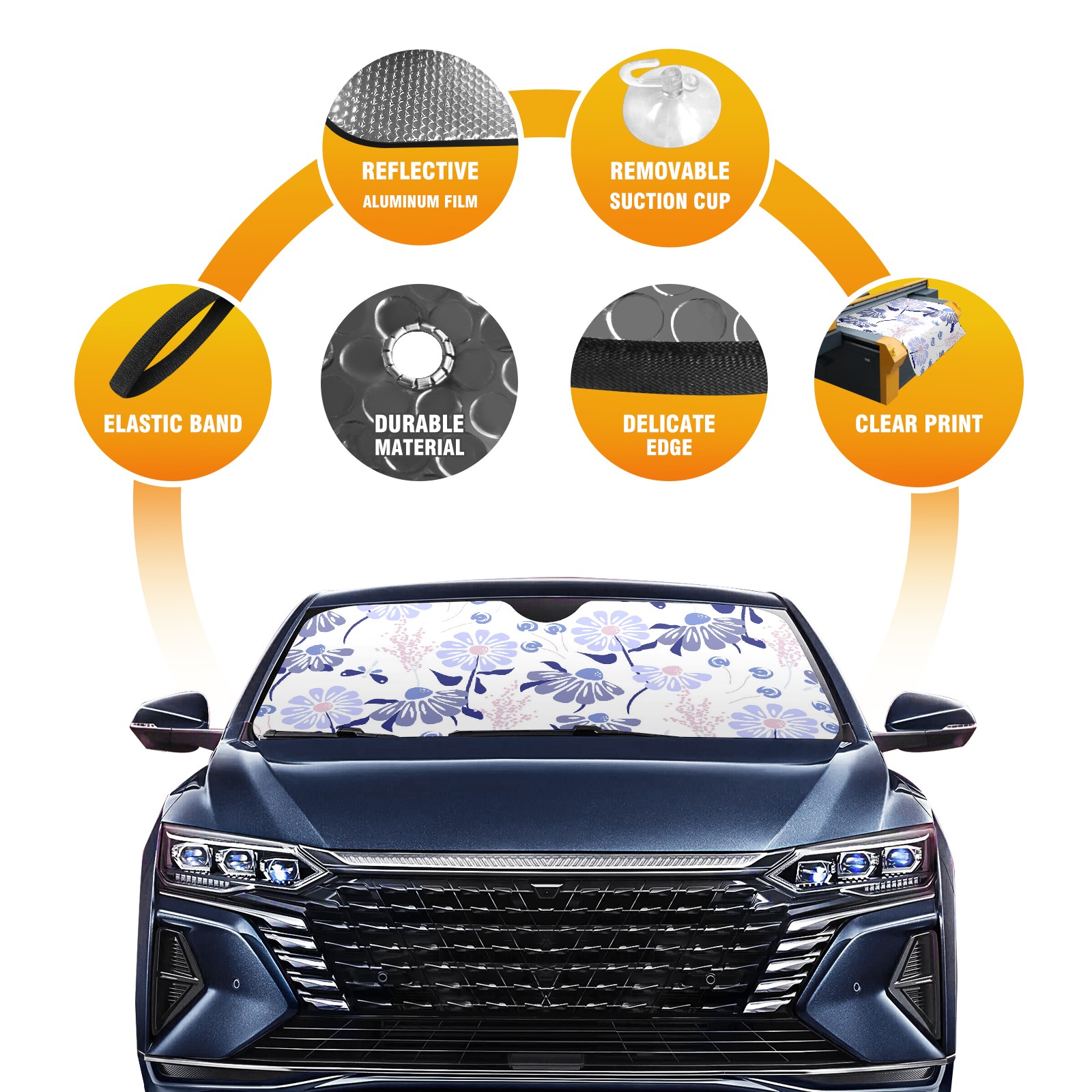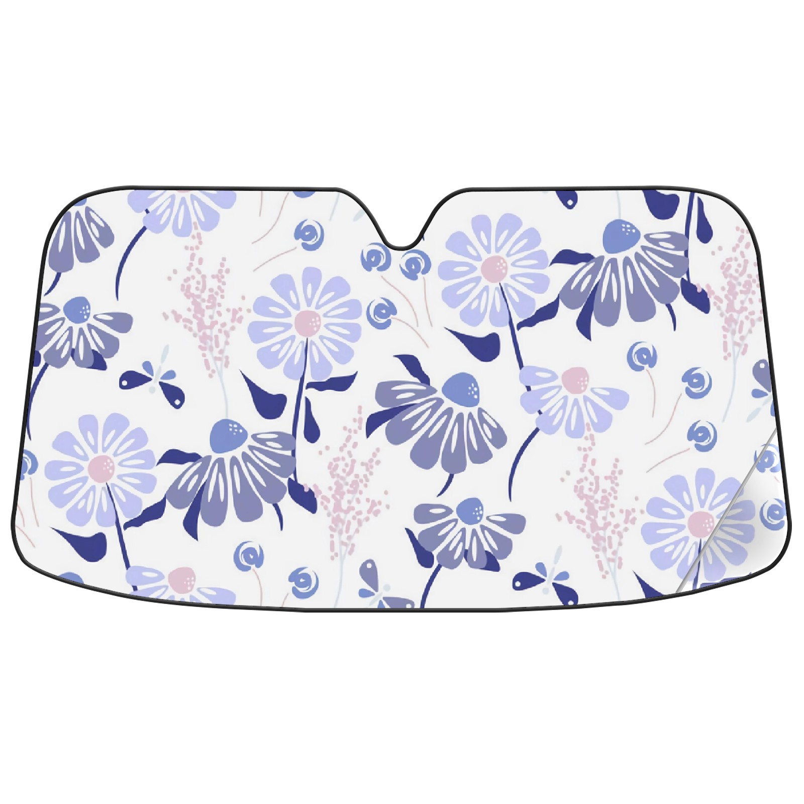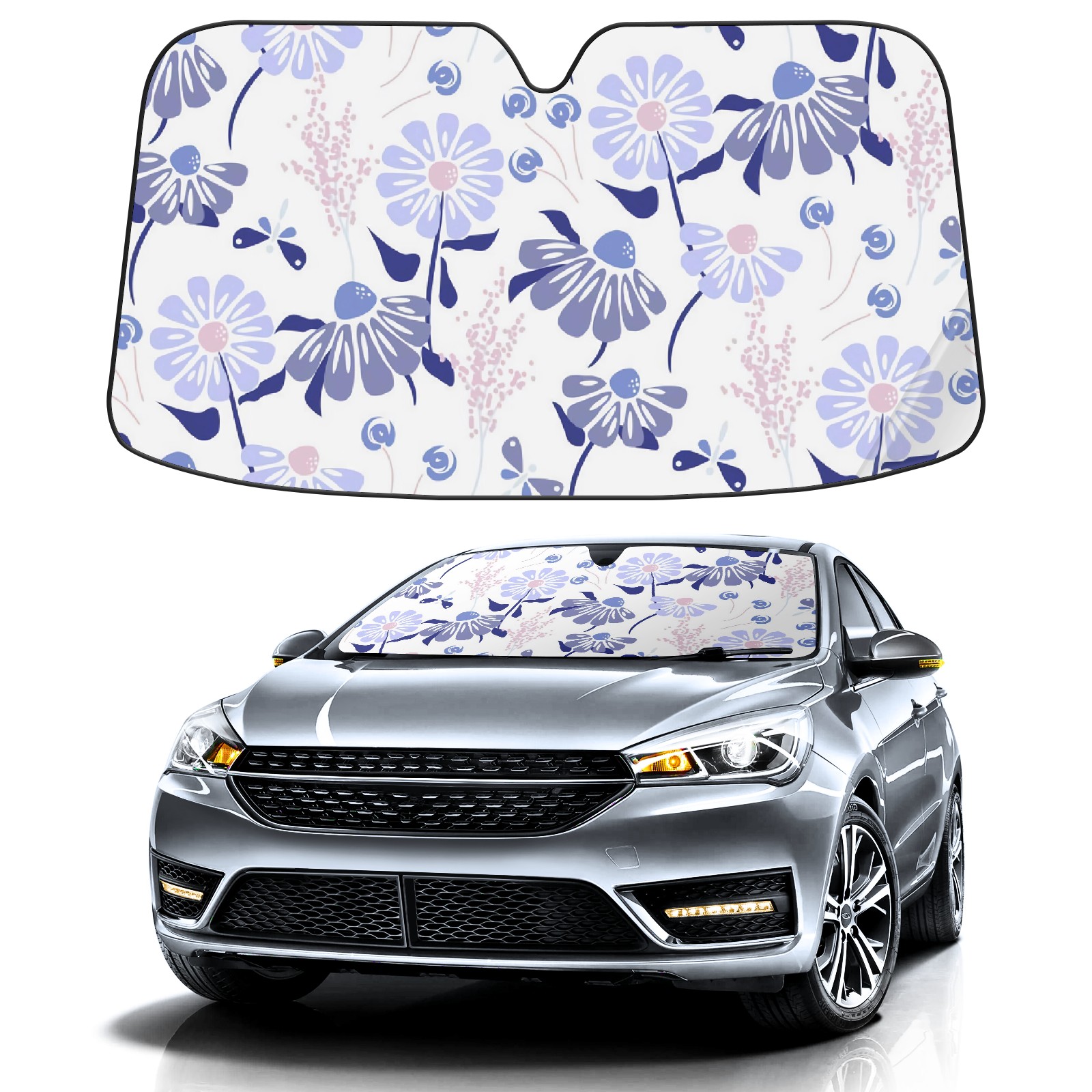 Car Windshield Sun Shade For Front Window White Purple Elemental Plants Foldable Vehicle Windshield Car Sun Visor Covers Automotive Window Protector Car Camping Privacy Sun Blocker