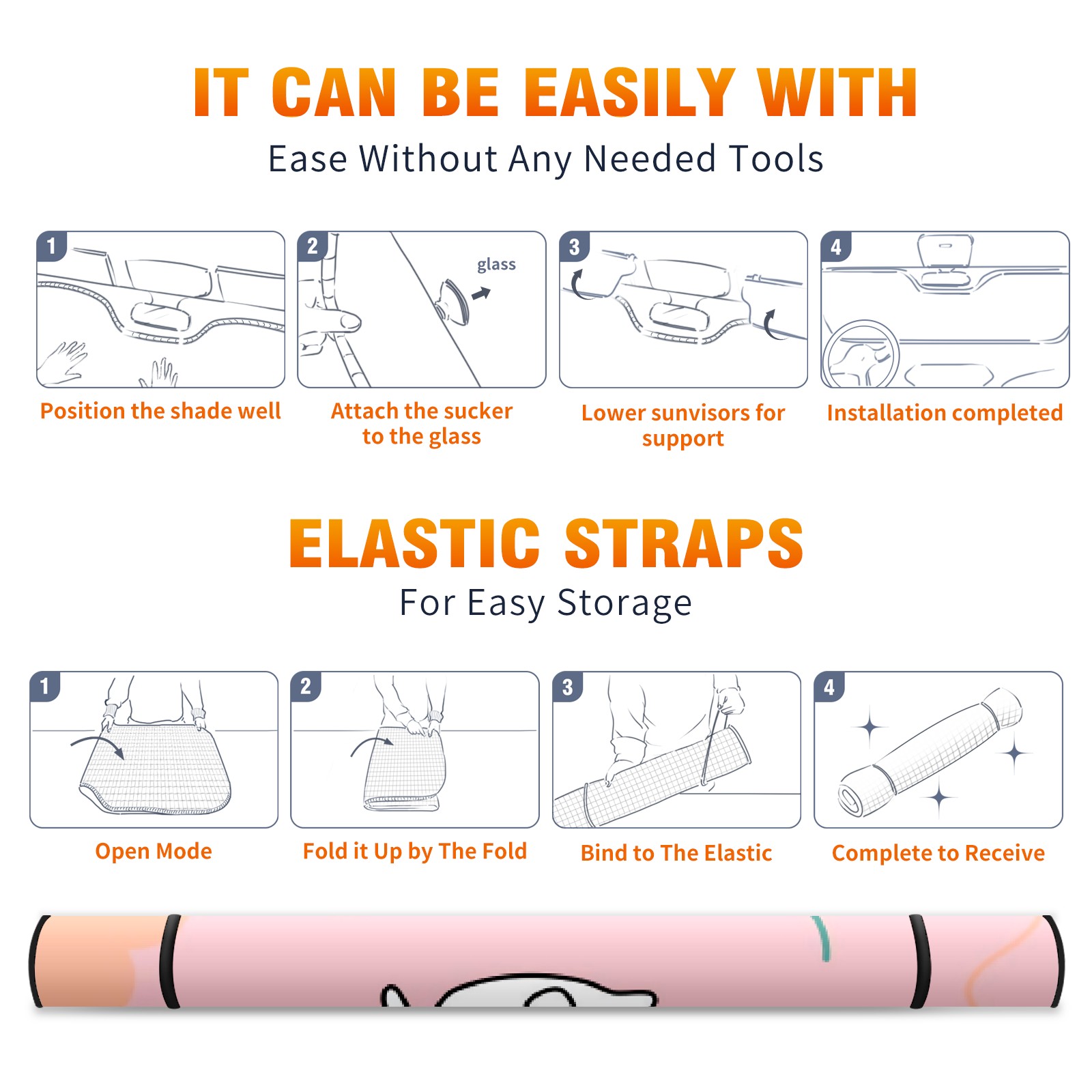 Car Windshield Sun Shade For Front Window Cartoon Foundation Animal Foldable Vehicle Windshield Car Sun Visor Covers Automotive Window Protector Car Camping Privacy Sun Blocker