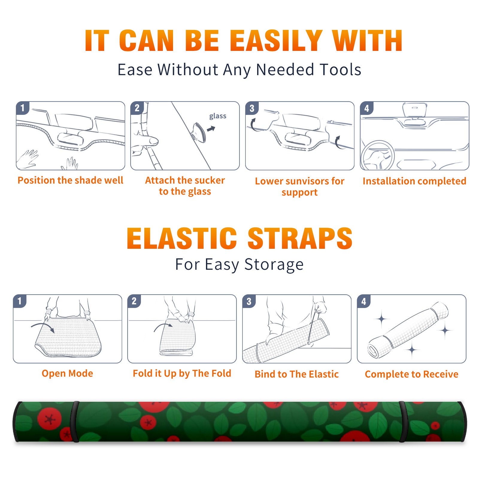 Car Windshield Sun Shade For Front Window Green And Red Fruit Foldable Vehicle Windshield Car Sun Visor Covers Automotive Window Protector Car Camping Privacy Sun Blocker