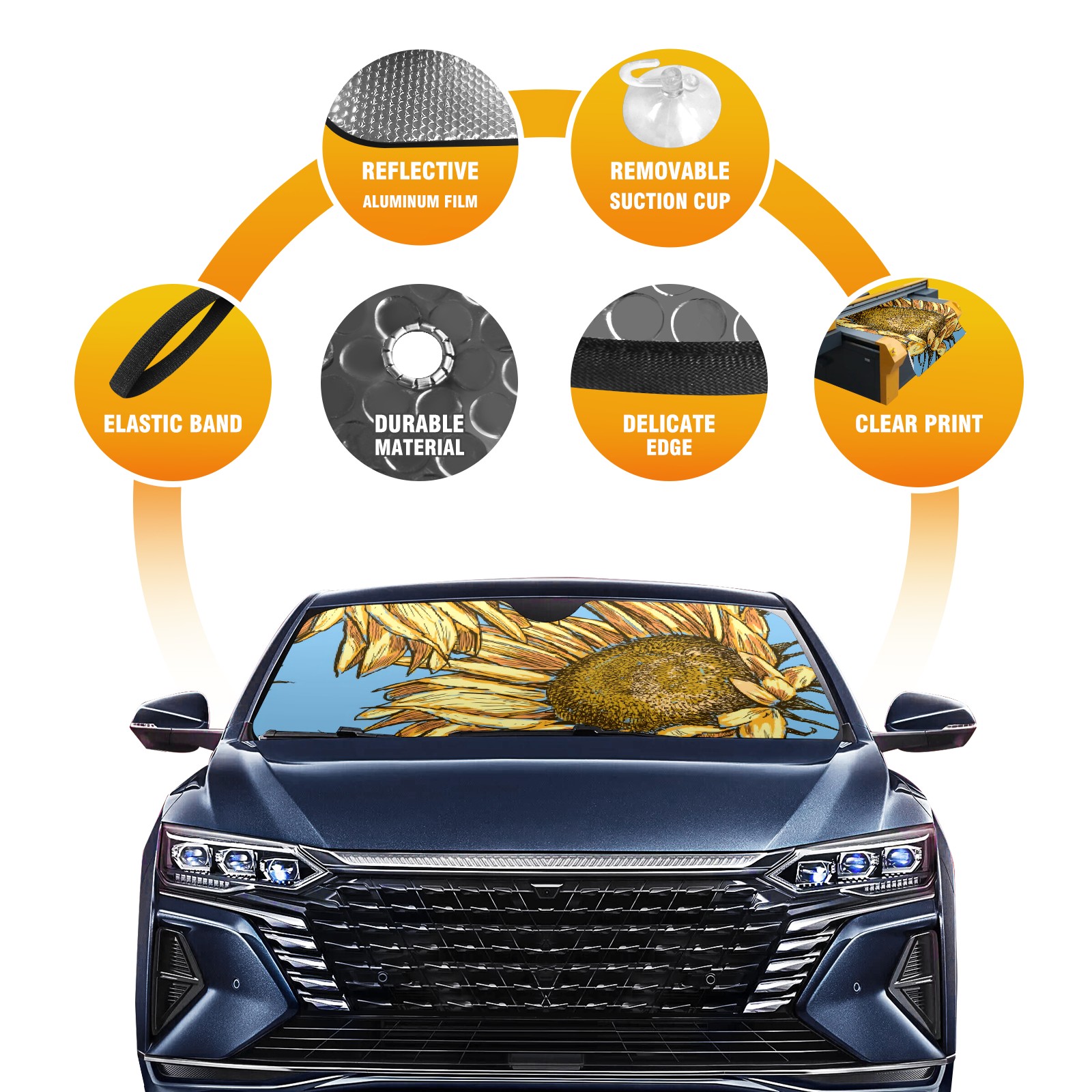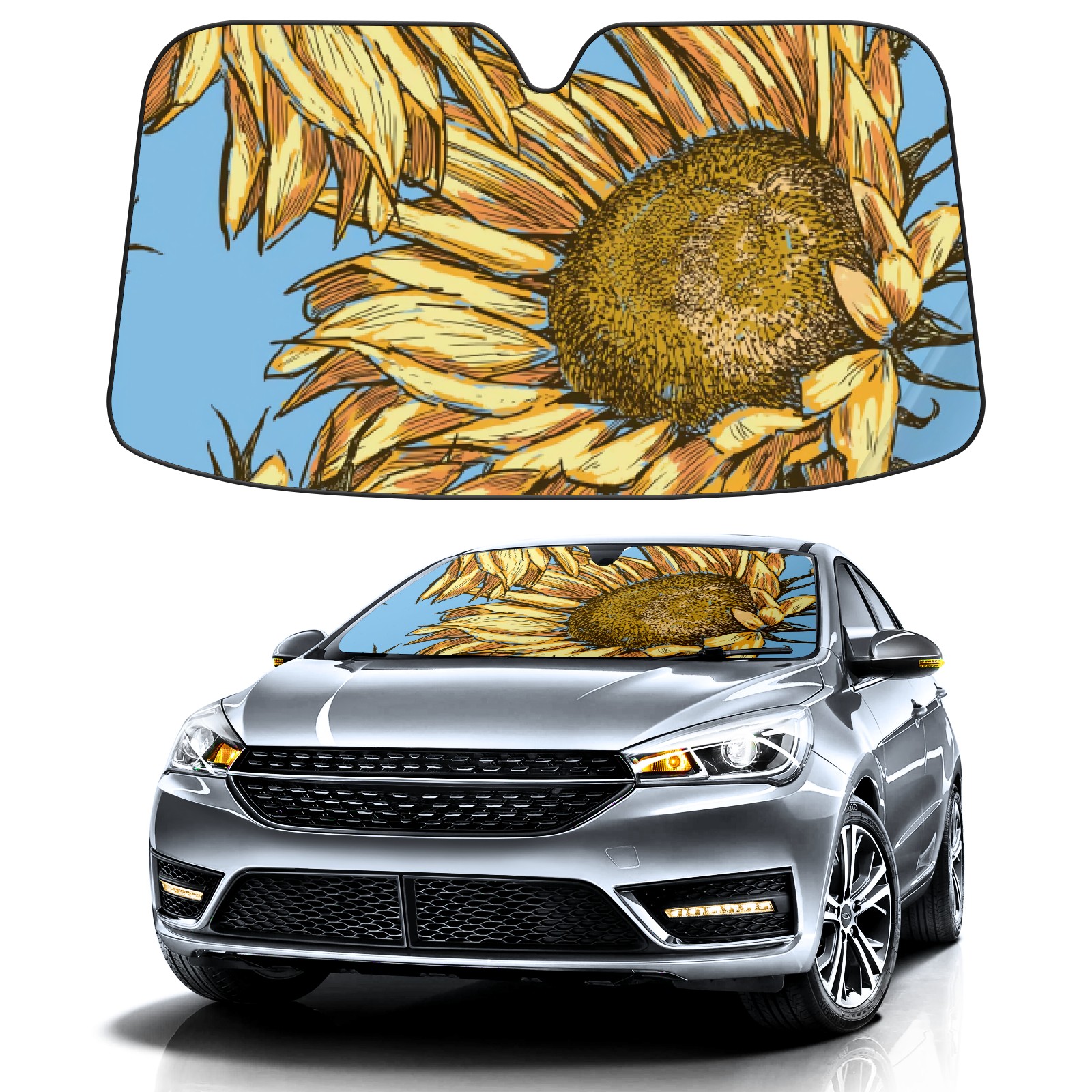 Car Windshield Sun Shade For Front Window Blue Sunflower Foldable Vehicle Windshield Car Sun Visor Covers Automotive Window Protector Car Camping Privacy Sun Blocker