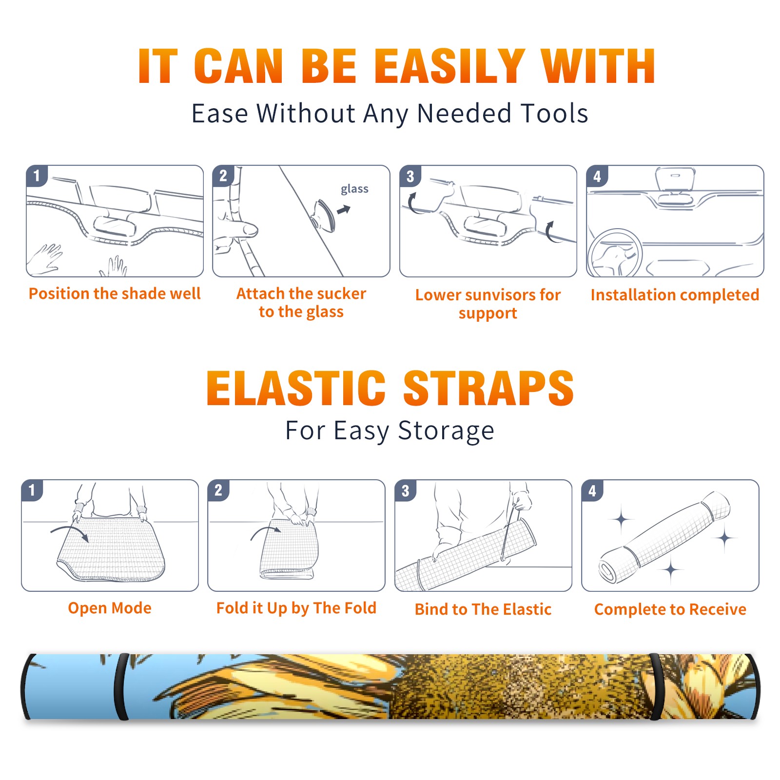 • Diameter /Size 63"L x 33.5"W Made from excellent materials which makes it sturdy and protects the car from the sun. Easy to use and pack. Makes the interior of the car cooler.You can easily stash the sunshade in the storage bag or store long term.It open and closes easy. Also the leather storage bag is durable and easy to put the umbrella back into.This windshield sunshade provides complete coverage and keeps your car interior cool under direct sun. It is easy to open and position under the windshield and around the rear-view mirror. Makes Your Car Easy To Identify, Perfect For Finding Your Car In Crowded Parking Lots And Garages.Great Choice: It Is A Great Gift For Dad, Boyfriend, Brother, Brother And Uncle, Friends, Classmates, Family And So On. Notice: Due To Difference Computer Monitors, The Color Maybe Slightly Different From Picture. As Different Measurement Methods, Measurement Data Will Float Within 2%.I Hope You Understand. If You Have Any Question About The Item Please Do Not Hesitate To Contact Us Immediately And We Will Give You A Satisfactory Reply Within 24 Hours.