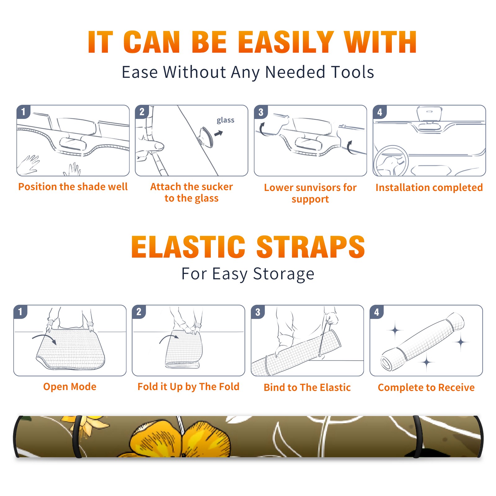 Car Windshield Sun Shade For Front Window Turmeric Based Flowers Foldable Vehicle Windshield Car Sun Visor Covers Automotive Window Protector Car Camping Privacy Sun Blocker