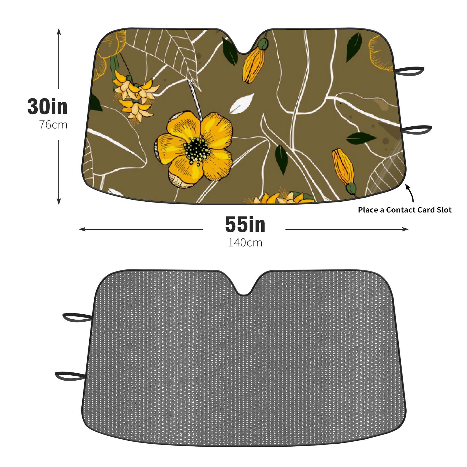 Diameter /Size 63"L x 33.5"W Made from excellent materials which makes it sturdy and protects the car from the sun. Easy to use and pack. Makes the interior of the car cooler.You can easily stash the sunshade in the storage bag or store long term.It open and closes easy. Also the leather storage bag is durable and easy to put the umbrella back into.This windshield sunshade provides complete coverage and keeps your car interior cool under direct sun. It is easy to open and position under the windshield and around the rear-view mirror. Makes Your Car Easy To Identify, Perfect For Finding Your Car In Crowded Parking Lots And Garages.Great Choice: It Is A Great Gift For Dad, Boyfriend, Brother, Brother And Uncle, Friends, Classmates, Family And So On. Notice: Due To Difference Computer Monitors, The Color Maybe Slightly Different From Picture. As Different Measurement Methods, Measurement Data Will Float Within 2%.I Hope You Understand. If You Have Any Question About The Item Please Do Not Hesitate To Contact Us Immediately And We Will Give You A Satisfactory Reply Within 24 Hours.