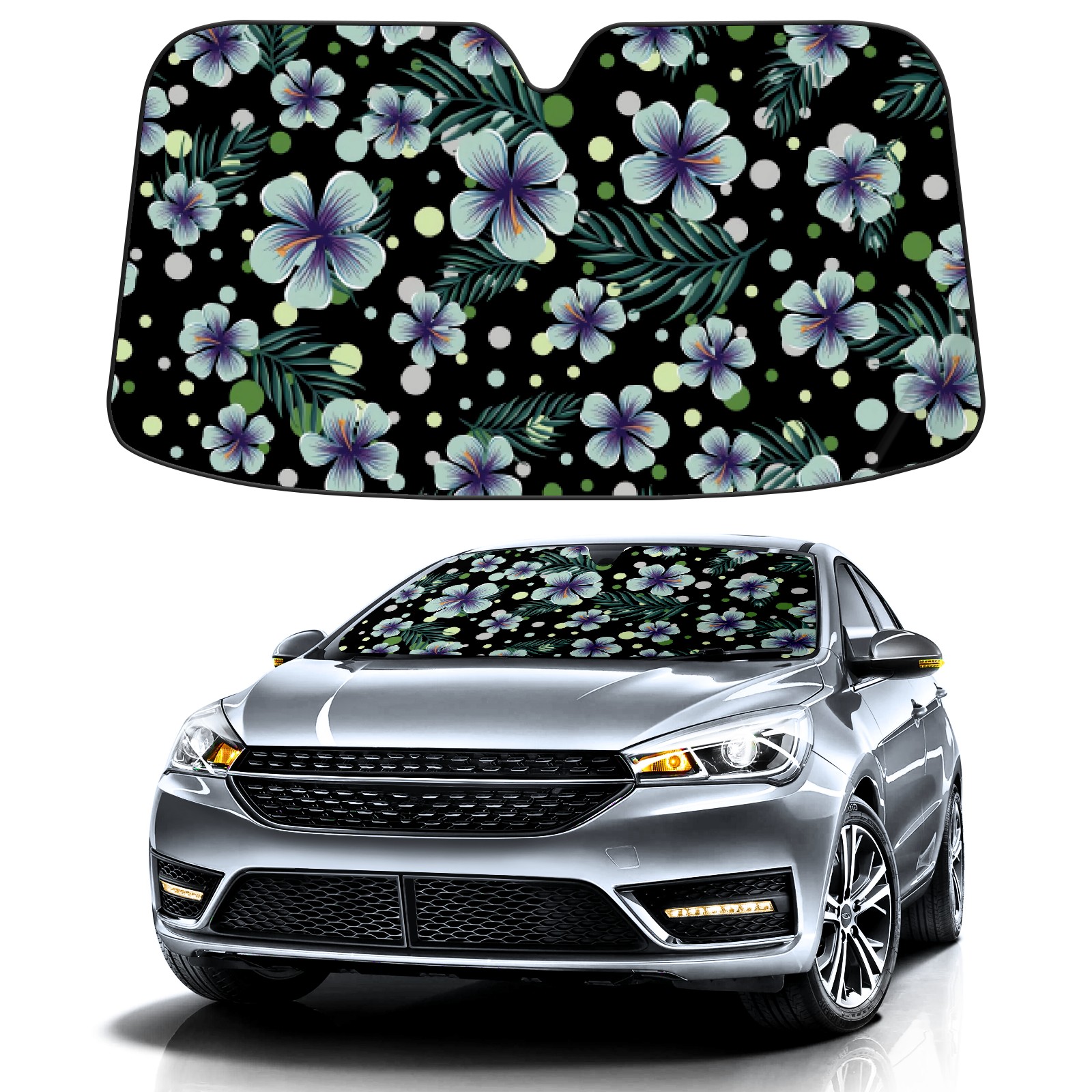 Car Windshield Sun Shade For Front Window Black Purple Small Flowers Foldable Vehicle Windshield Car Sun Visor Covers Automotive Window Protector Car Camping Privacy Sun Blocker