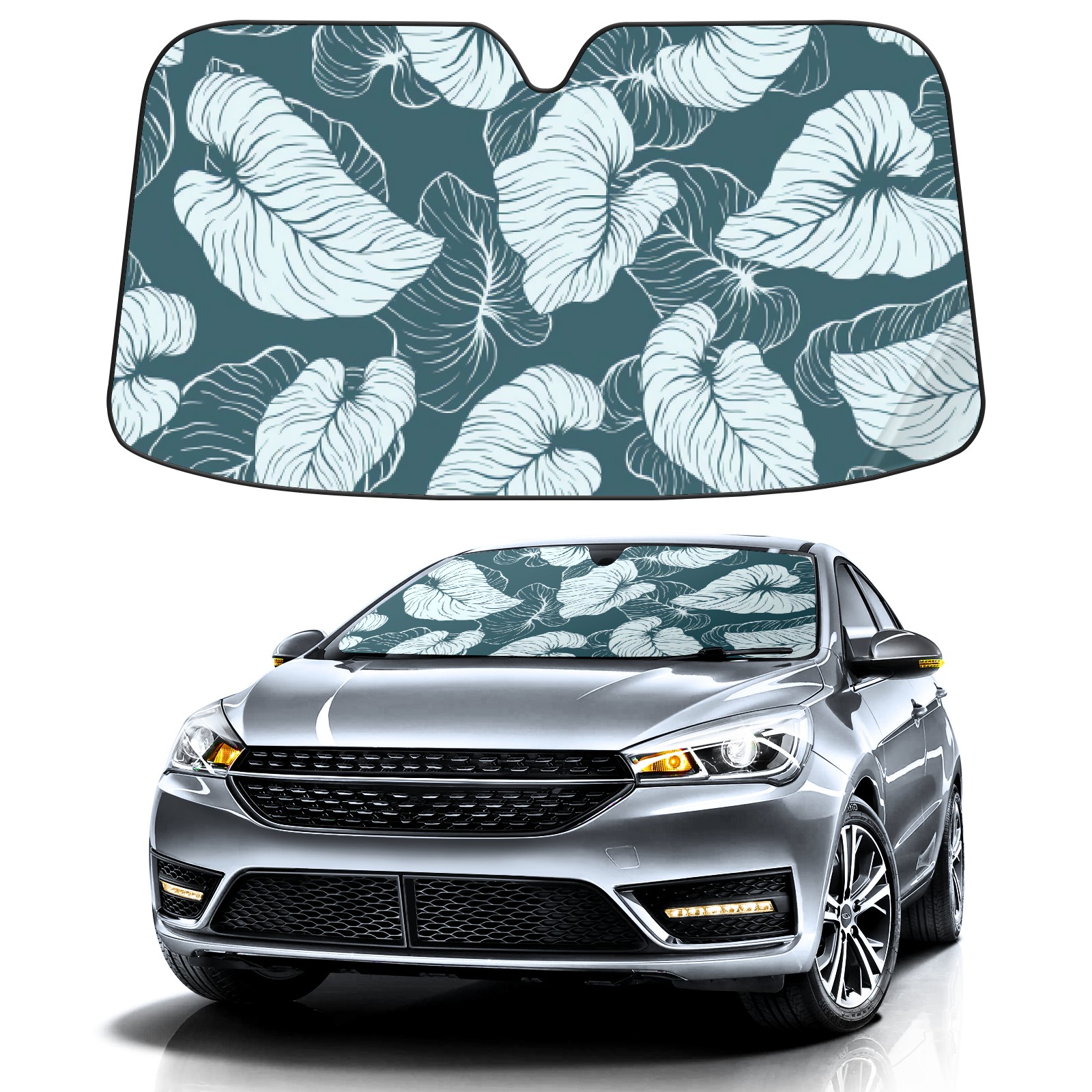 Car Windshield Sun Shade For Front Window Blue White Tropical Leaves Foldable Vehicle Windshield Car Sun Visor Covers Automotive Window Protector Car Camping Privacy Sun Blocker