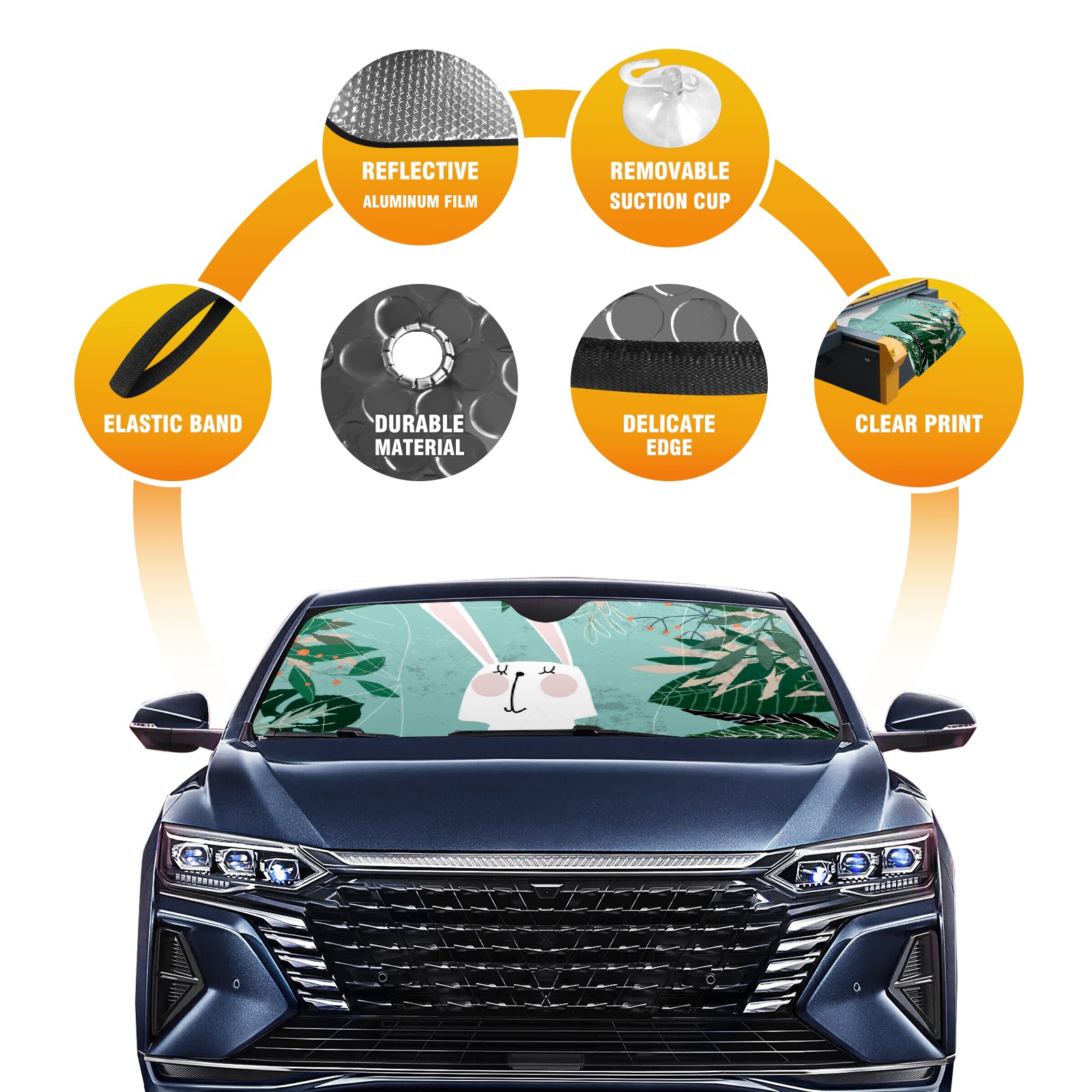 Car Windshield Sun Shade For Front Window Cartoon Green White Rabbit Foldable Vehicle Windshield Car Sun Visor Covers Automotive Window Protector Car Camping Privacy Sun Blocker