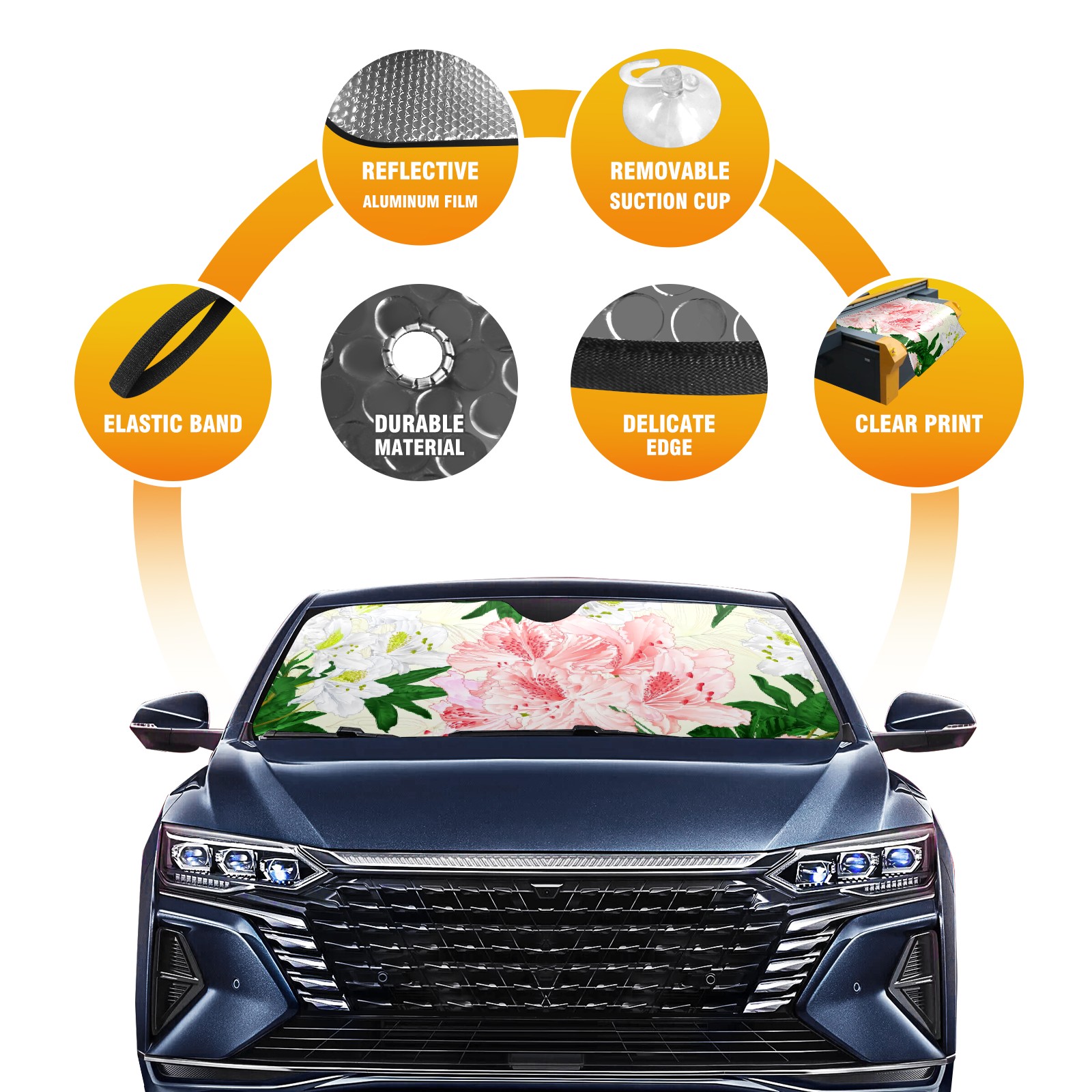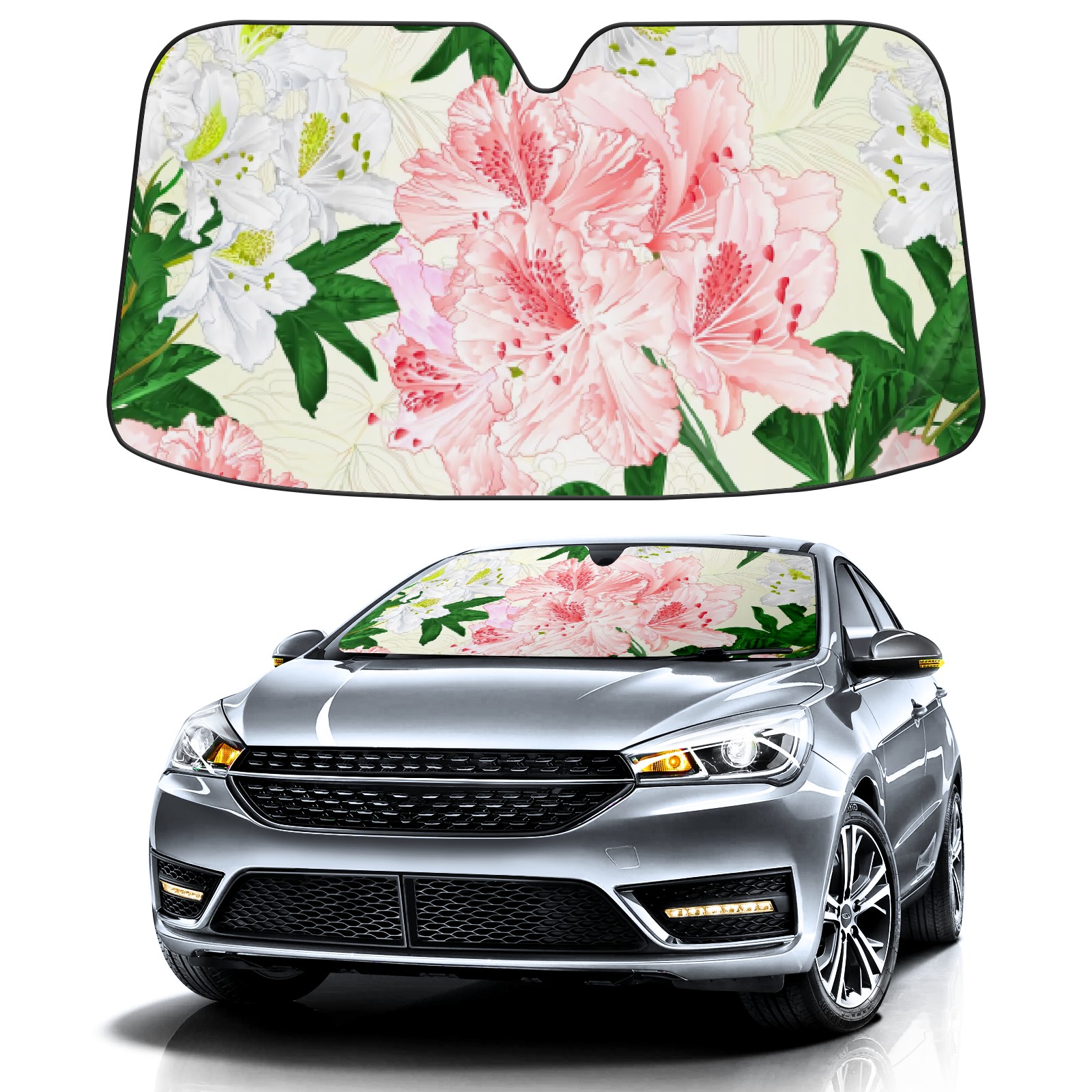 Car Windshield Sun Shade For Front Window White Pink White Flowers Foldable Vehicle Windshield Car Sun Visor Covers Automotive Window Protector Car Camping Privacy Sun Blocker