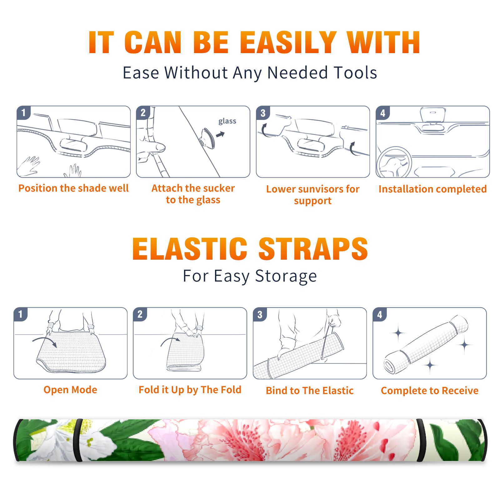 • Diameter /Size 63"L x 33.5"W Made from excellent materials which makes it sturdy and protects the car from the sun. Easy to use and pack. Makes the interior of the car cooler.You can easily stash the sunshade in the storage bag or store long term.It open and closes easy. Also the leather storage bag is durable and easy to put the umbrella back into.This windshield sunshade provides complete coverage and keeps your car interior cool under direct sun. It is easy to open and position under the windshield and around the rear-view mirror. Makes Your Car Easy To Identify, Perfect For Finding Your Car In Crowded Parking Lots And Garages.Great Choice: It Is A Great Gift For Dad, Boyfriend, Brother, Brother And Uncle, Friends, Classmates, Family And So On. Notice: Due To Difference Computer Monitors, The Color Maybe Slightly Different From Picture. As Different Measurement Methods, Measurement Data Will Float Within 2%.I Hope You Understand. If You Have Any Question About The Item Please Do Not Hesitate To Contact Us Immediately And We Will Give You A Satisfactory Reply Within 24 Hours.