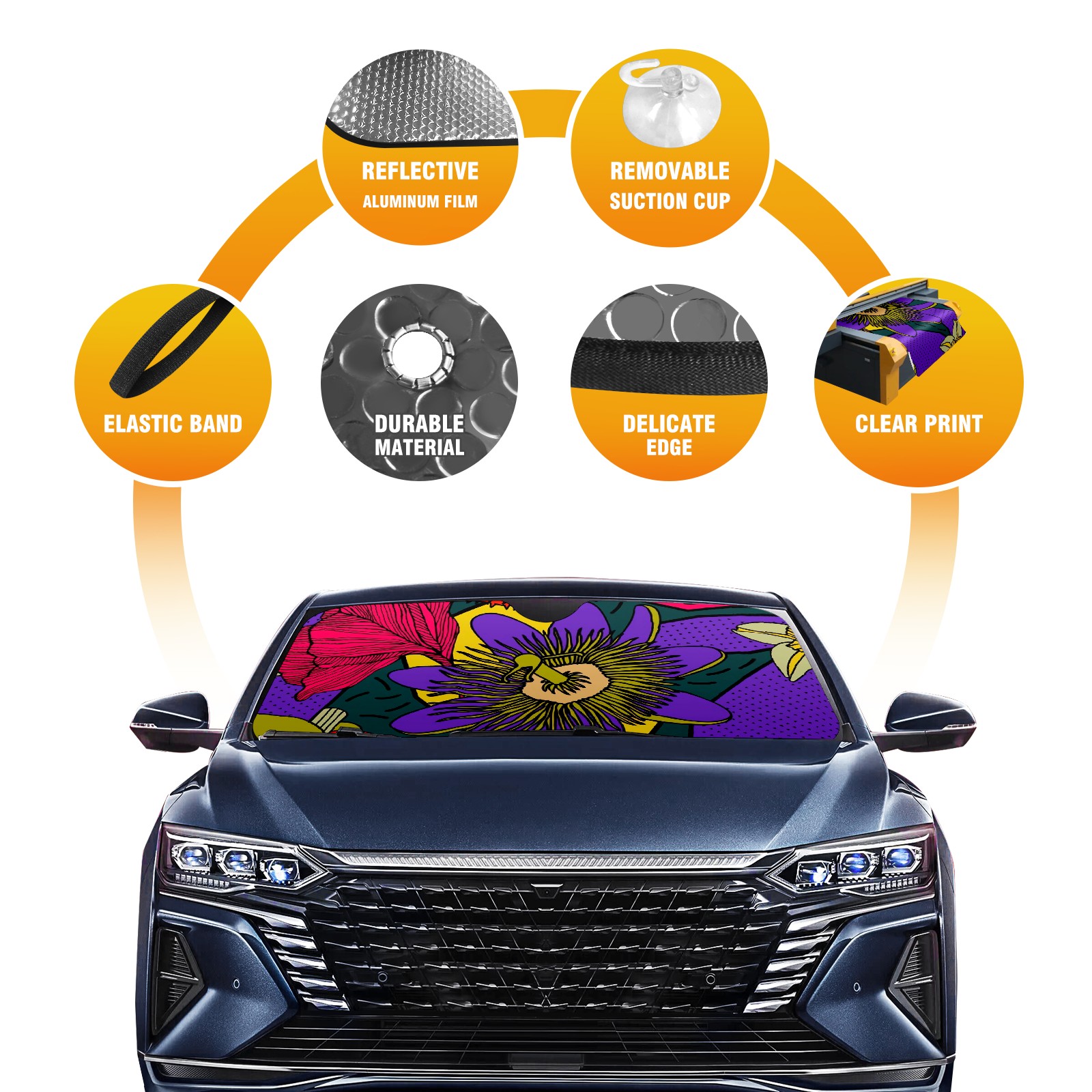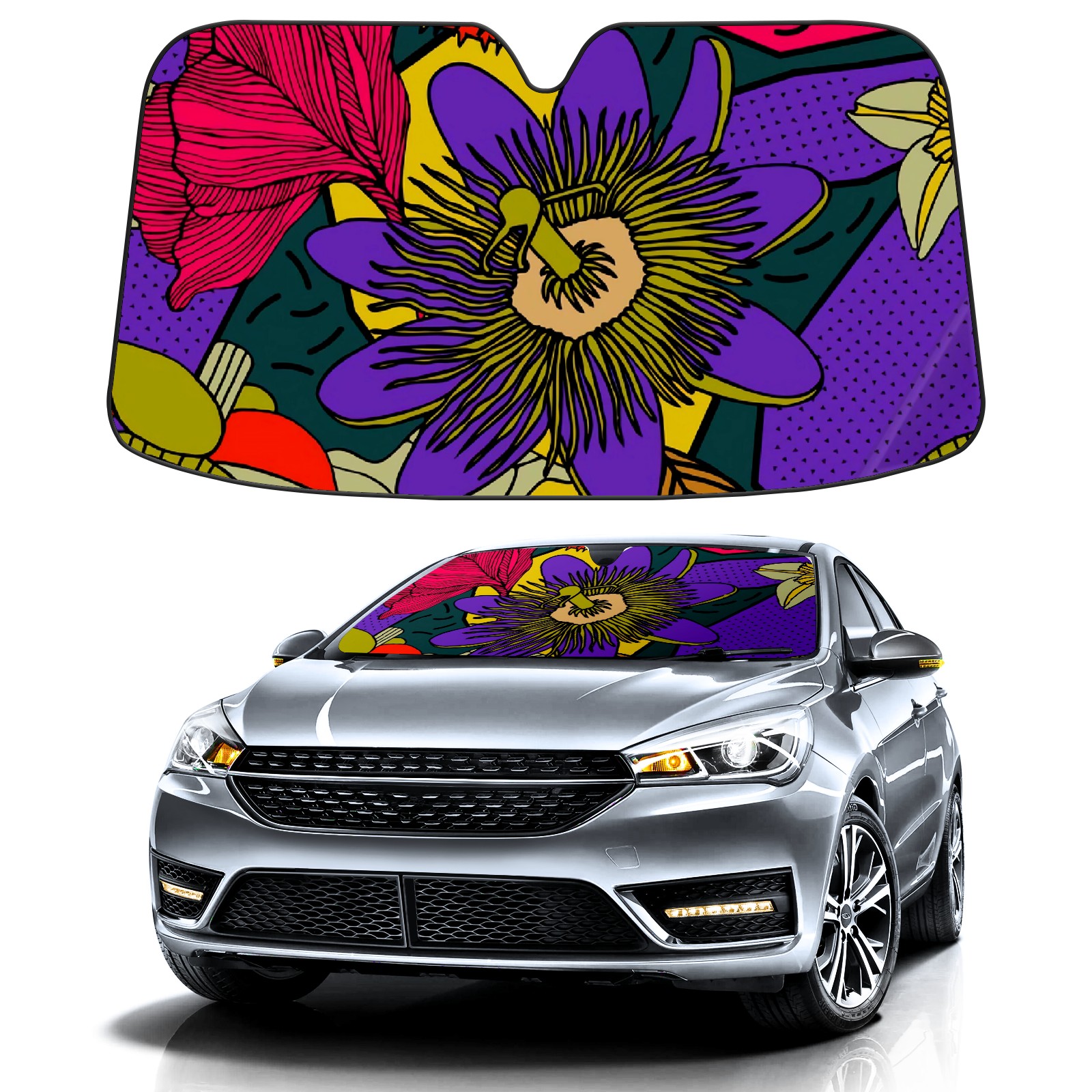 Car Windshield Sun Shade For Front Window Purple Red Flowers Foldable Vehicle Windshield Car Sun Visor Covers Automotive Window Protector Car Camping Privacy Sun Blocker