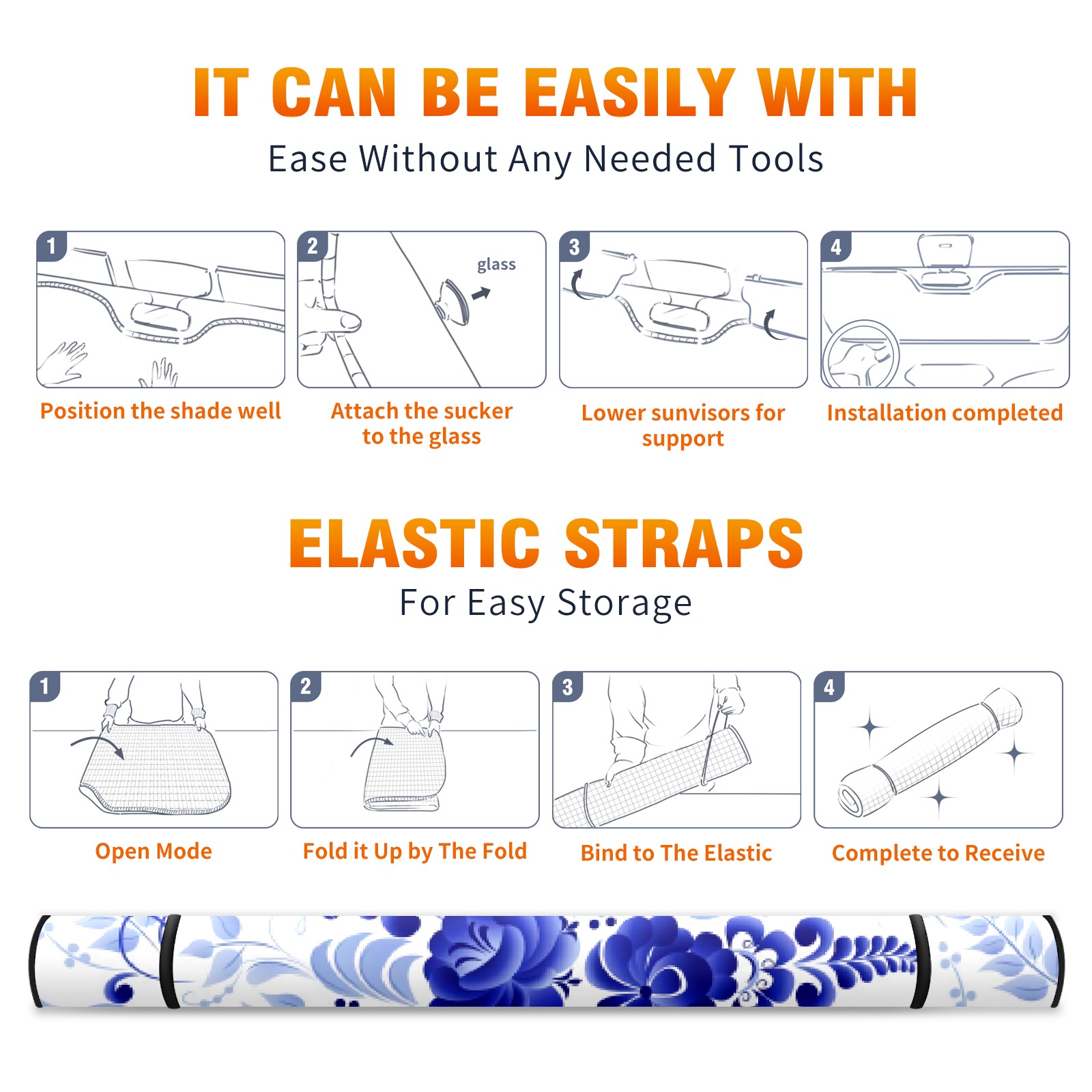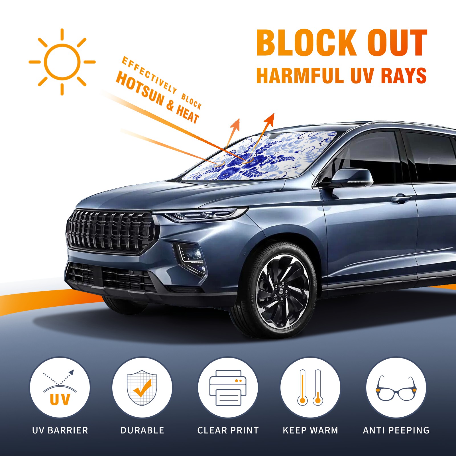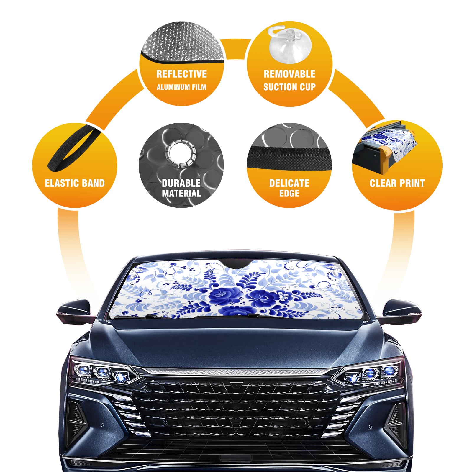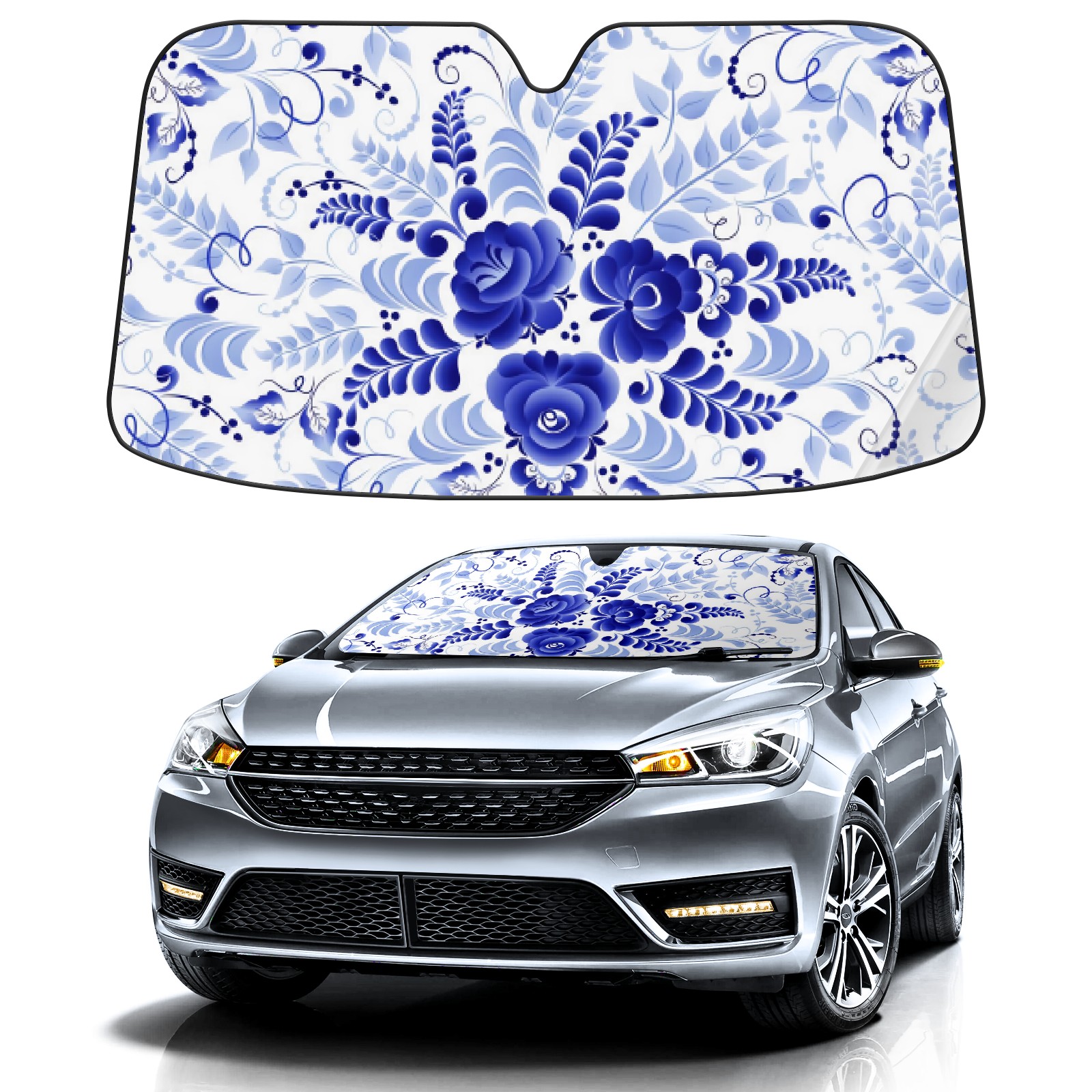 Car Windshield Sun Shade For Front Window Blue White Flowers Foldable Vehicle Windshield Car Sun Visor Covers Automotive Window Protector Car Camping Privacy Sun Blocker