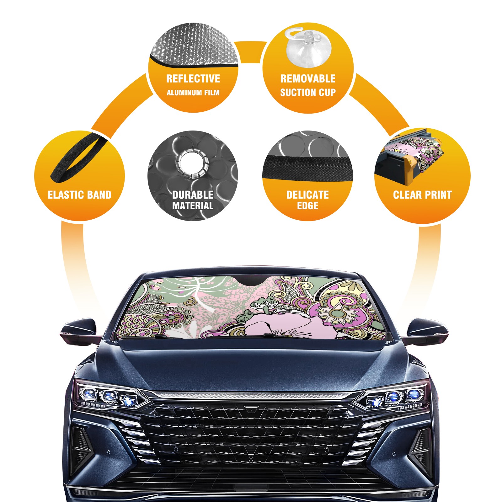 Car Windshield Sun Shade For Front Window Foundation Exotic Flower Foldable Vehicle Windshield Car Sun Visor Covers Automotive Window Protector Car Camping Privacy Sun Blocker