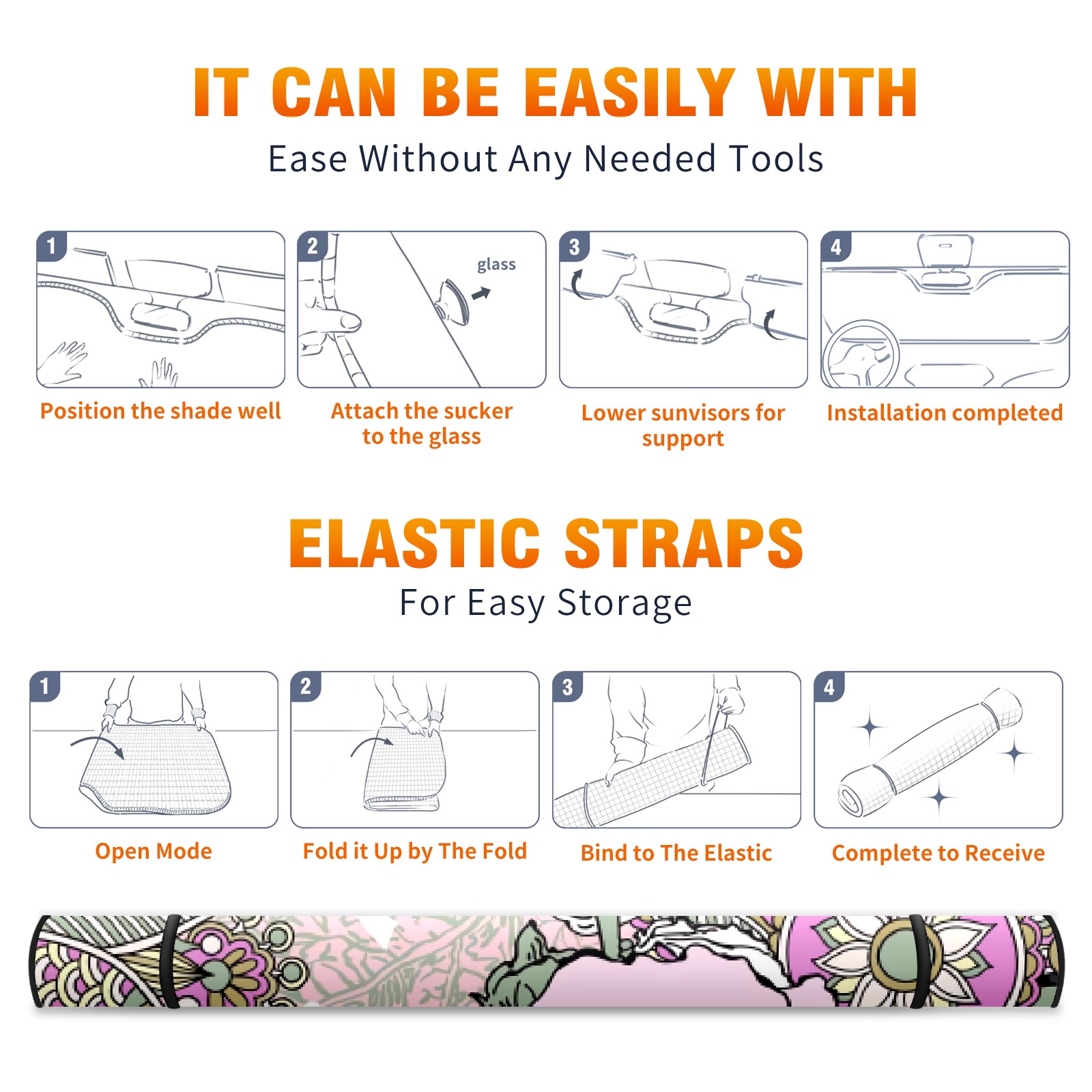 • Diameter /Size 63"L x 33.5"W Made from excellent materials which makes it sturdy and protects the car from the sun. Easy to use and pack. Makes the interior of the car cooler.You can easily stash the sunshade in the storage bag or store long term.It open and closes easy. Also the leather storage bag is durable and easy to put the umbrella back into.This windshield sunshade provides complete coverage and keeps your car interior cool under direct sun. It is easy to open and position under the windshield and around the rear-view mirror. Makes Your Car Easy To Identify, Perfect For Finding Your Car In Crowded Parking Lots And Garages.Great Choice: It Is A Great Gift For Dad, Boyfriend, Brother, Brother And Uncle, Friends, Classmates, Family And So On. Notice: Due To Difference Computer Monitors, The Color Maybe Slightly Different From Picture. As Different Measurement Methods, Measurement Data Will Float Within 2%.I Hope You Understand. If You Have Any Question About The Item Please Do Not Hesitate To Contact Us Immediately And We Will Give You A Satisfactory Reply Within 24 Hours.