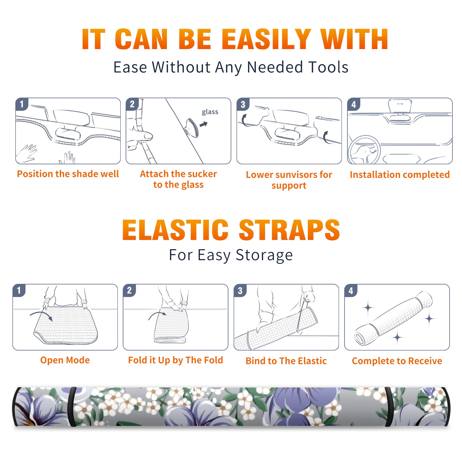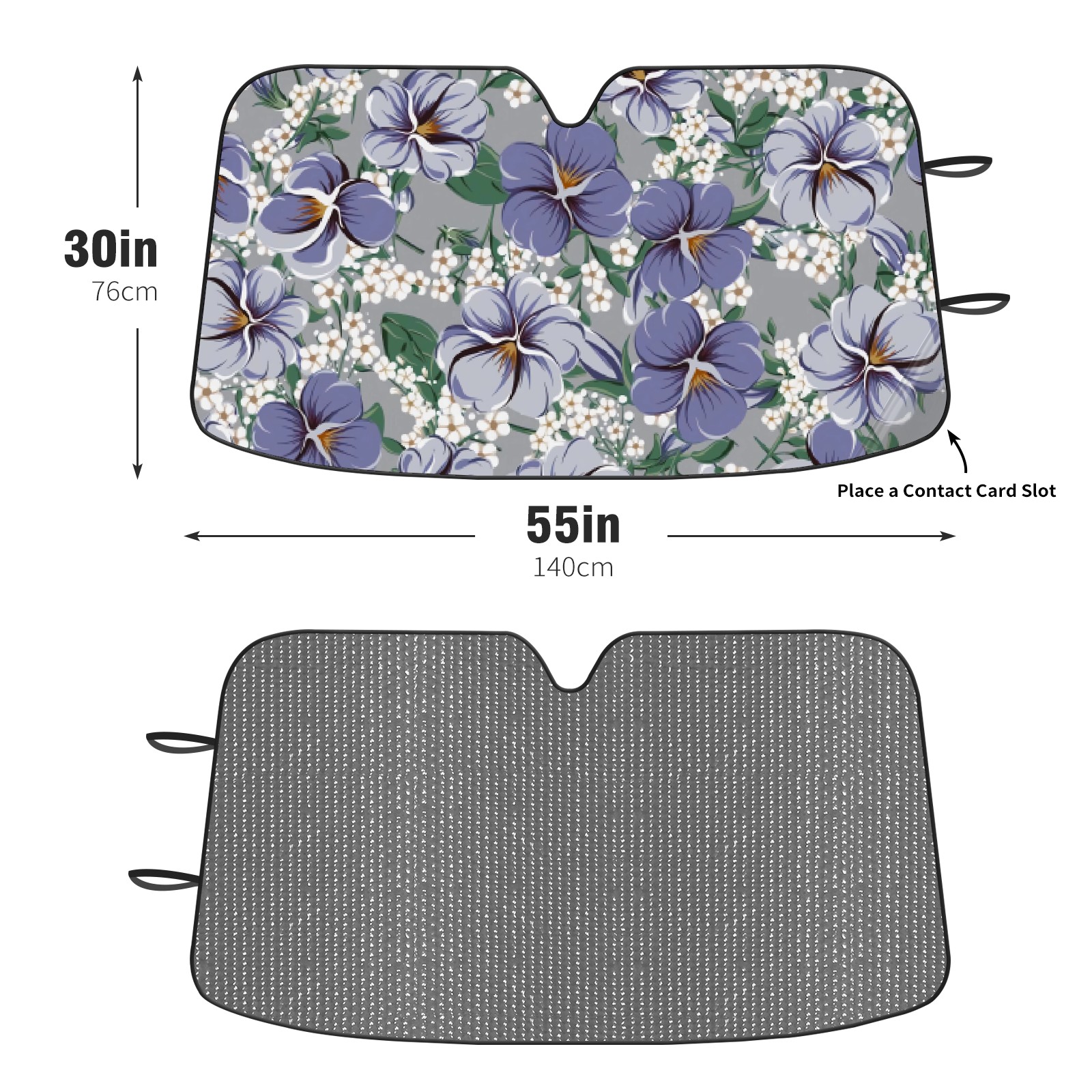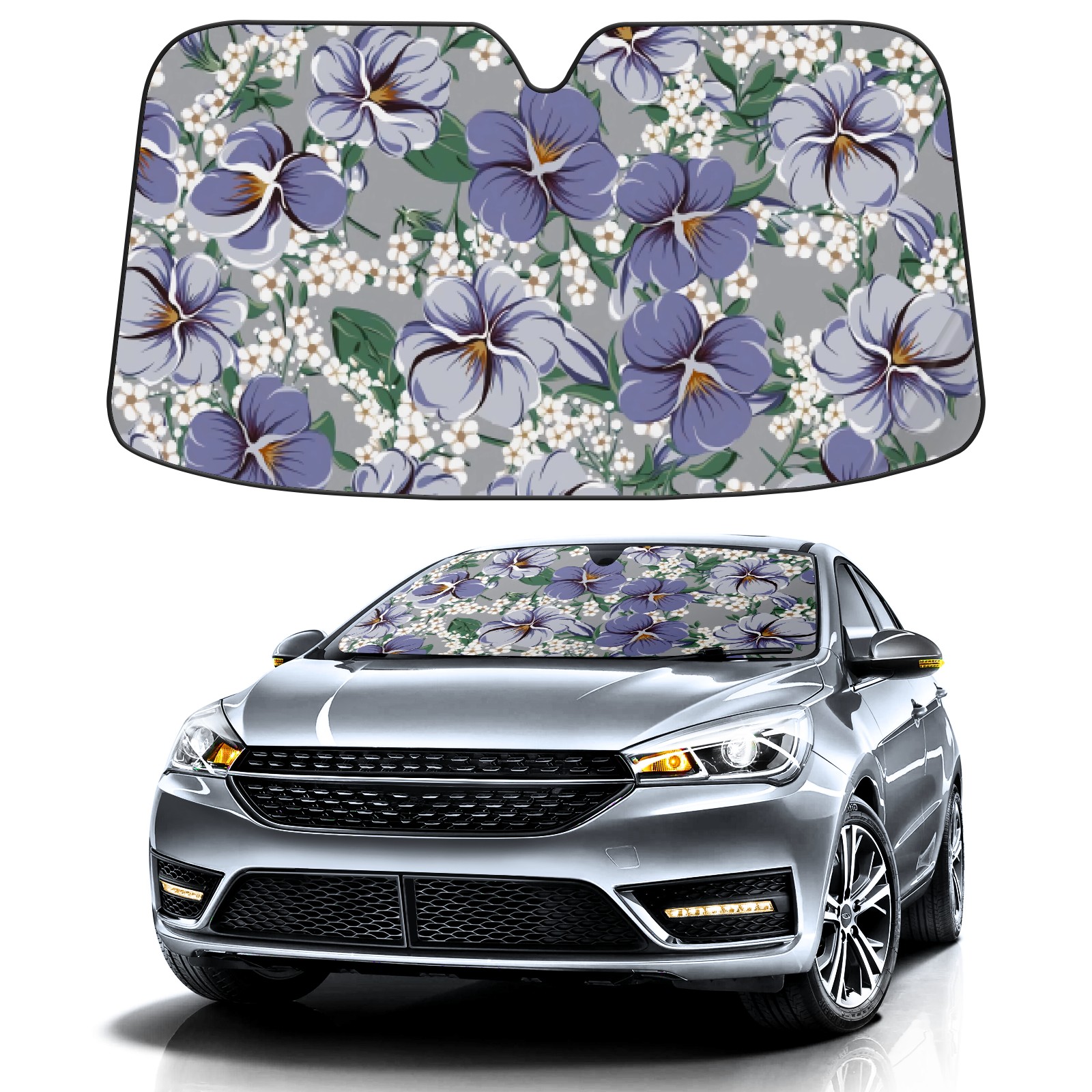 Car Windshield Sun Shade For Front Window Grey With Purple White Flowers Foldable Vehicle Windshield Car Sun Visor Covers Automotive Window Protector Car Camping Privacy Sun Blocker